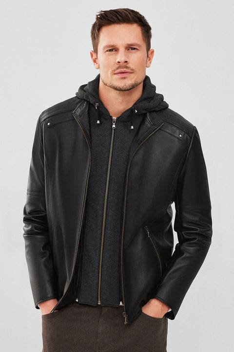 Danny Erkek Siyah Kapüşonlu Spor Deri Ceket