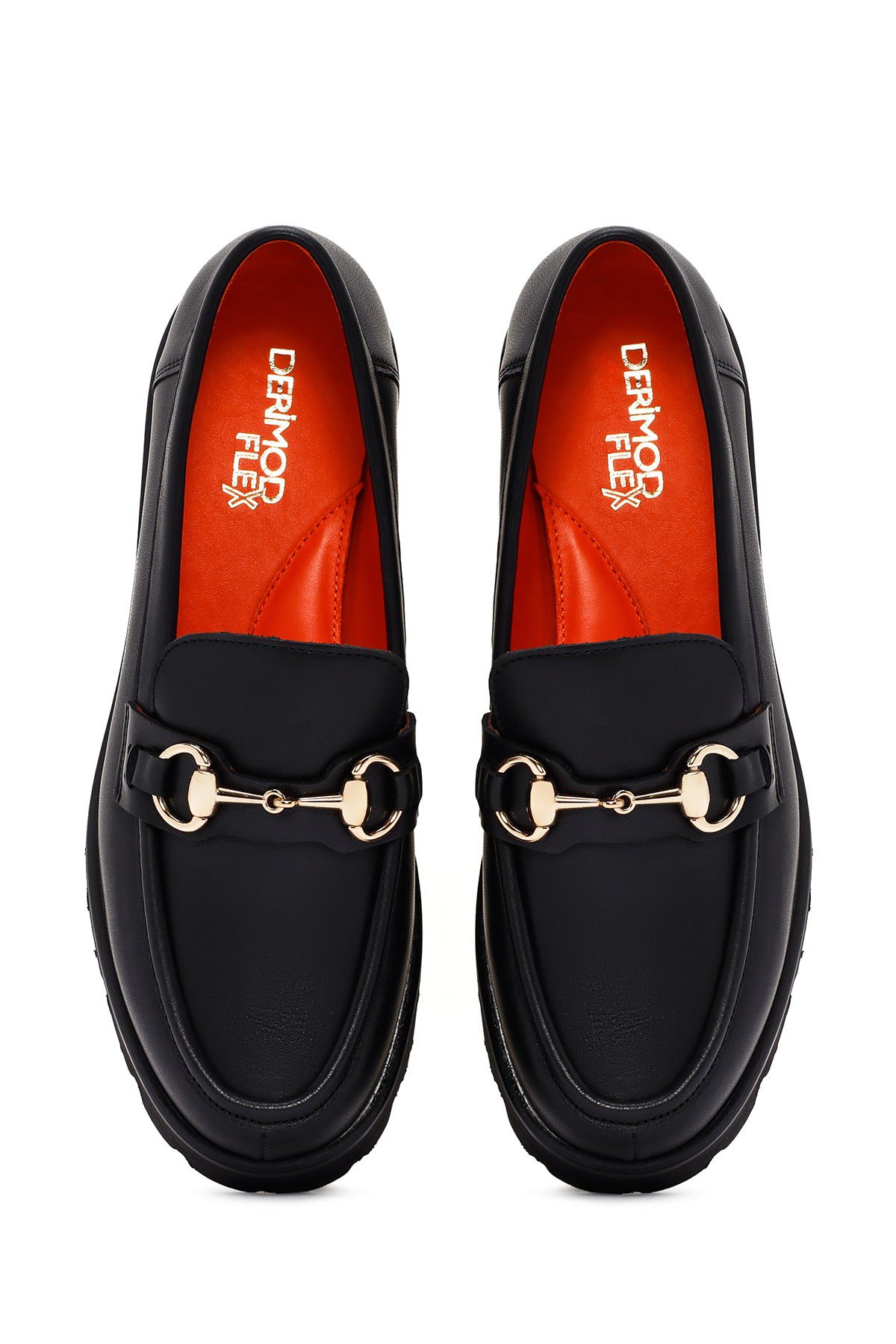 Derimod Flex Kadın Siyah Kalın Tabanlı Deri Maskülen Loafer