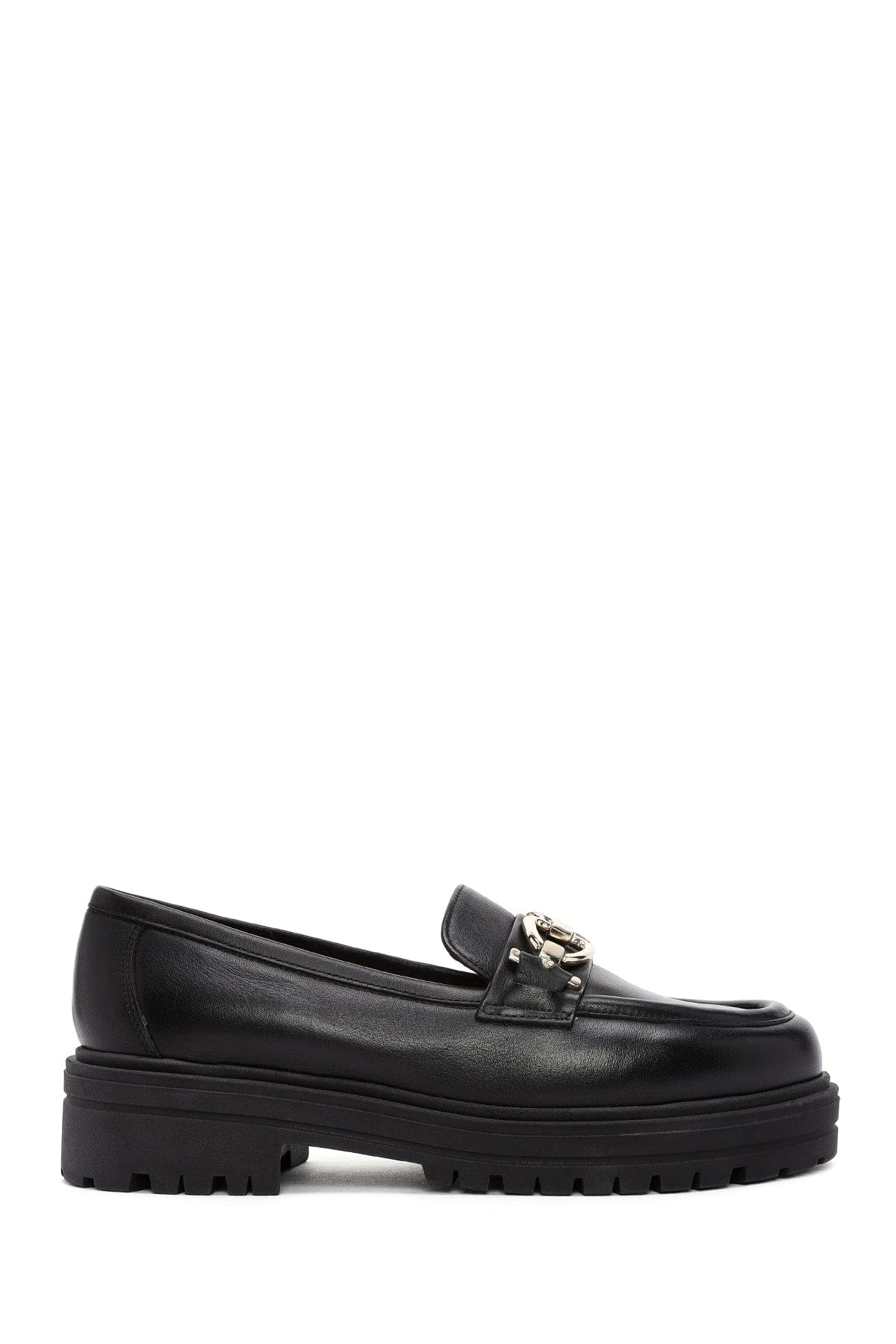 Derimod Gritti Kadın Siyah Toka Detaylı Deri Maskülen Loafer