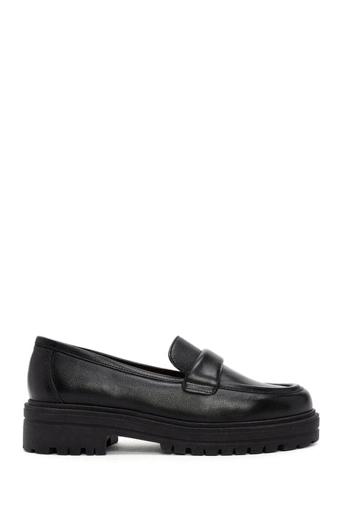Derimod Gritti Kadın Siyah Deri Maskülen Loafer