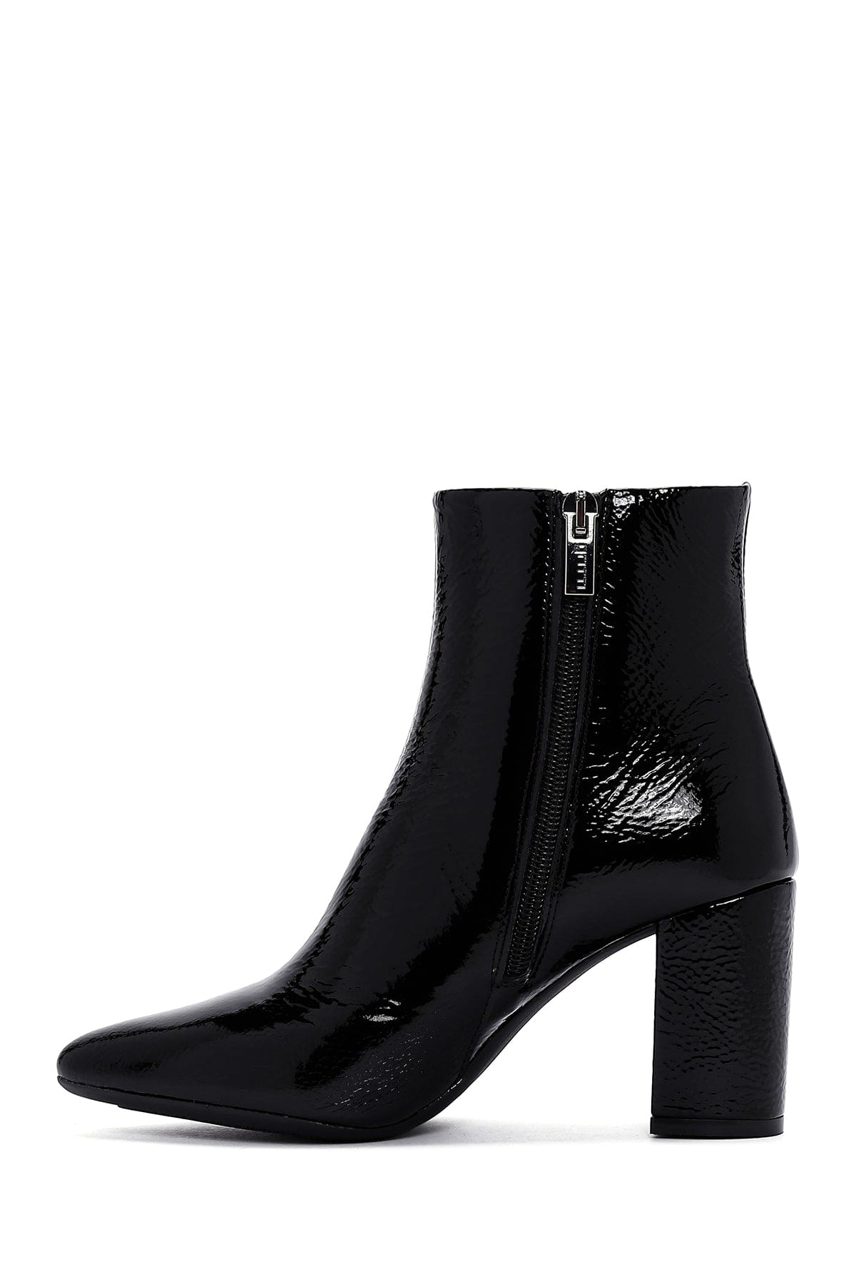Derimod Gritti Kadın Siyah Fermuarlı Kalın Topuklu Rugan Deri Bot