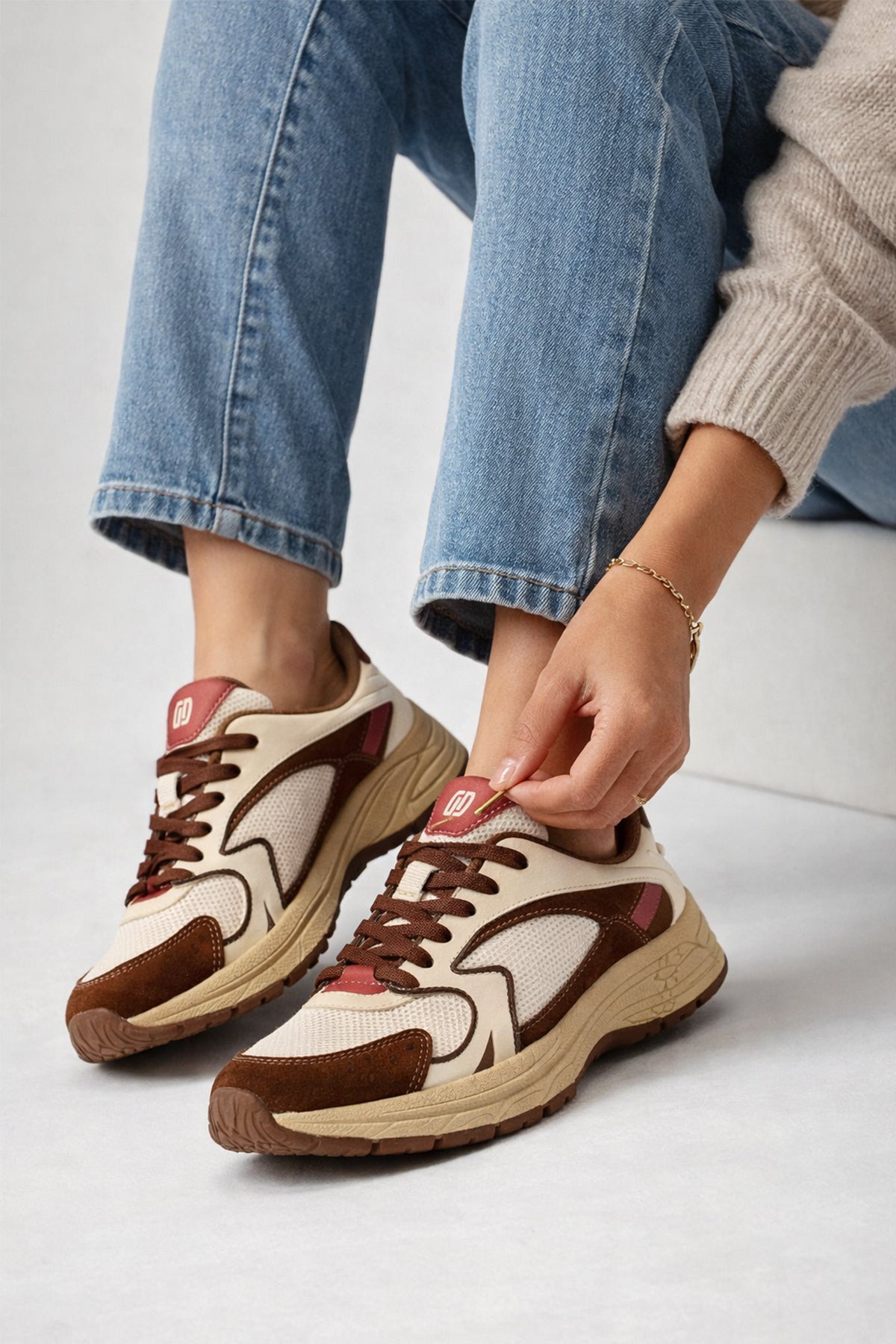 کتونی زنانه بژ بنددار لژدار دری مد Studio