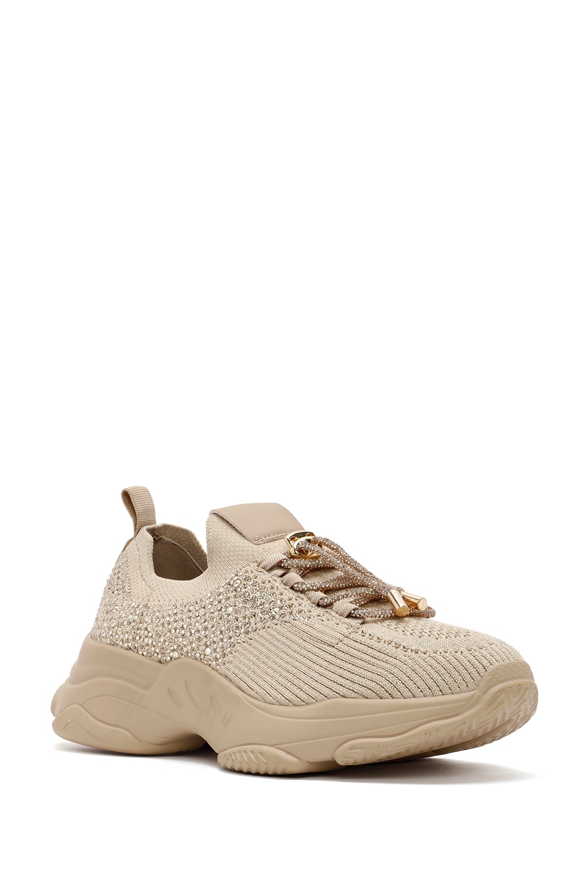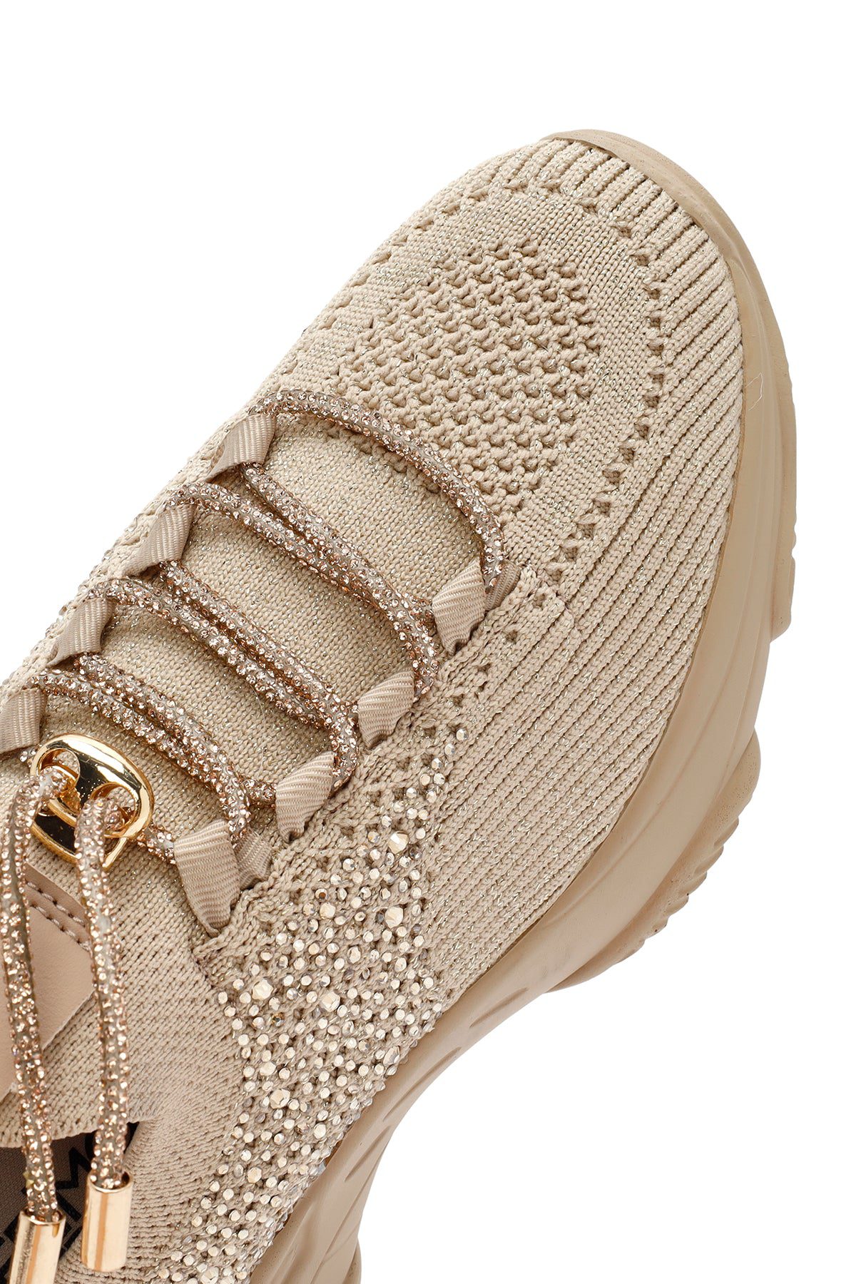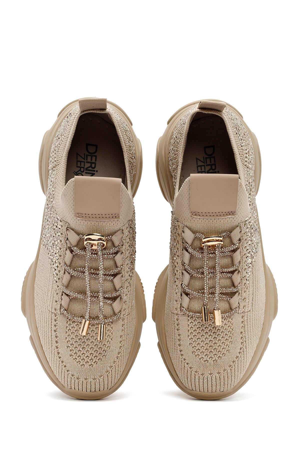 Derimod Zero Kadın Bej Bağcıklı Taş Detaylı Kumaş Sneaker
