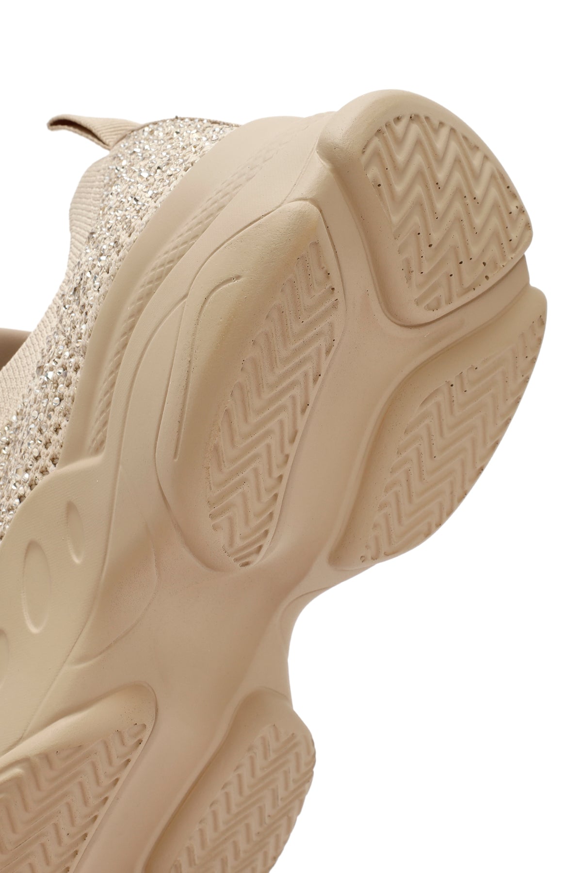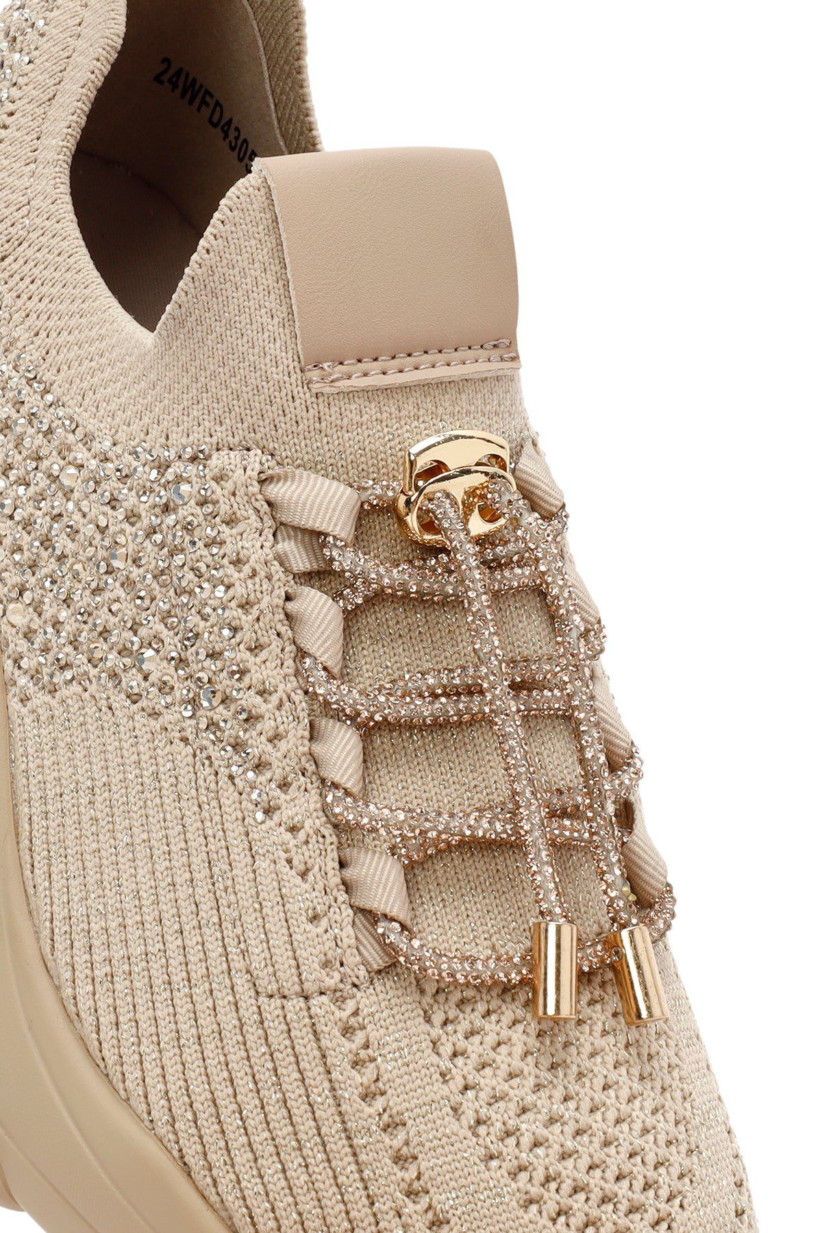 کتونی زنانه پارچهای بژ بنددار سنگدار دری مد Zero