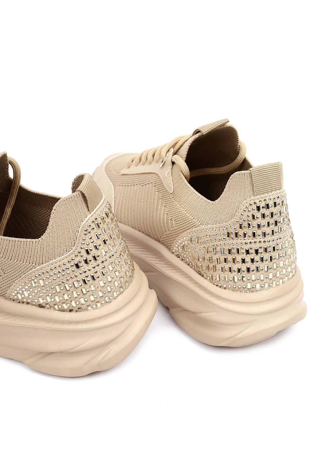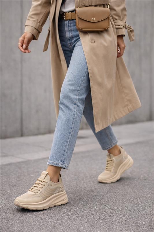 کتونی زنانه پارچهای بژ بنددار لژدار دری مد Zero