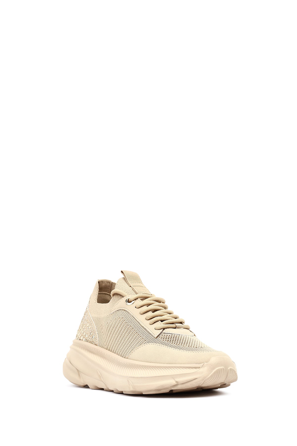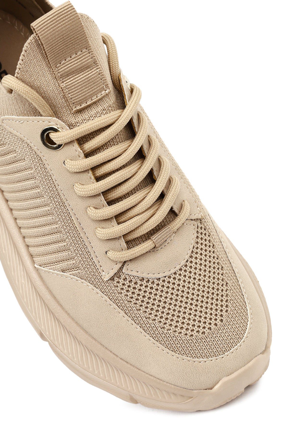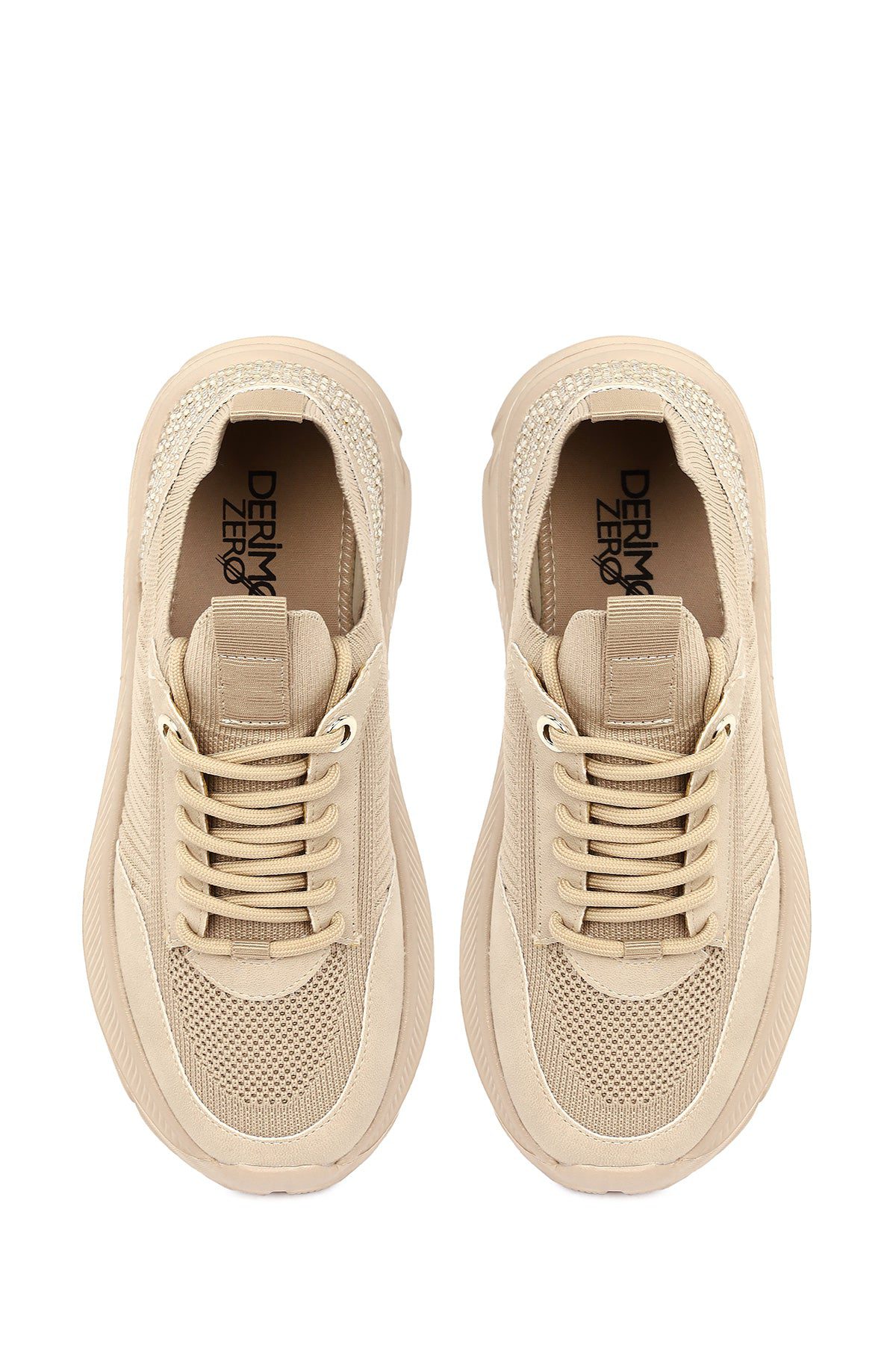Derimod Zero Kadın Bej Bağcıklı Kalın Tabanlı Kumaş Sneaker