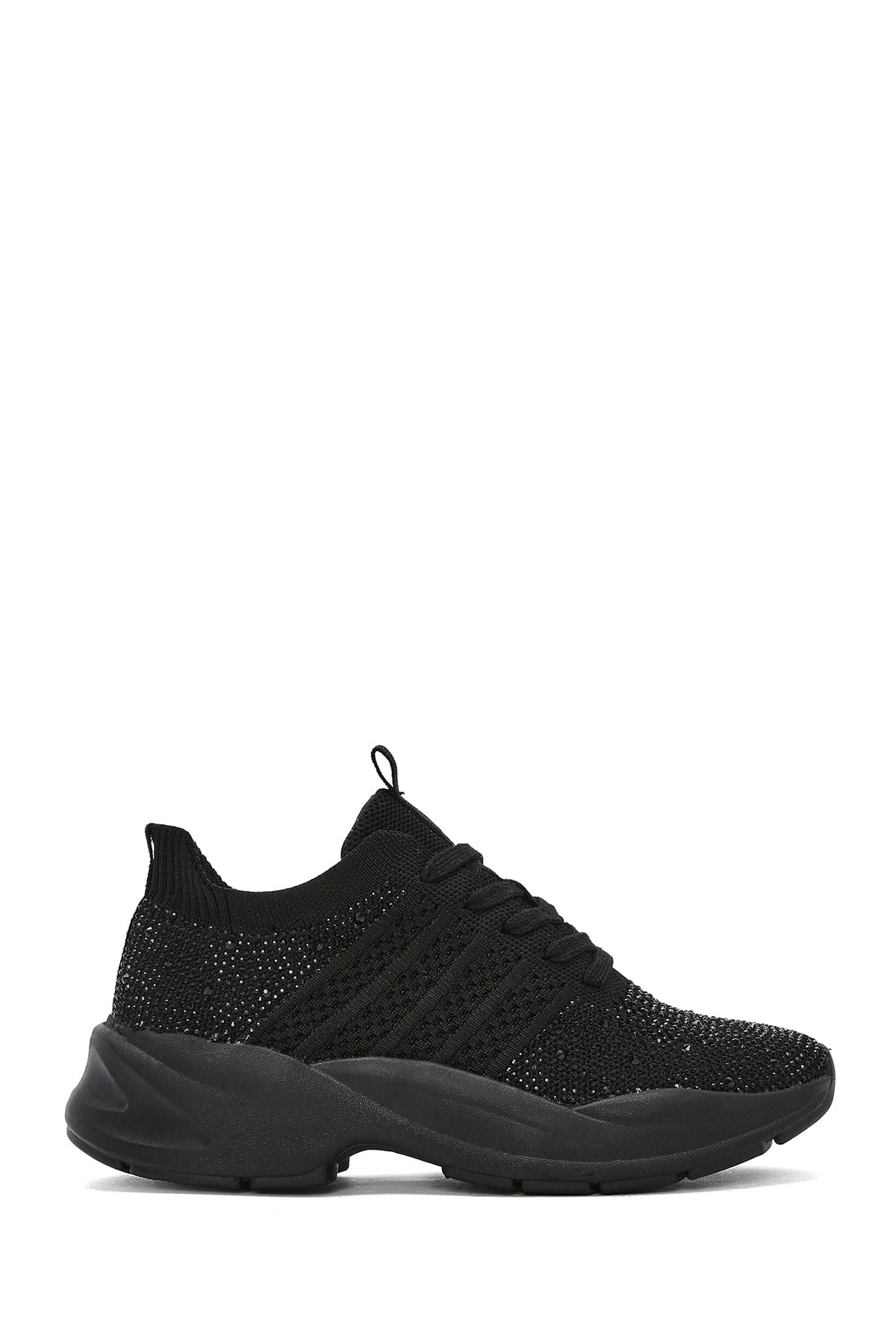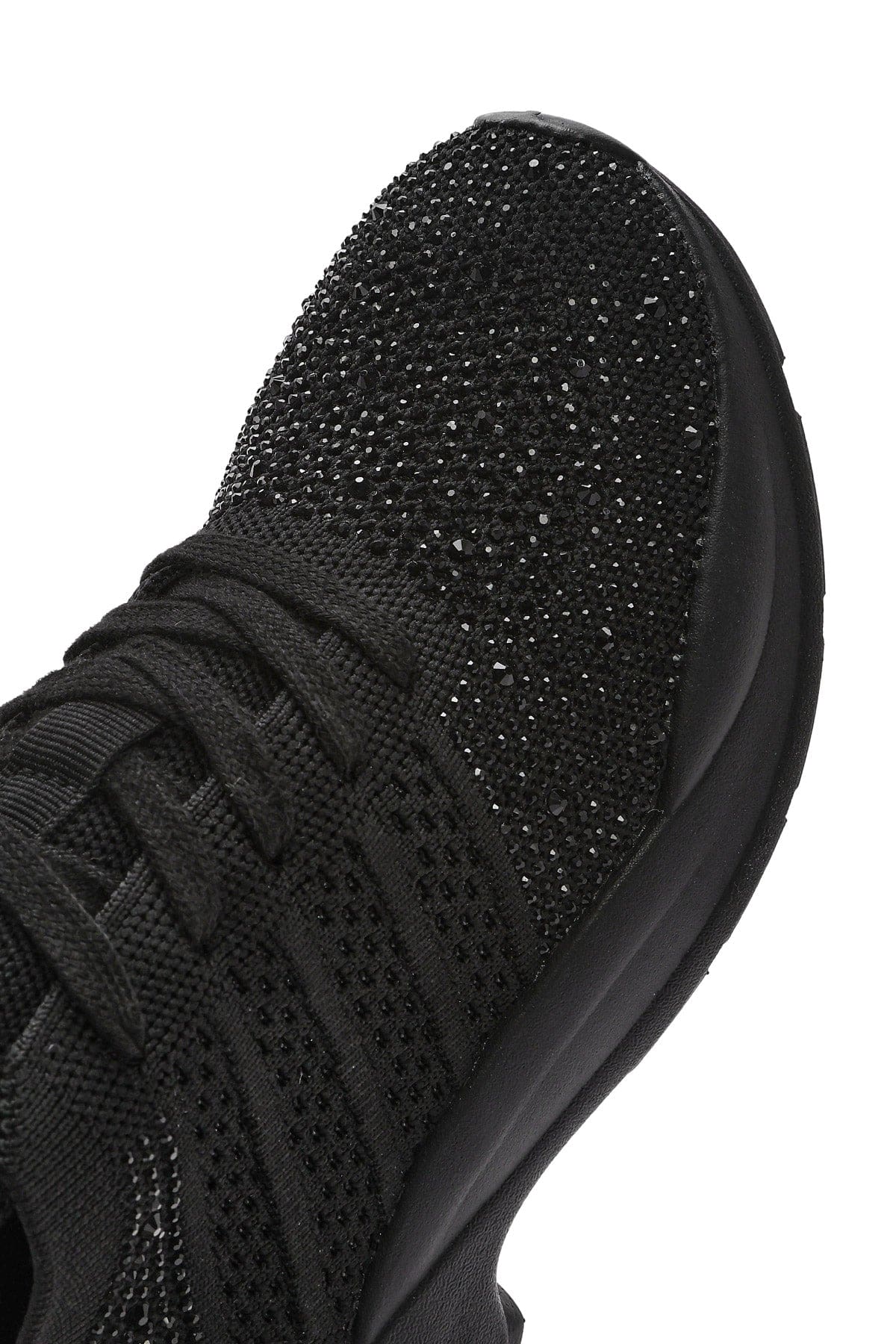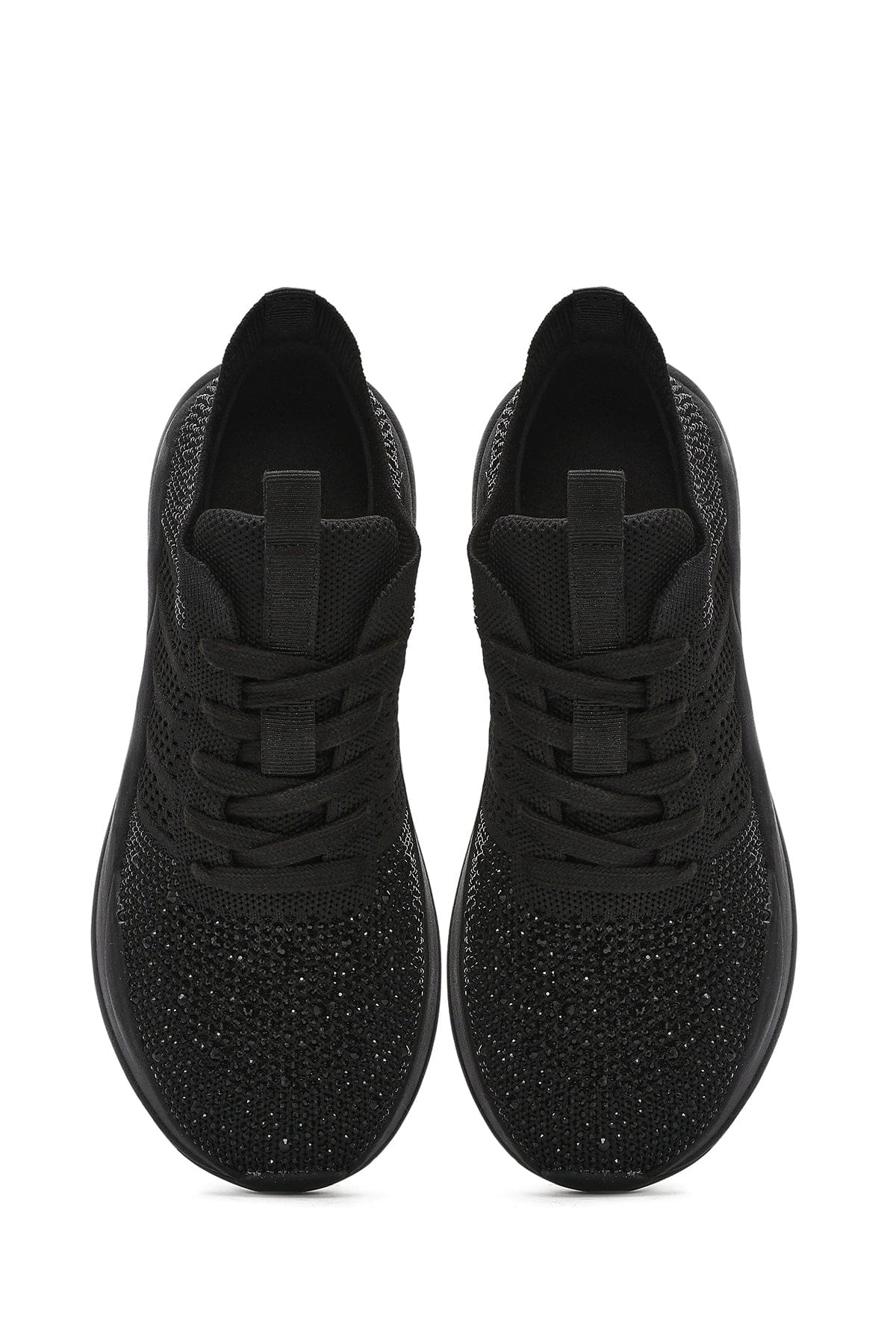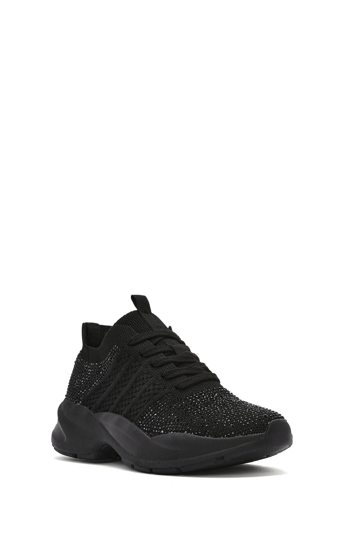 Derimod Zero Kadın Siyah Bağcıklı Taşlı Kumaş Sneaker