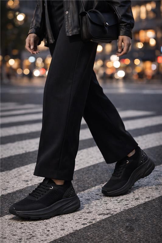 کتونی زنانه پارچهای مشکی بنددار لژدار دری مد Zero