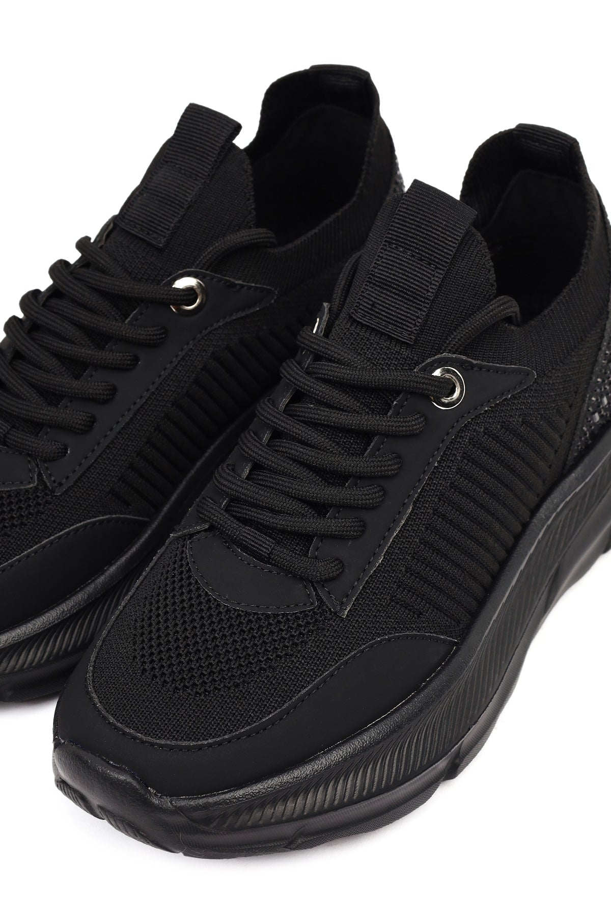 Derimod Zero Kadın Siyah Bağcıklı Kalın Tabanlı Kumaş Sneaker
