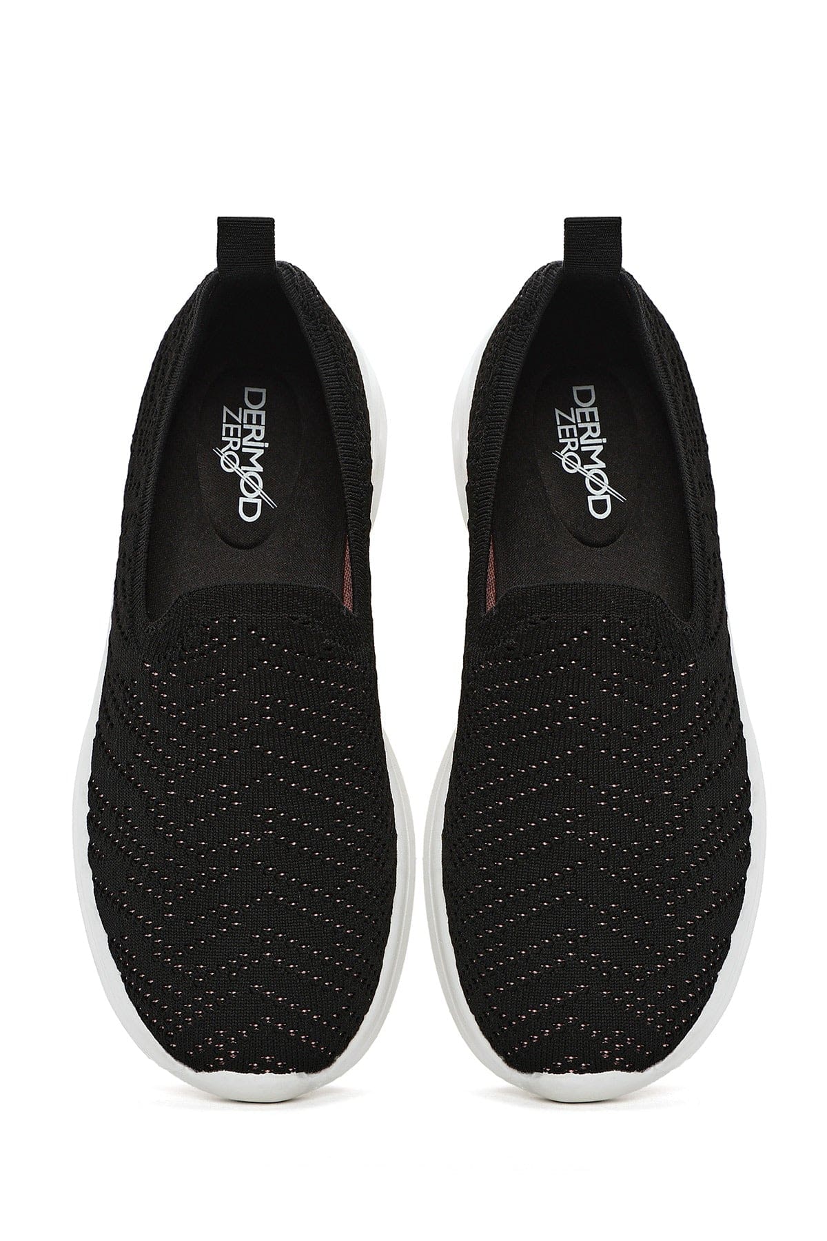کتونی زنانه سیاه با زیره ضخیم پارچه ای دری مد