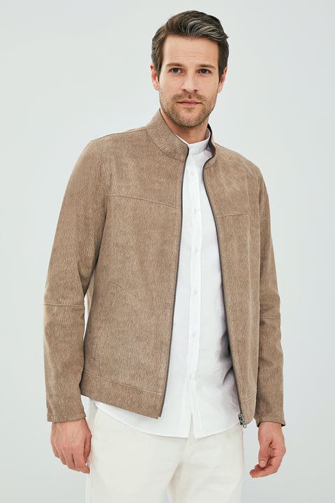 Diego Erkek Bej Çift Taraflı Spor Deri Ceket