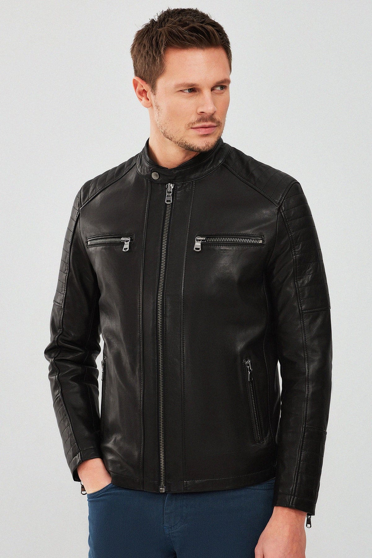 Dali Erkek Siyah Spor Deri Ceket