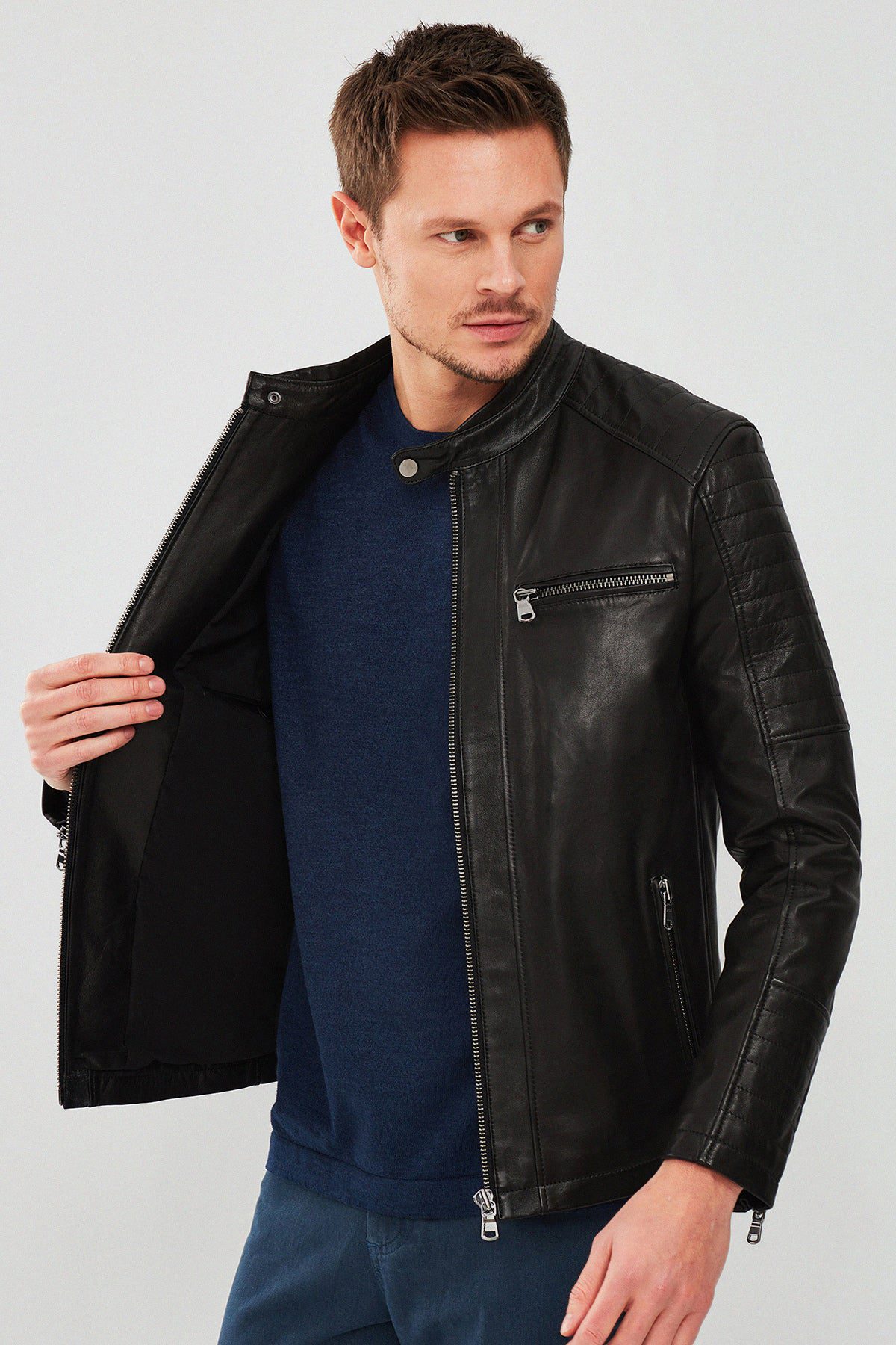 کاپشن چرم اسپرت مشکی مردانه دالی دری مد