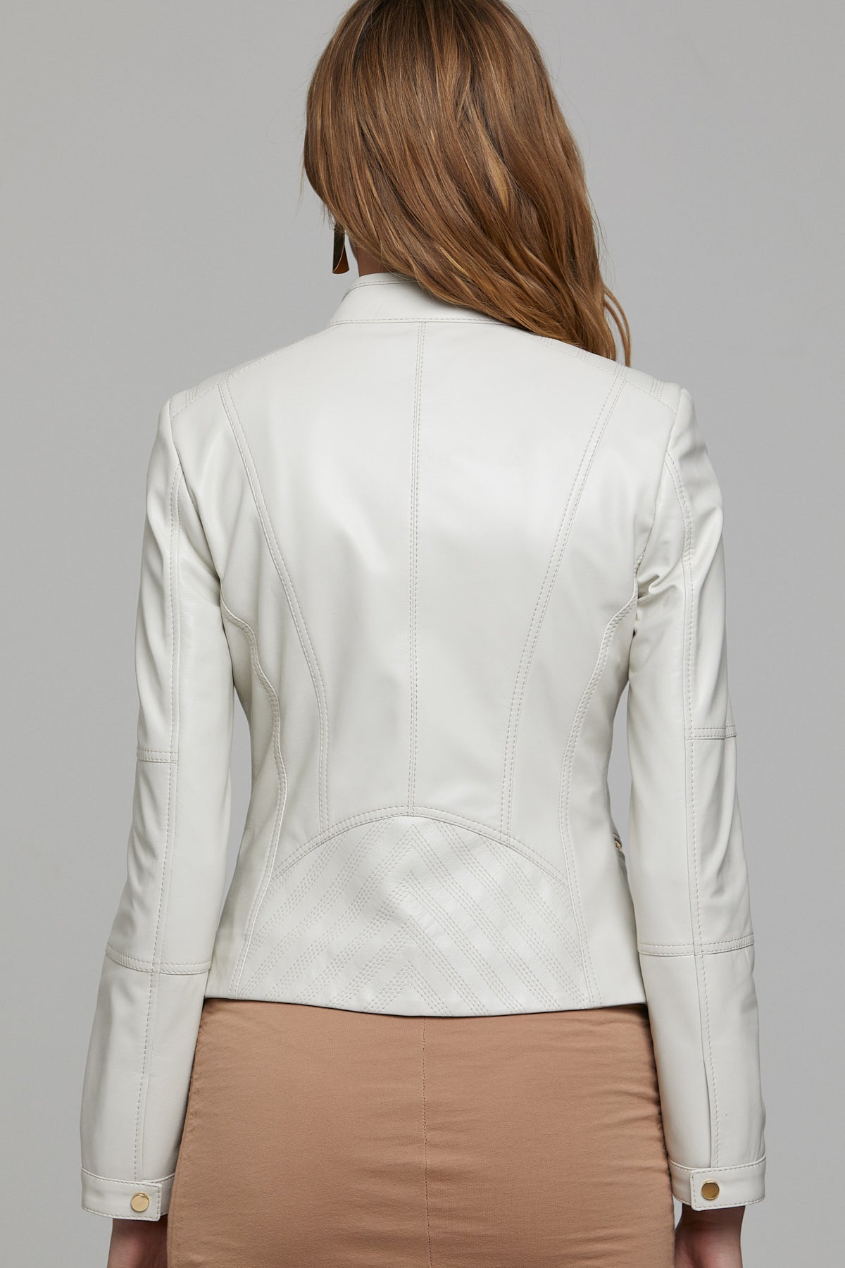 کت چرمی کوتاه بژ زنانه دونا دری مد