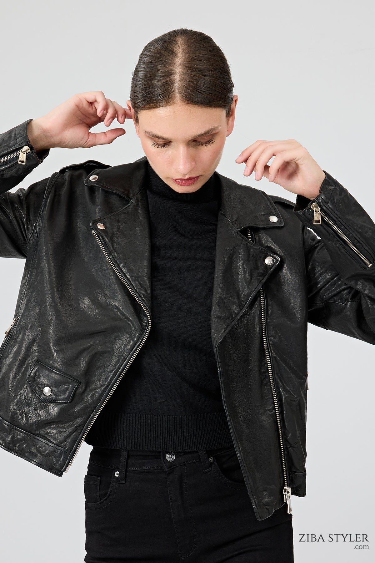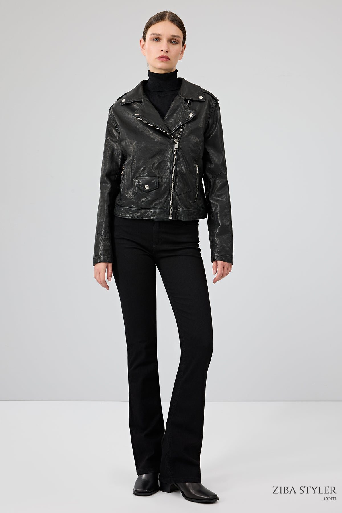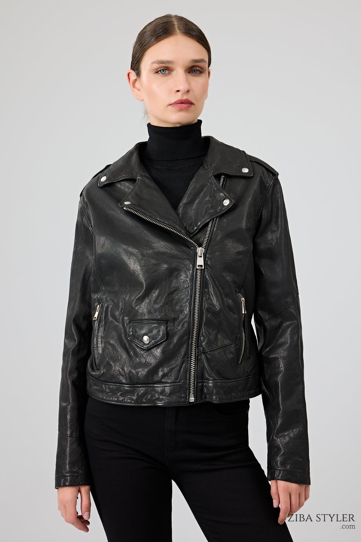 Blondy Kadın Siyah Kruvaze Yaka Deri Ceket