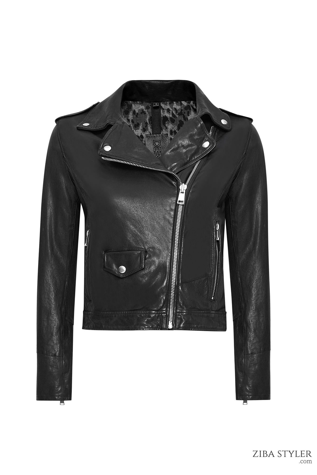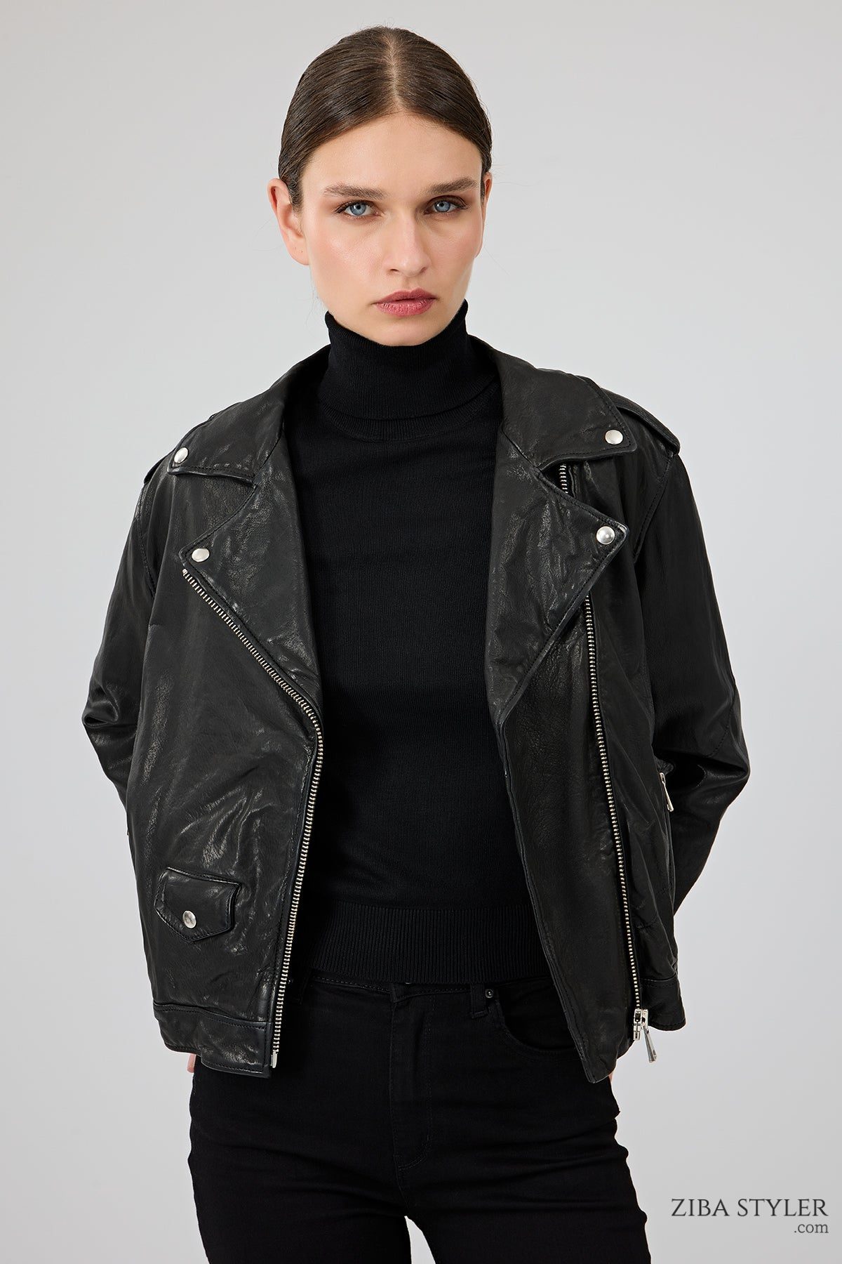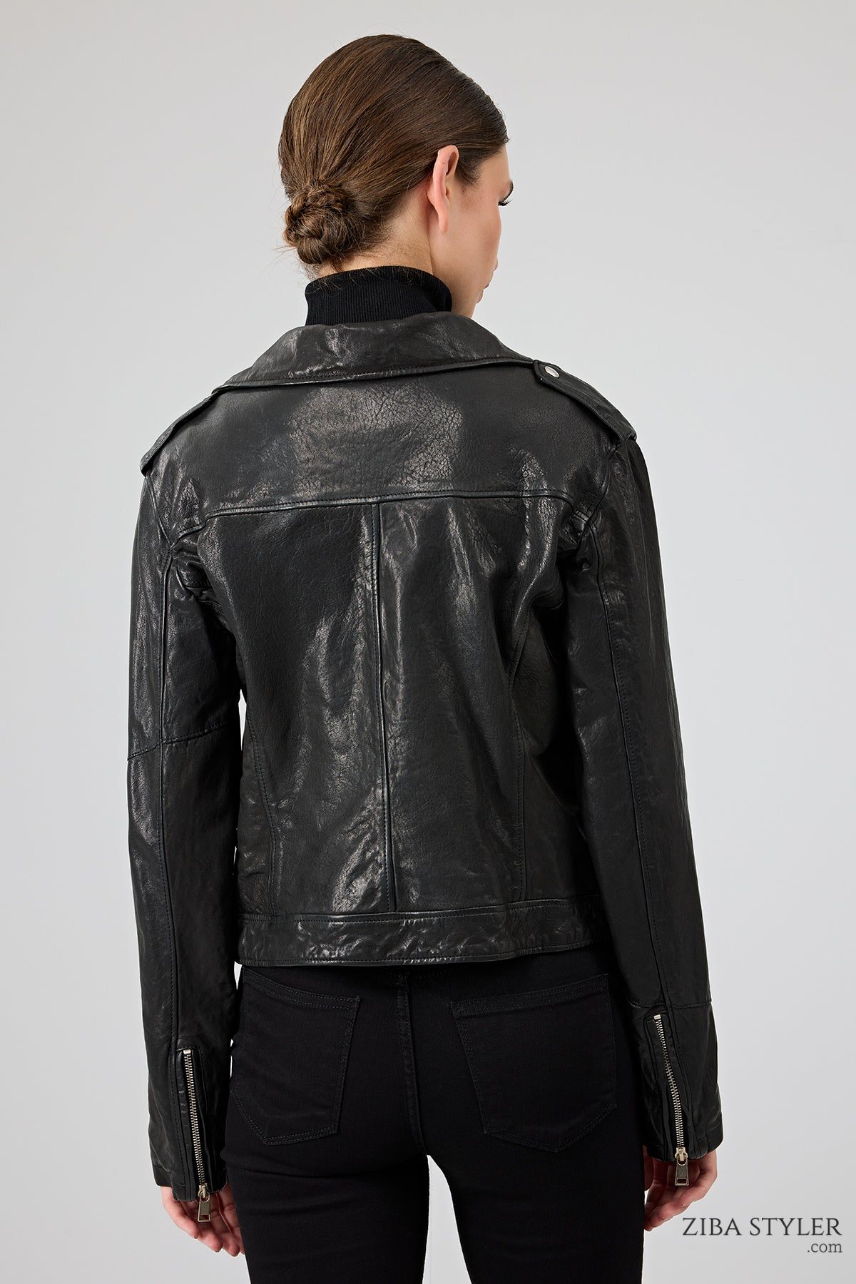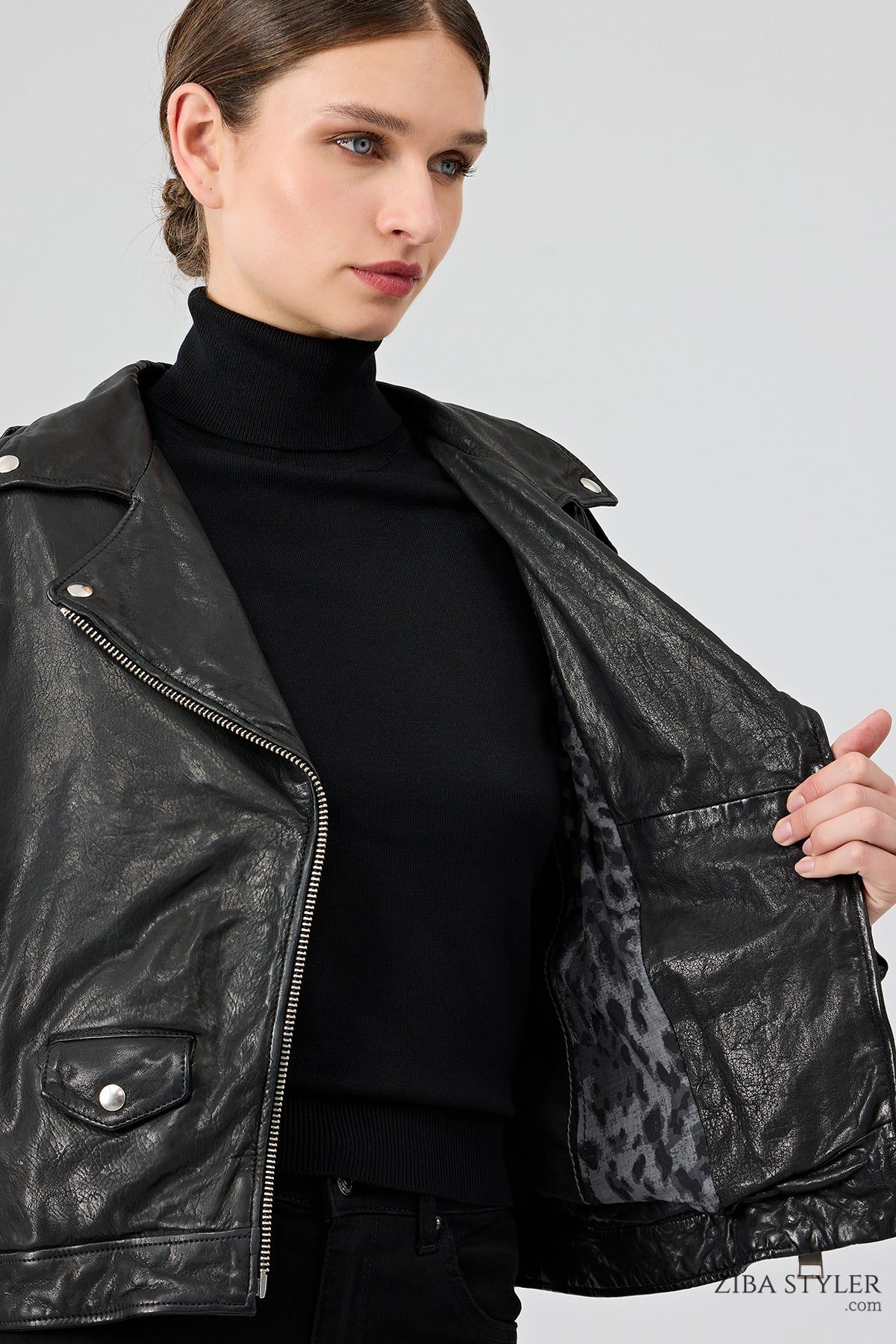 Blondy Kadın Siyah Kruvaze Yaka Deri Ceket