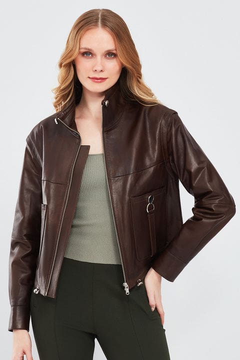 Edwina Kadın Kahverengi Çıkarılabilir Kollu Deri Ceket
