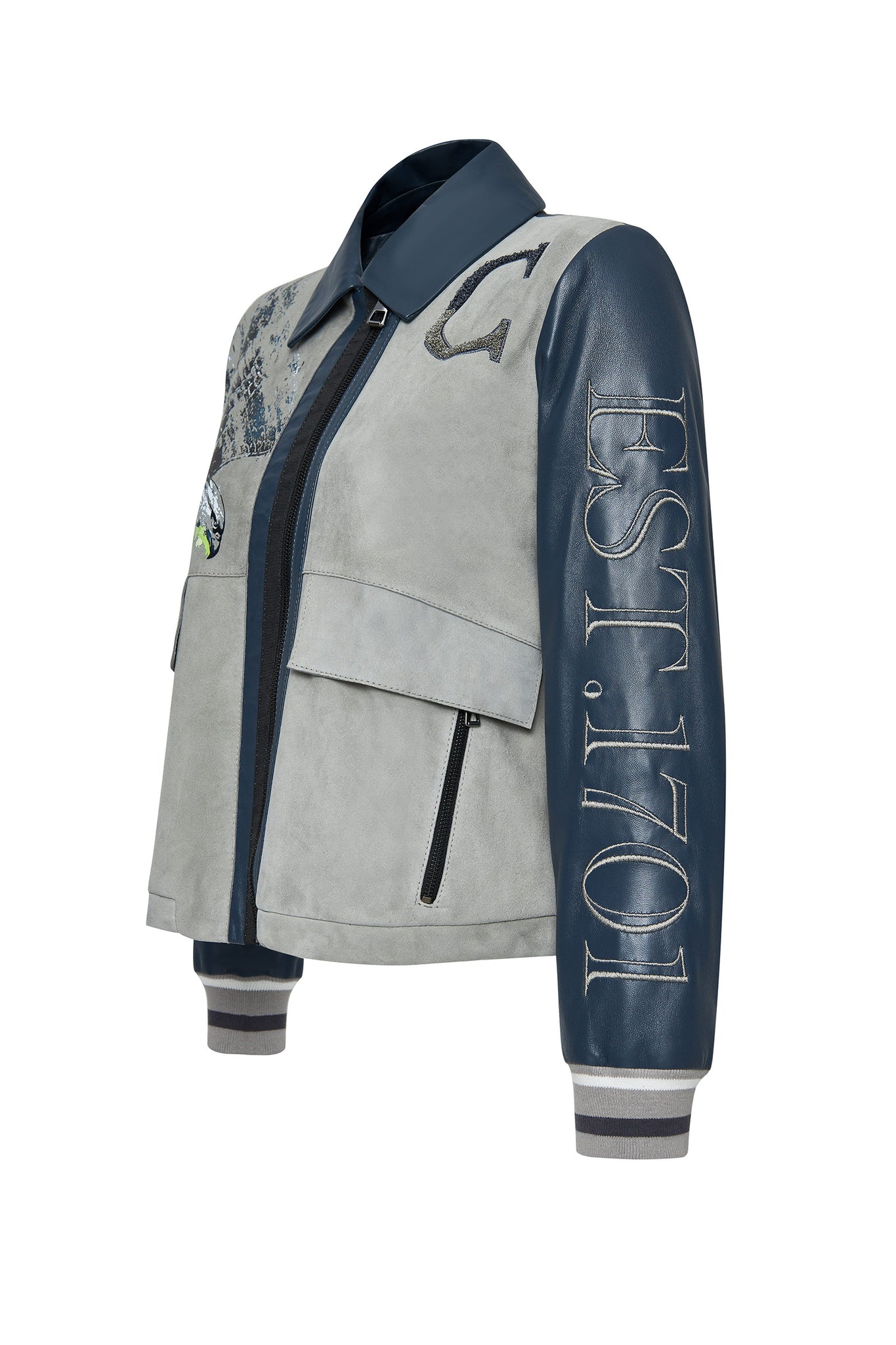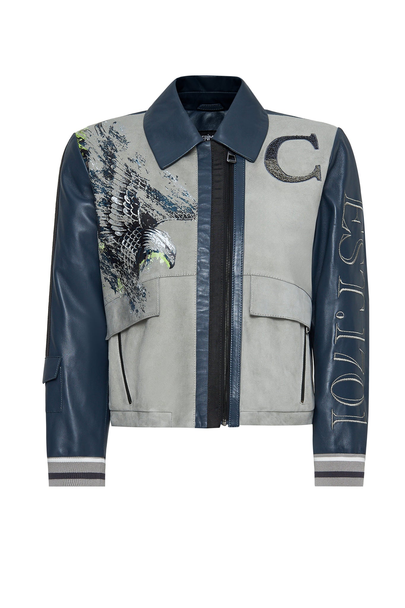 کت چرم جیر یقه پیراهن طوسی زنانه Fay دری مد
