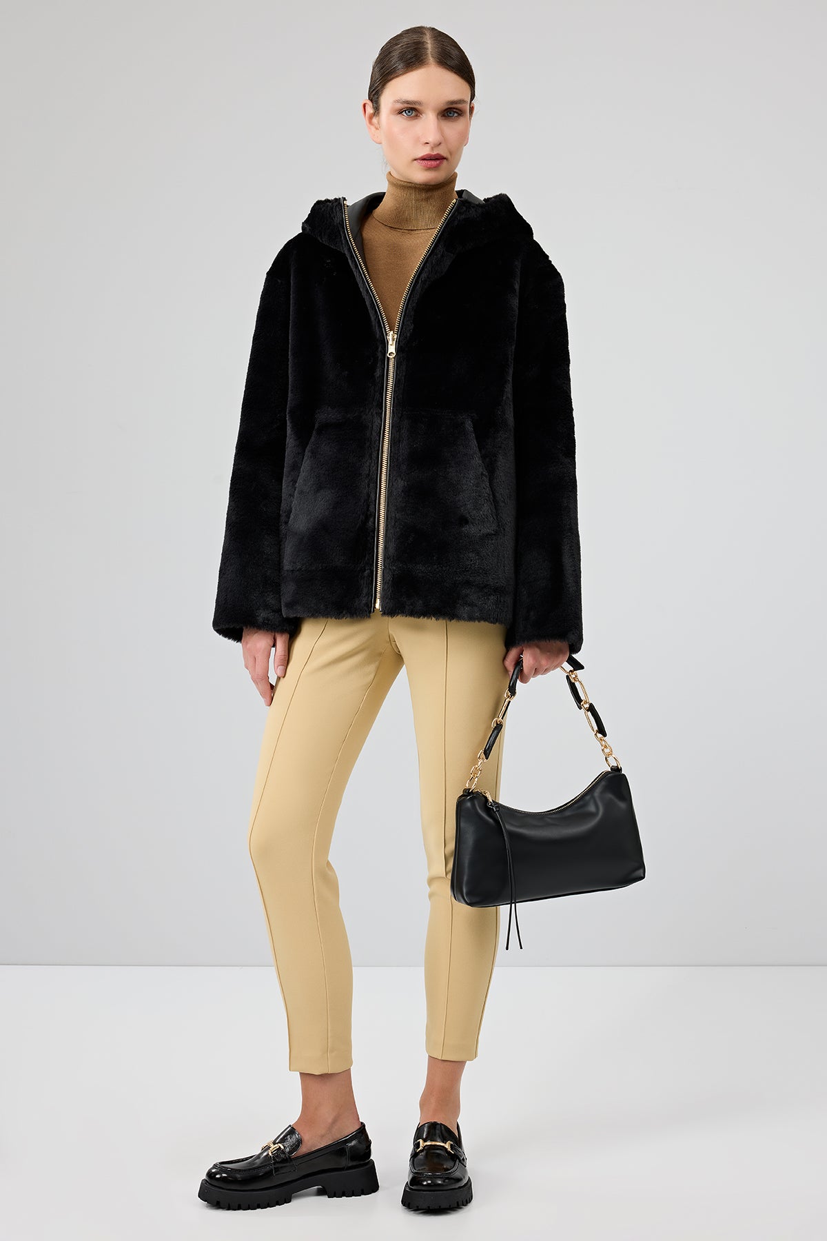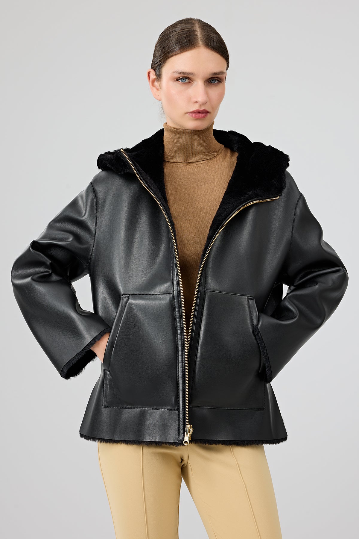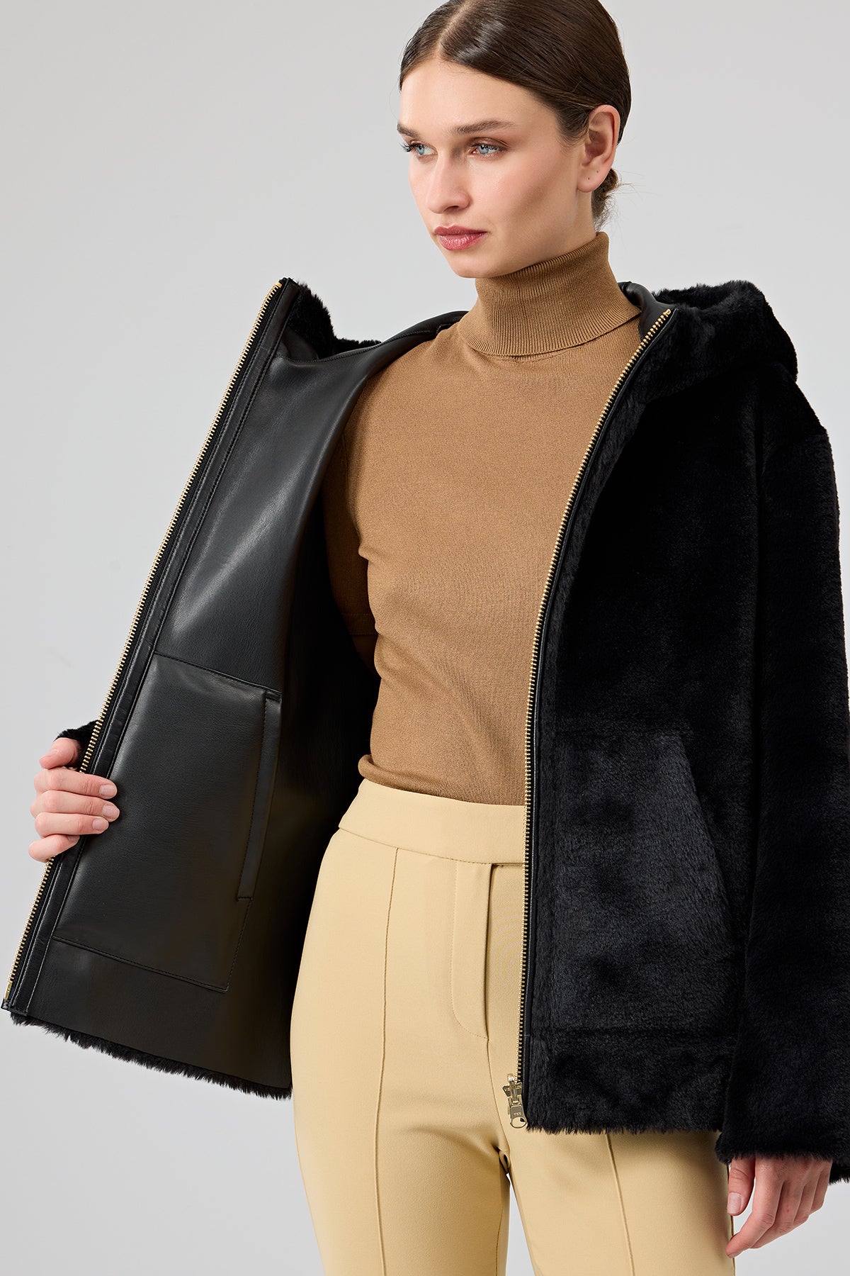 Gardena Kadın Siyah Çift Taraflı Teddy Mont