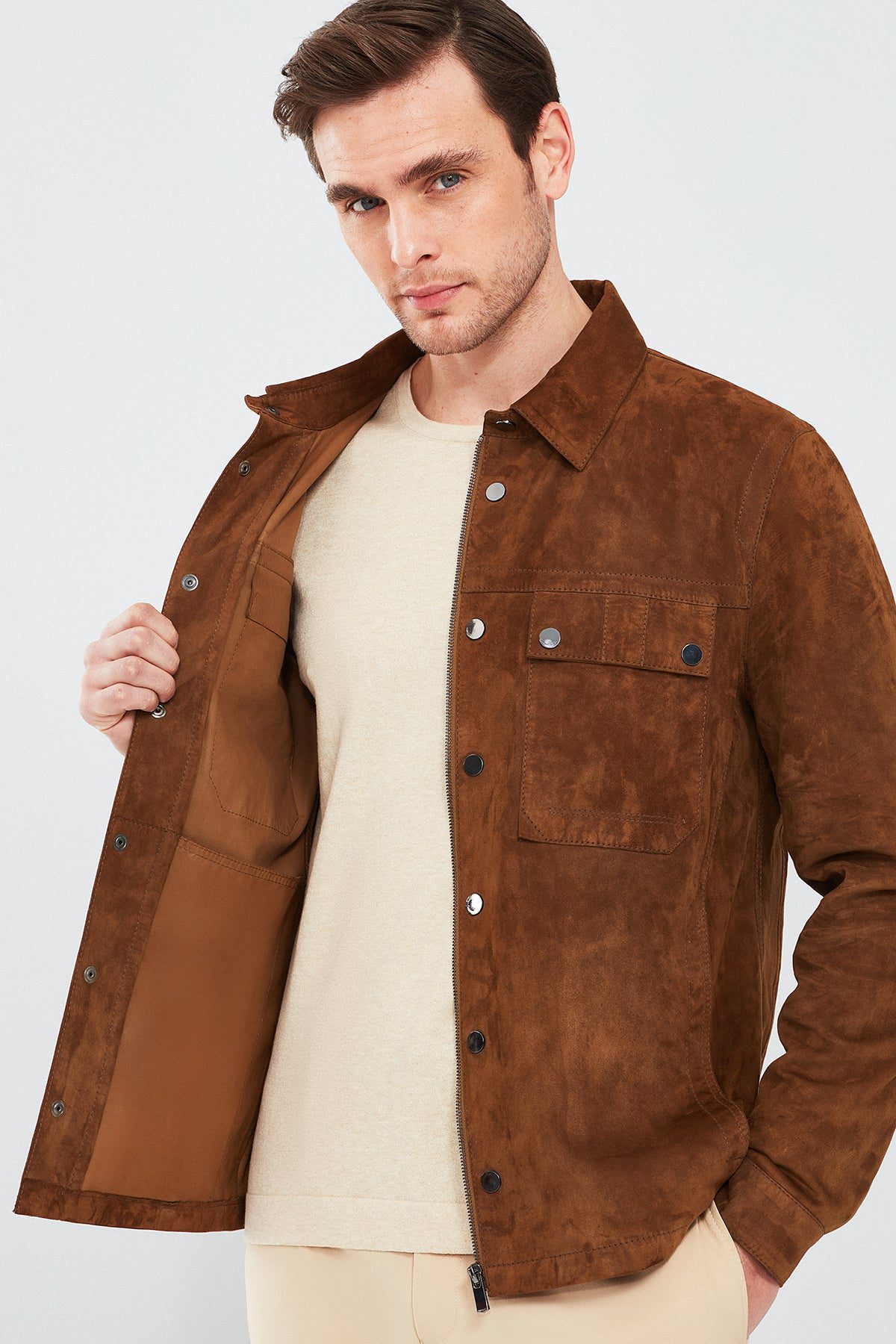Gavi Erkek Kahverengi Süet Deri Mont