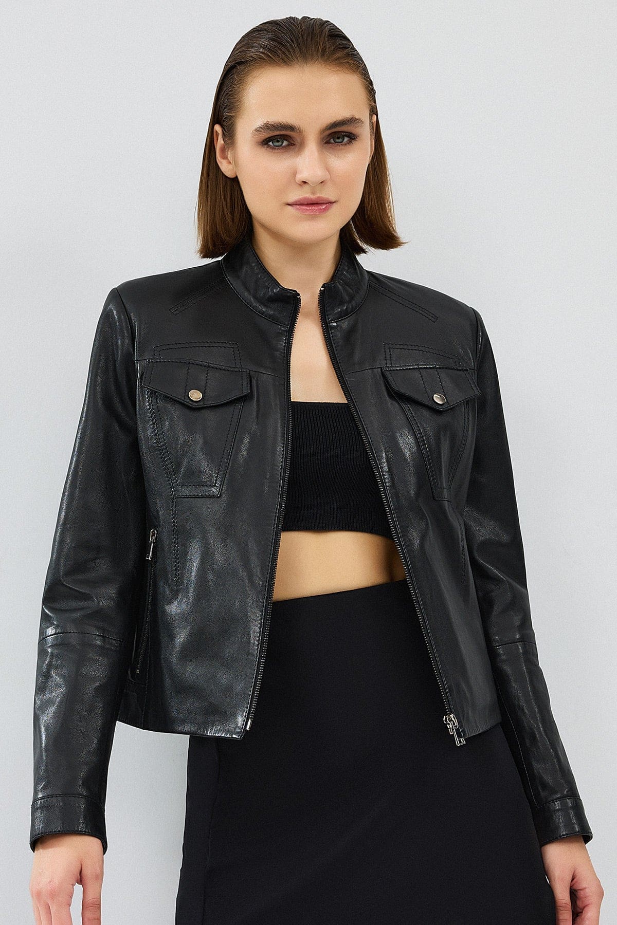 کت چرمی کوتاه مشکی زنانه Gigi دری مد