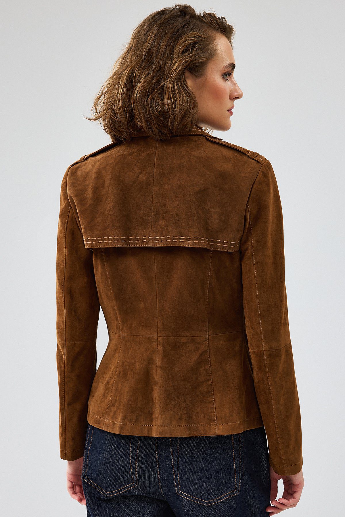 Giselle Kadın Taba Kısa Süet Deri Ceket