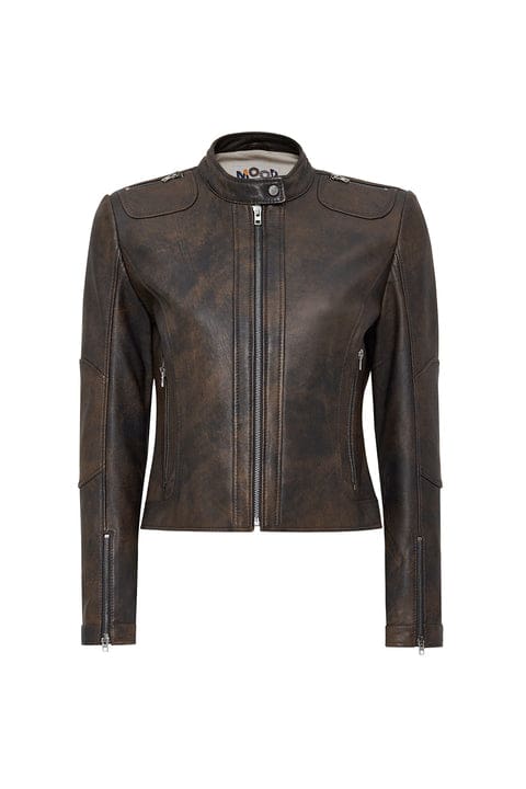 Glam Kadın Kahverengi Vintage Deri Ceket