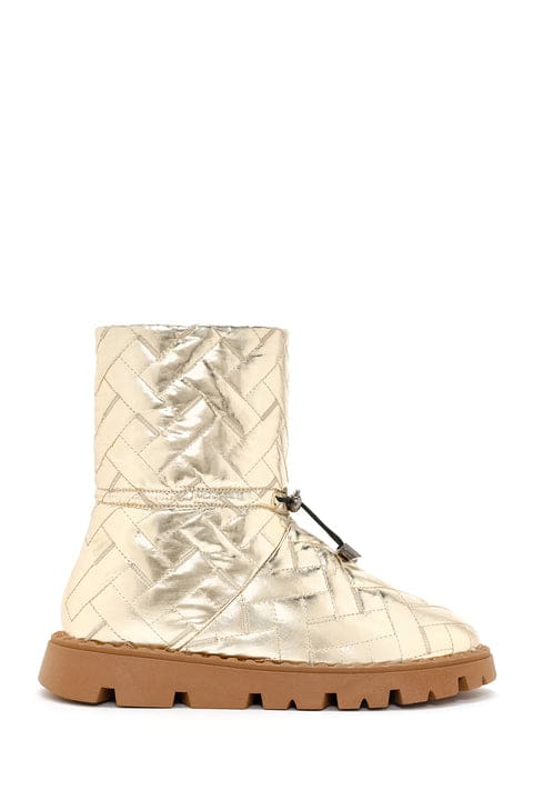 Kadın Altın Örgü Desenli Metalik Casual Bot