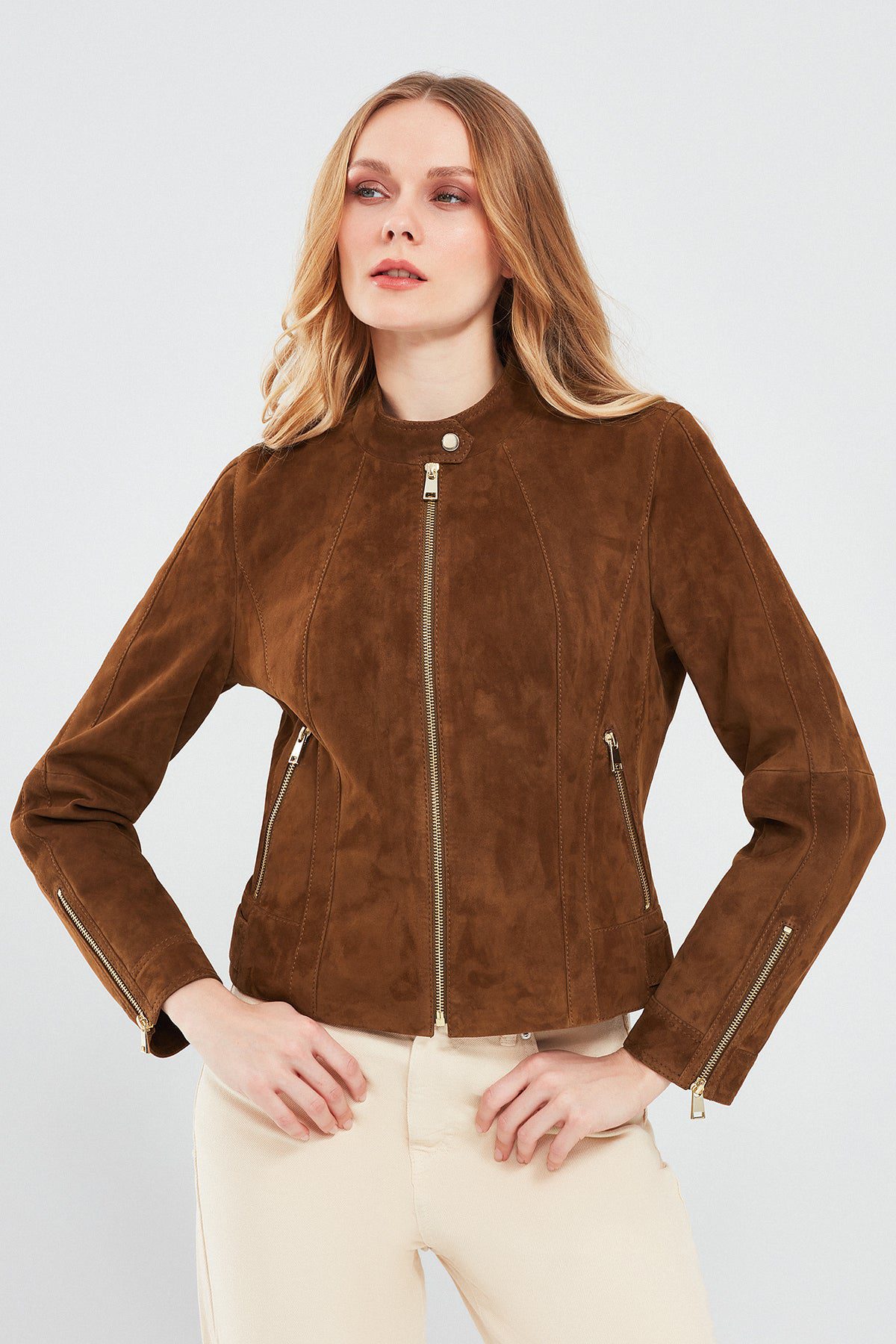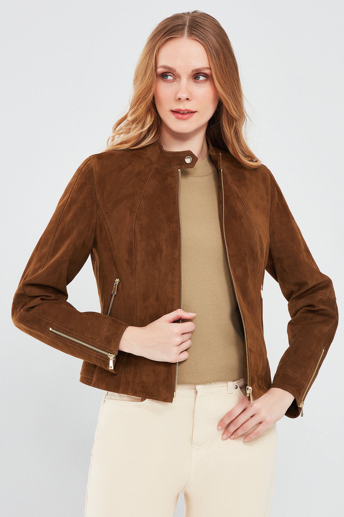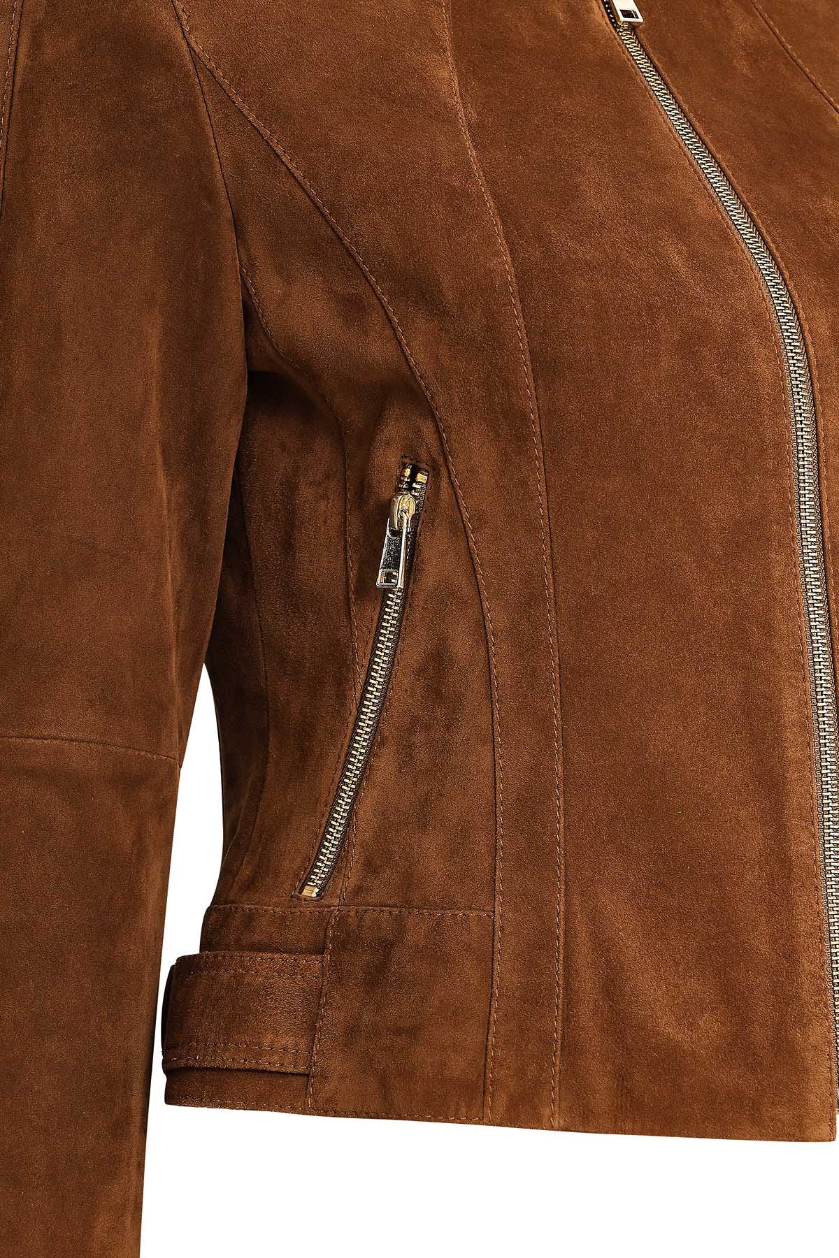 Grace Kadın Kahverengi Kısa Süet Deri Ceket