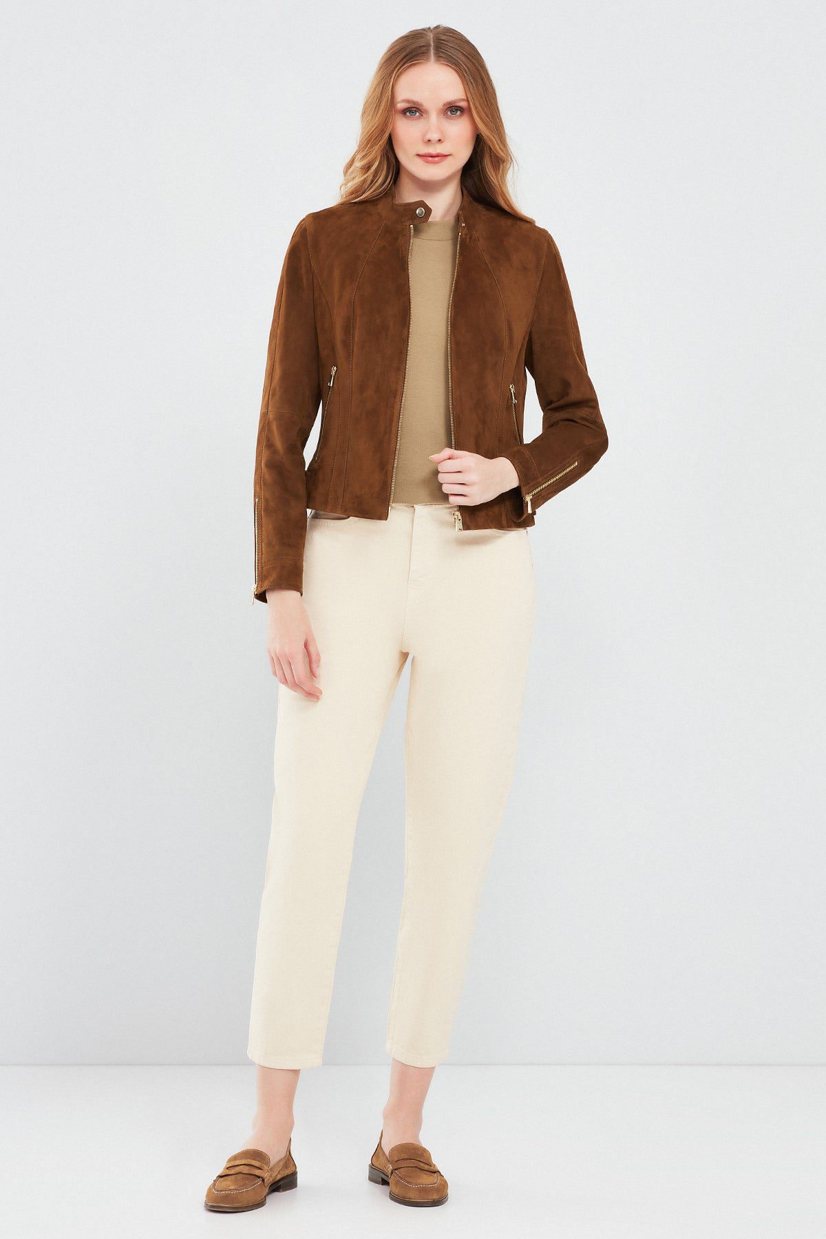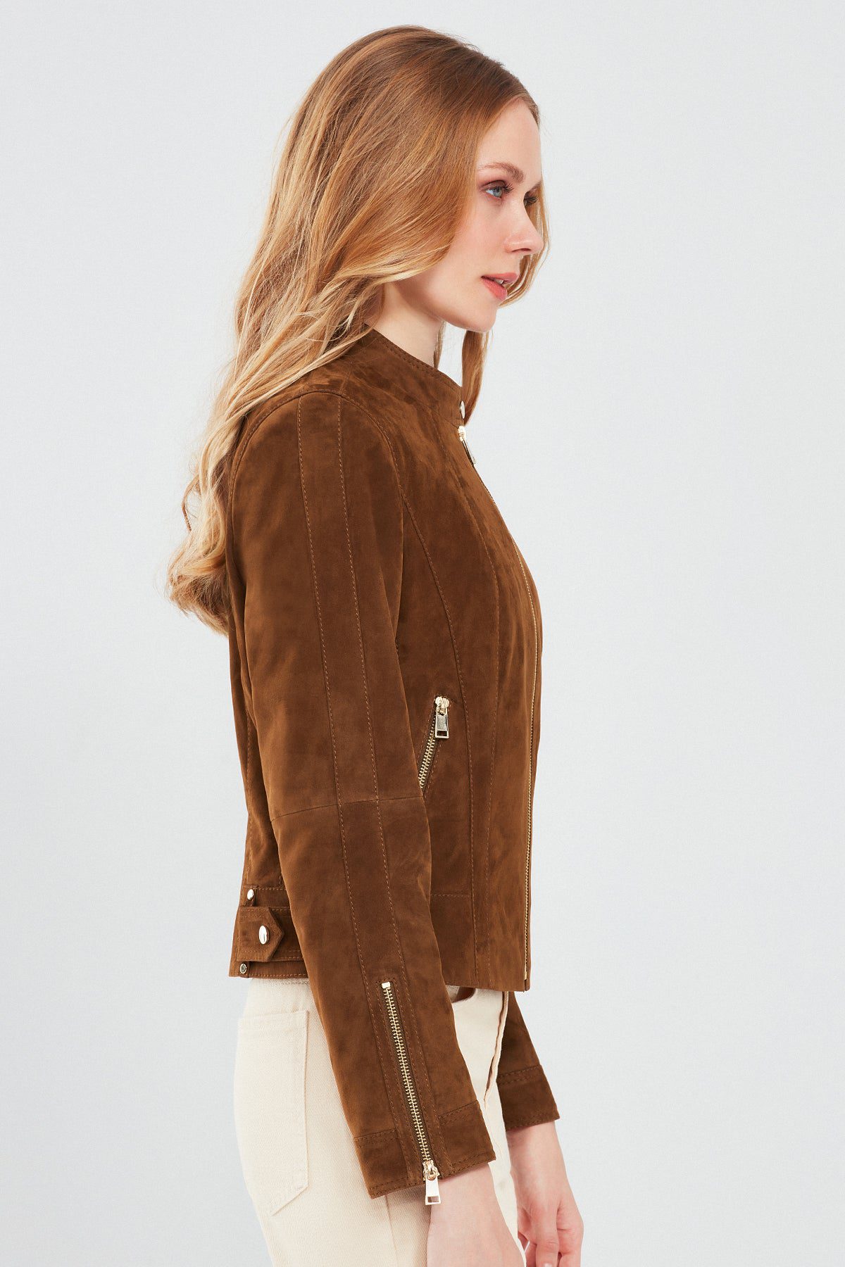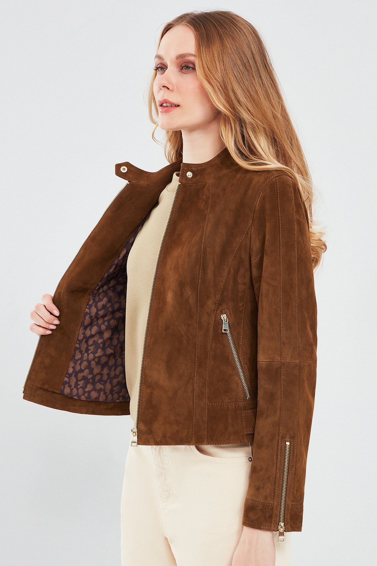 Grace Kadın Kahverengi Kısa Süet Deri Ceket