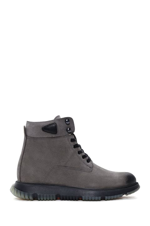 Erkek Gri Nubuk Deri Fermuarlı Casual Bot