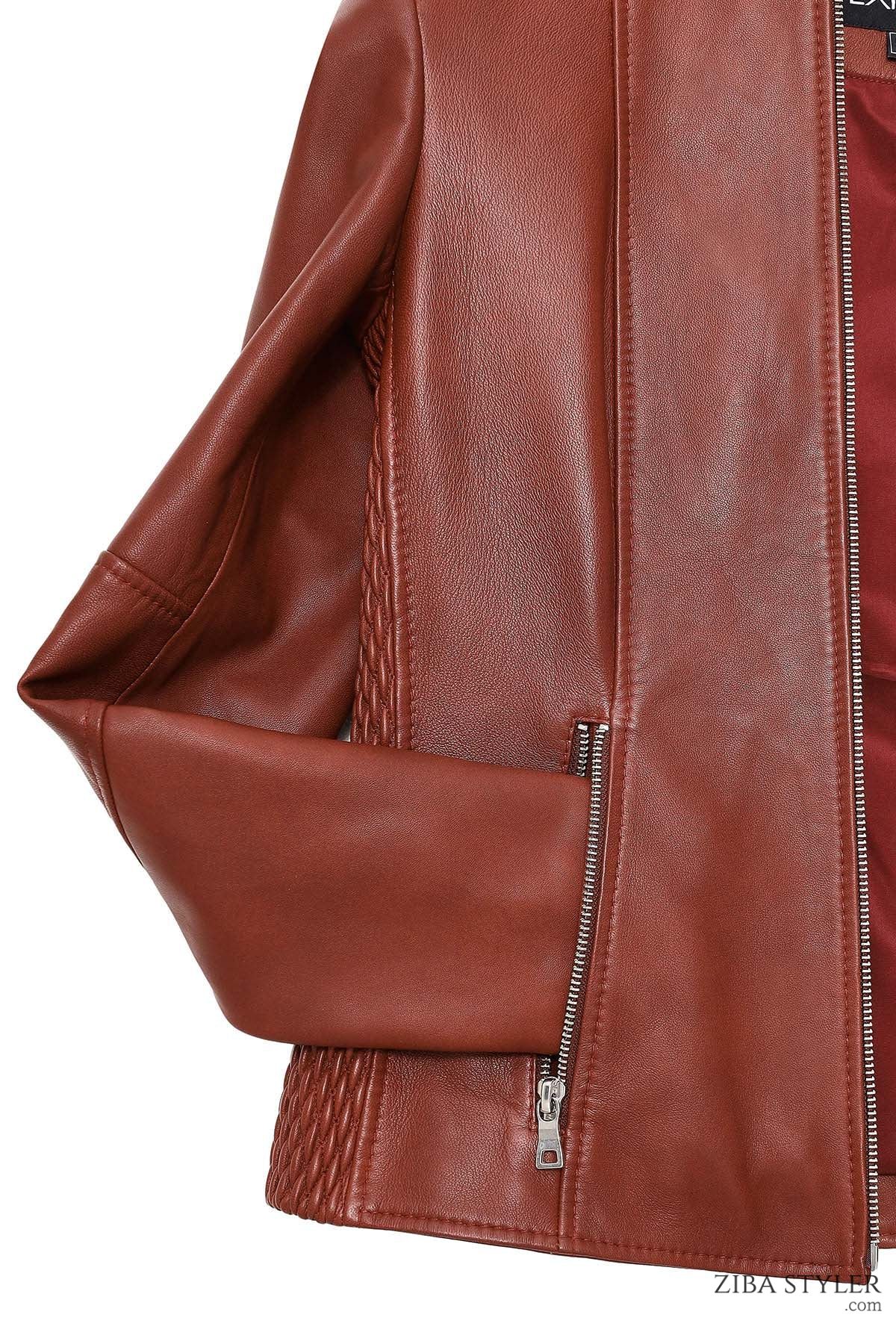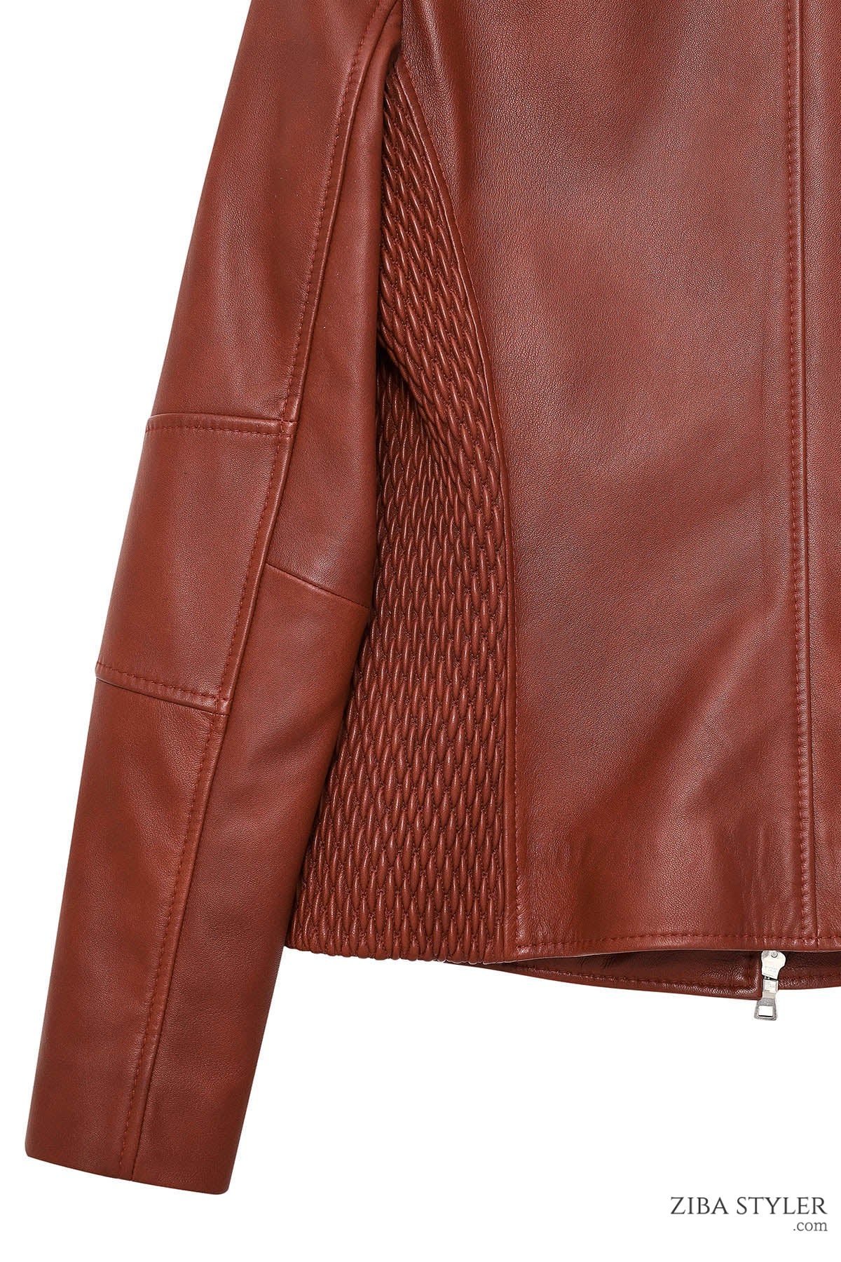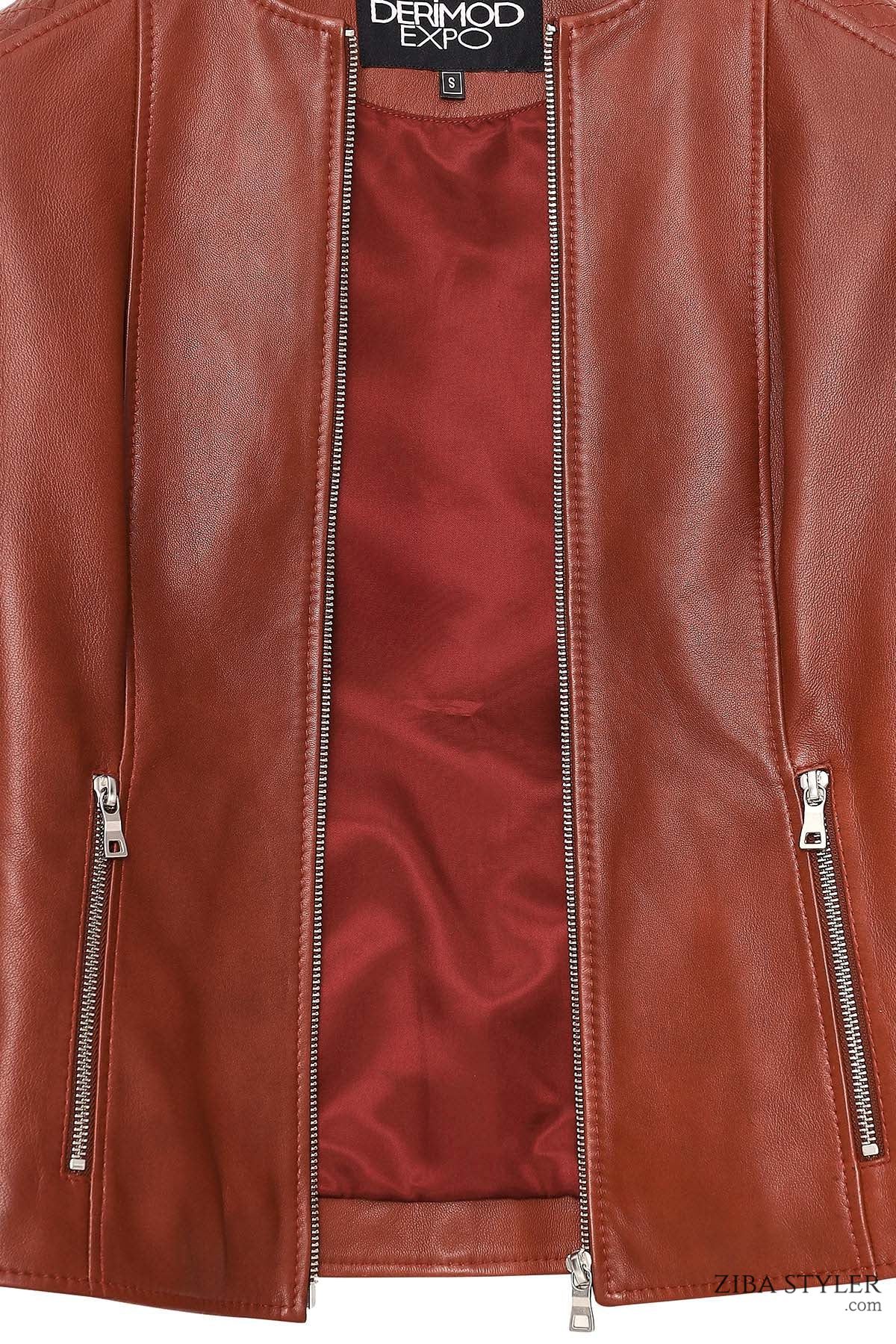 کت چرمی یقه ای زنانه قهوه ای ایرینا دری مد