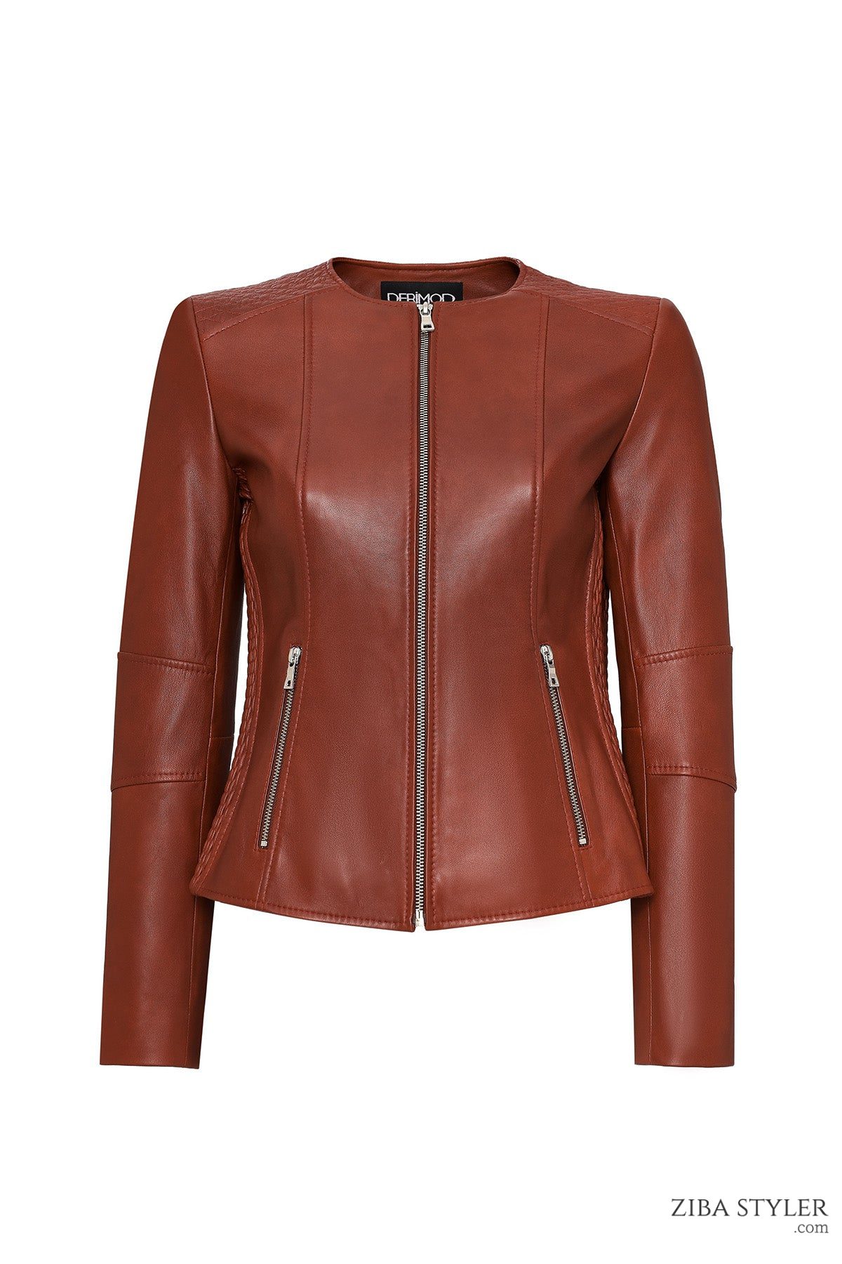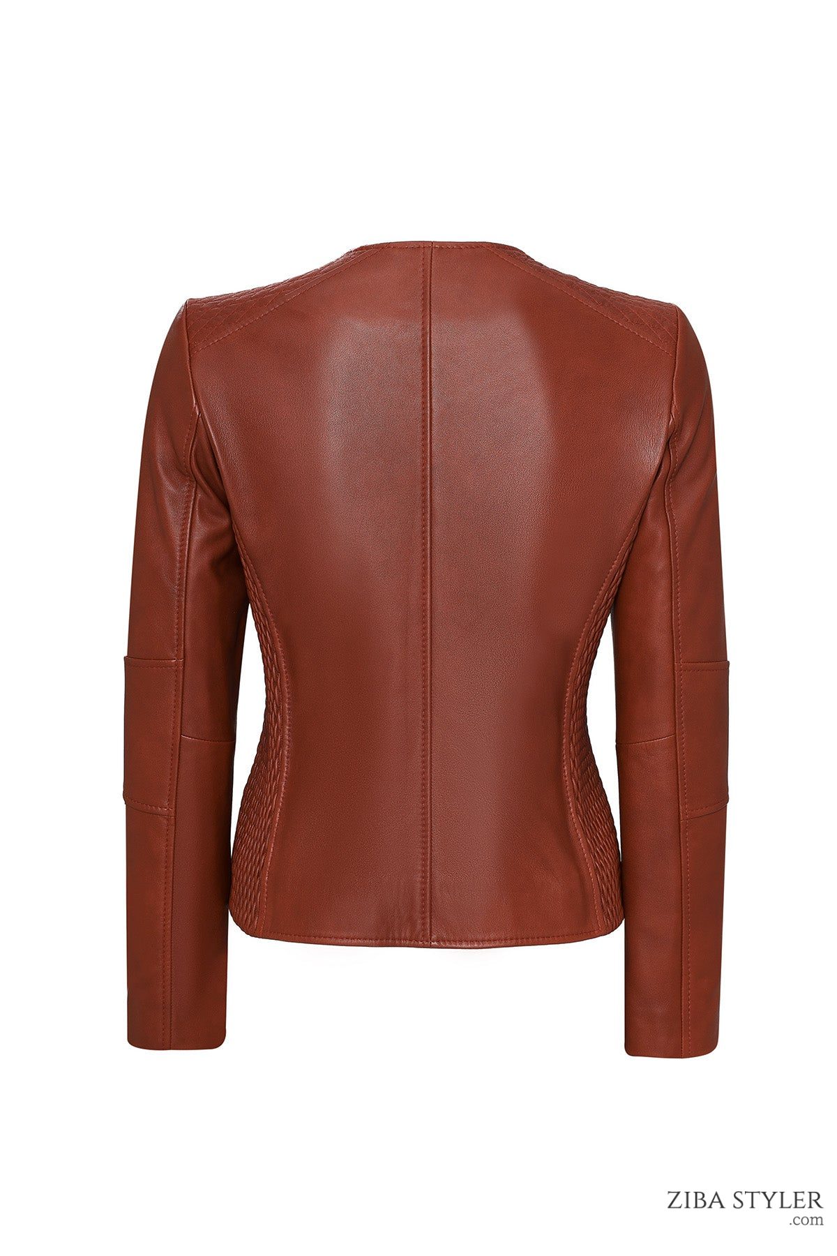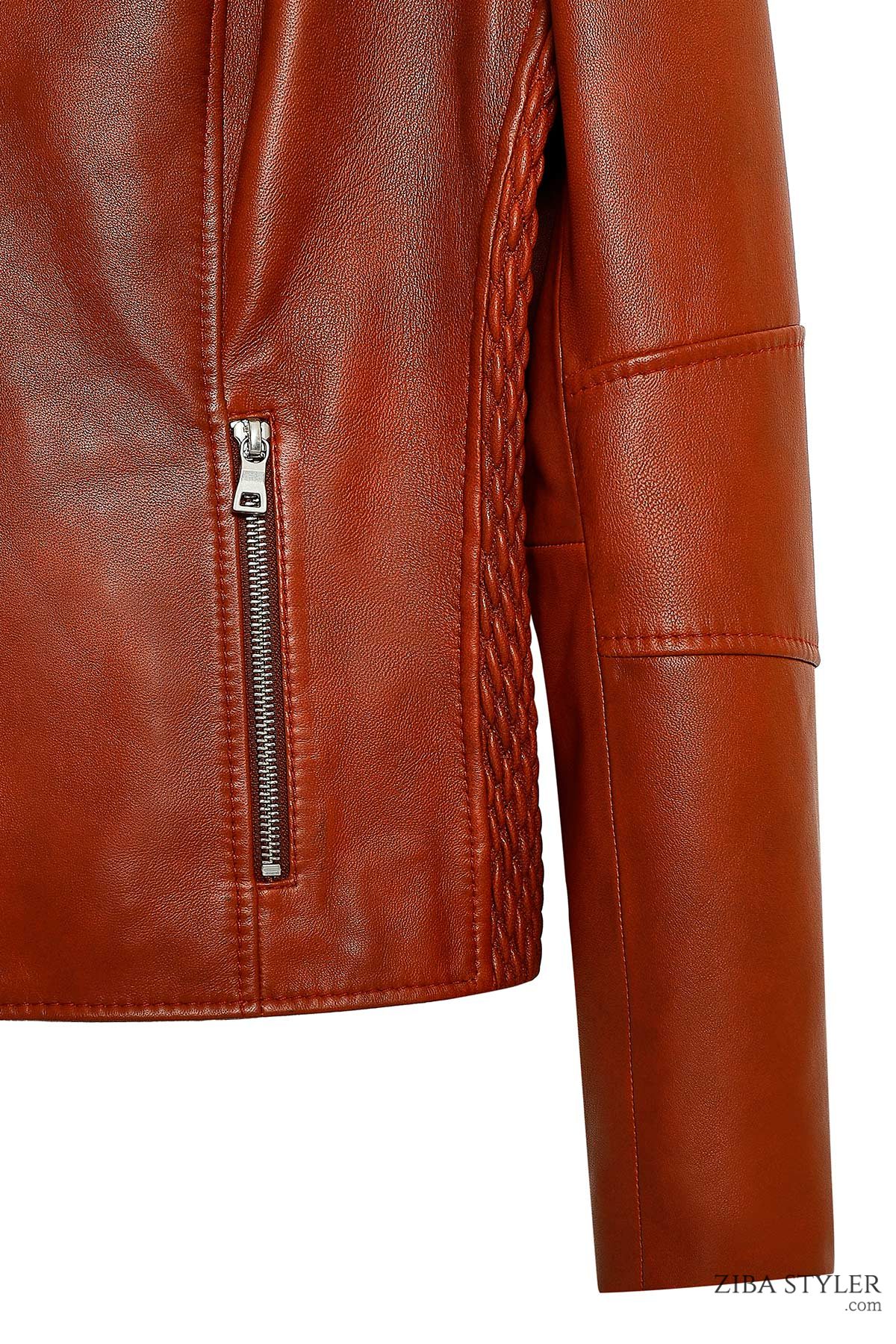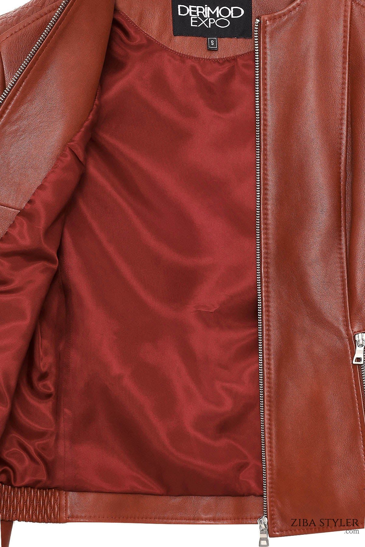 کت چرمی یقه ای زنانه قهوه ای ایرینا دری مد