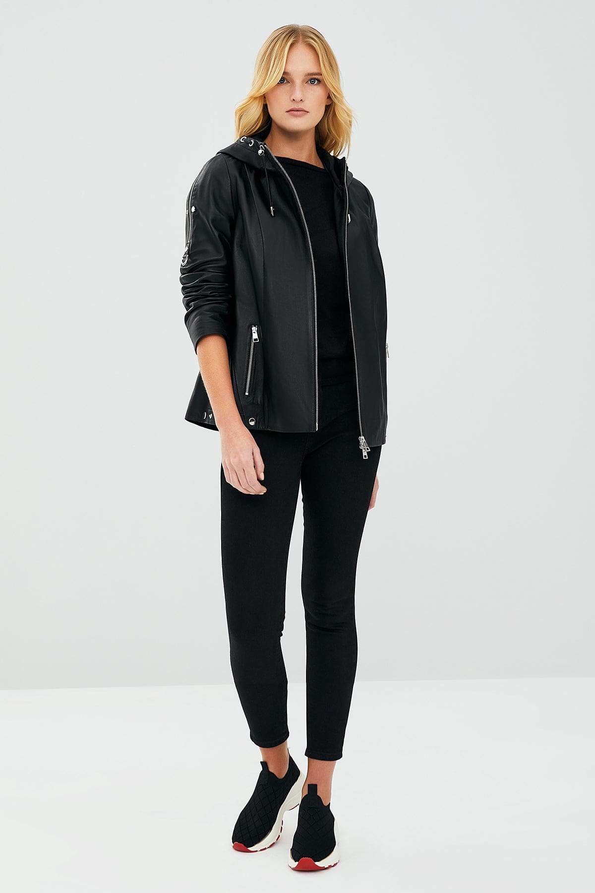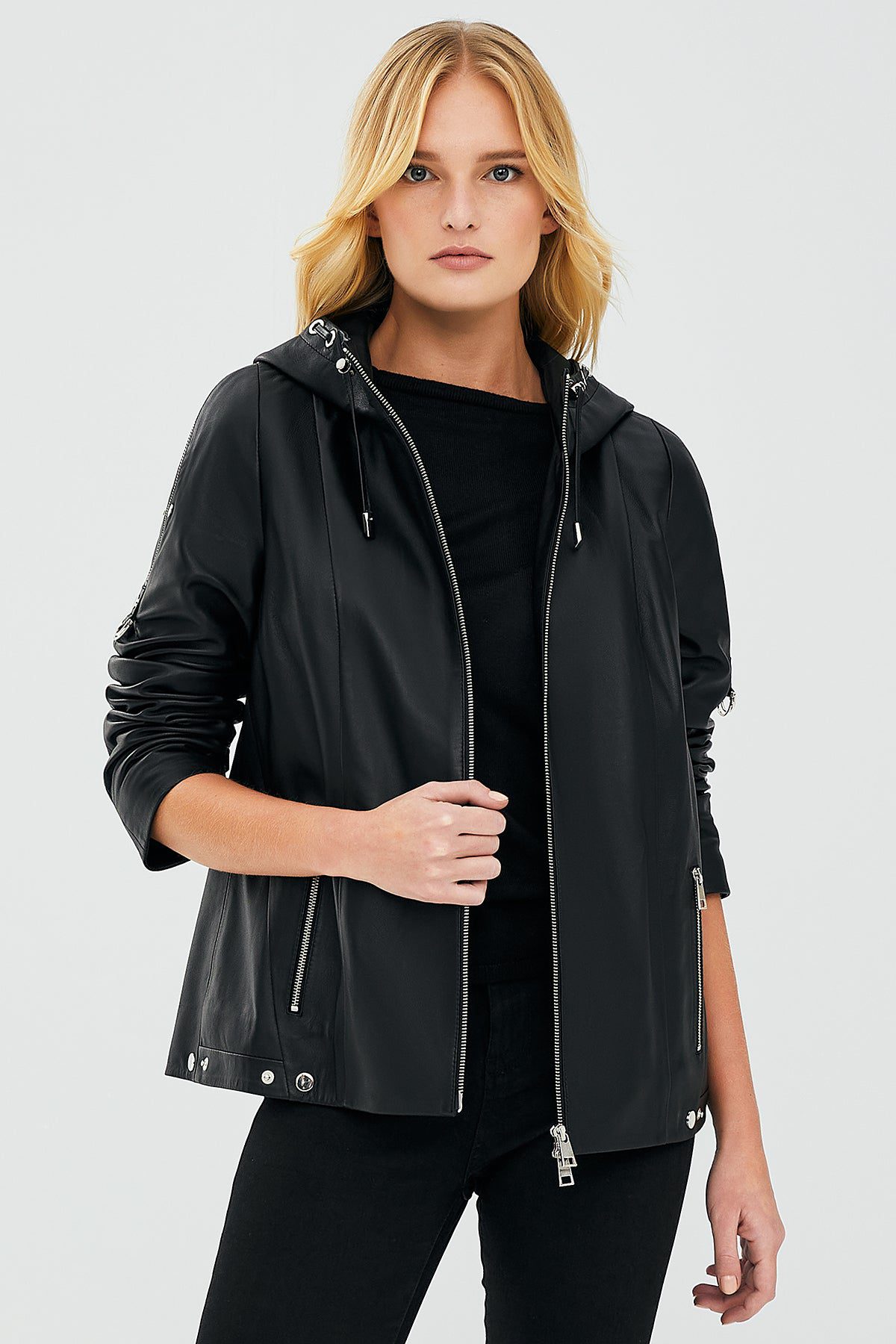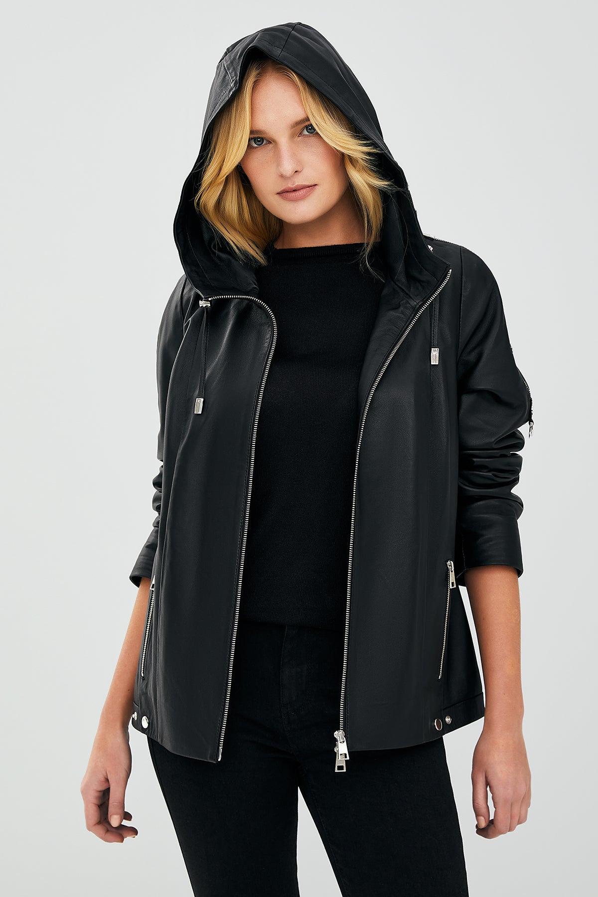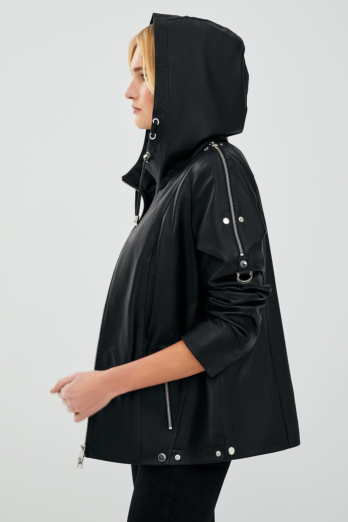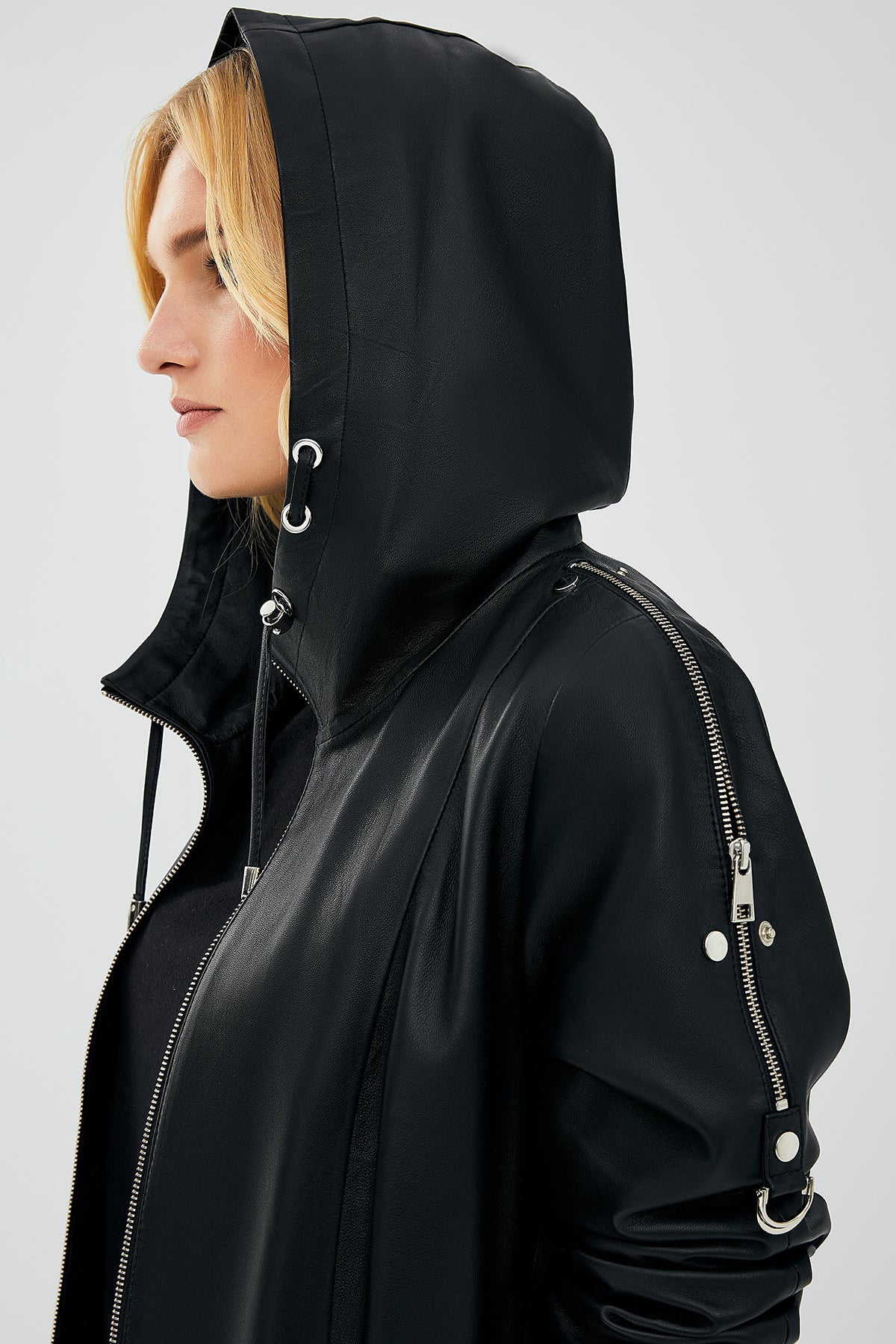کت چرم کلاهدار مشکی زنانه جودیت دری مد