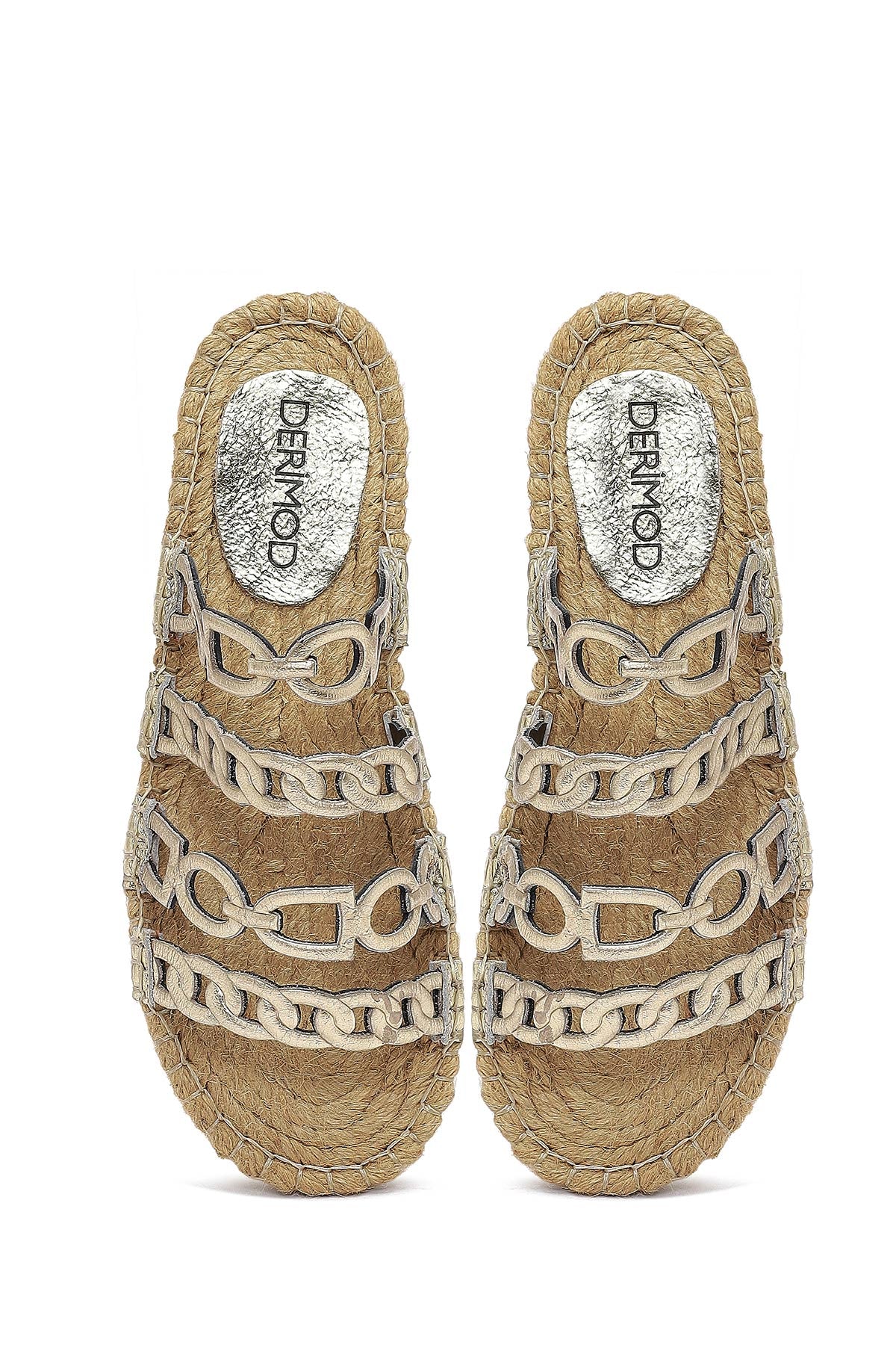 Kadın Altın Metalik Deri Terlik
