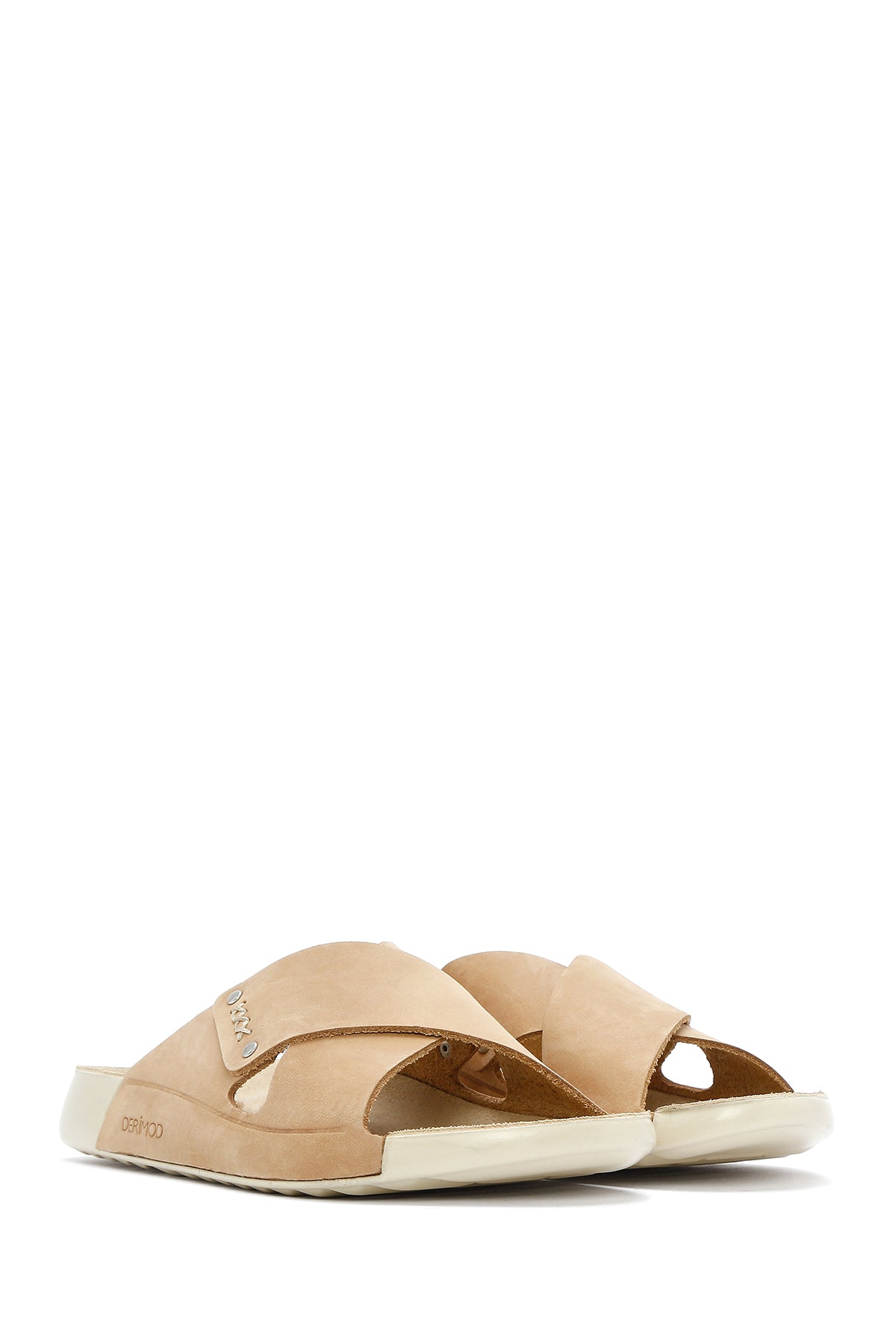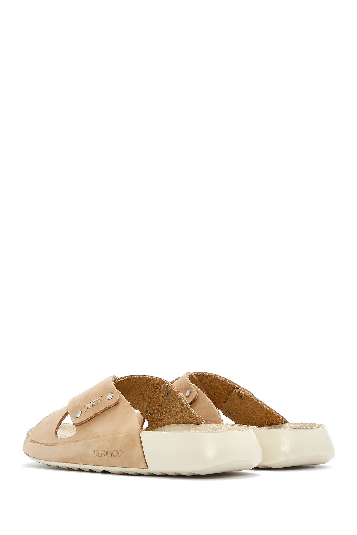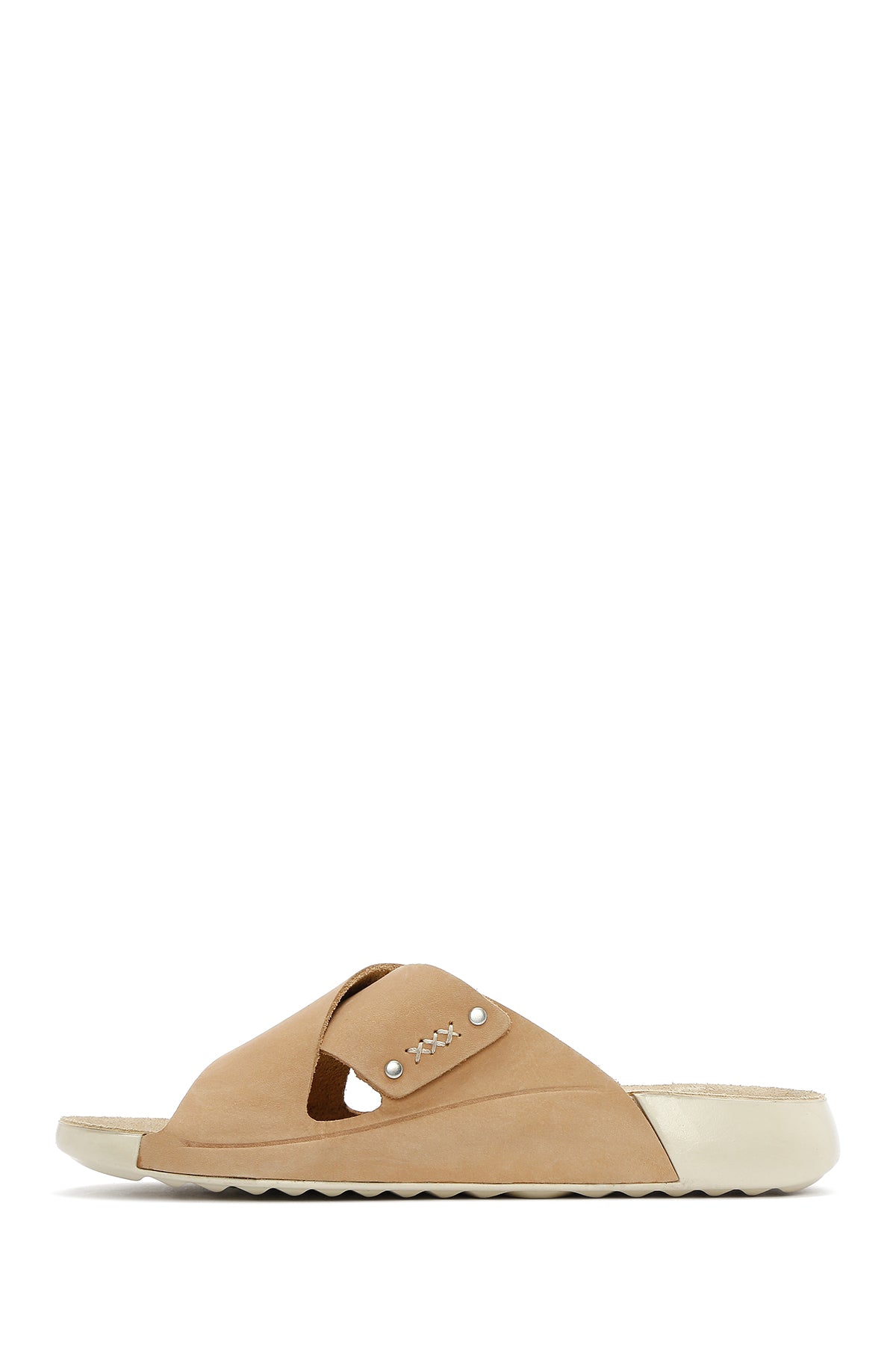 Kadın Bej Bantlı Nubuk Deri Comfort Terlik