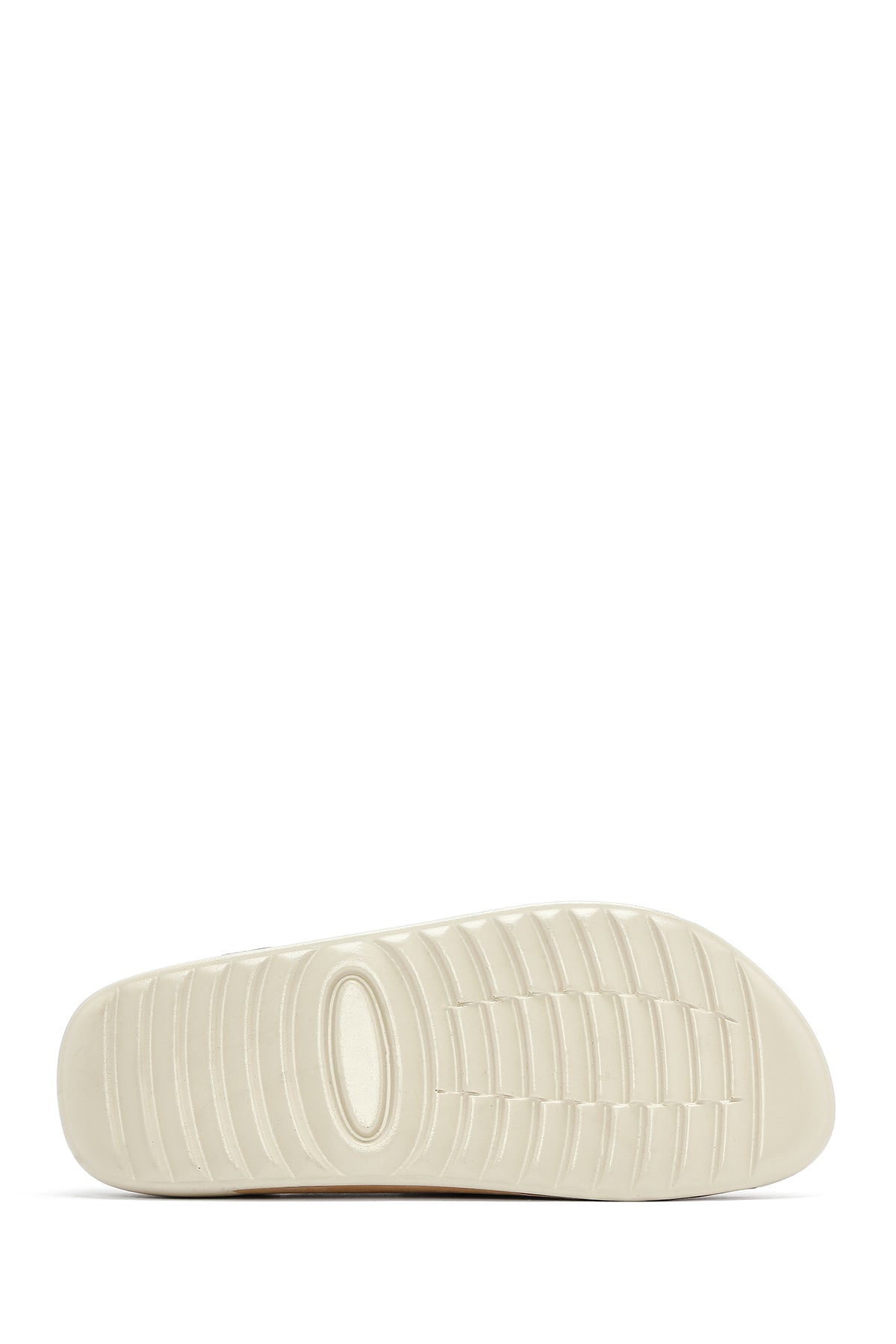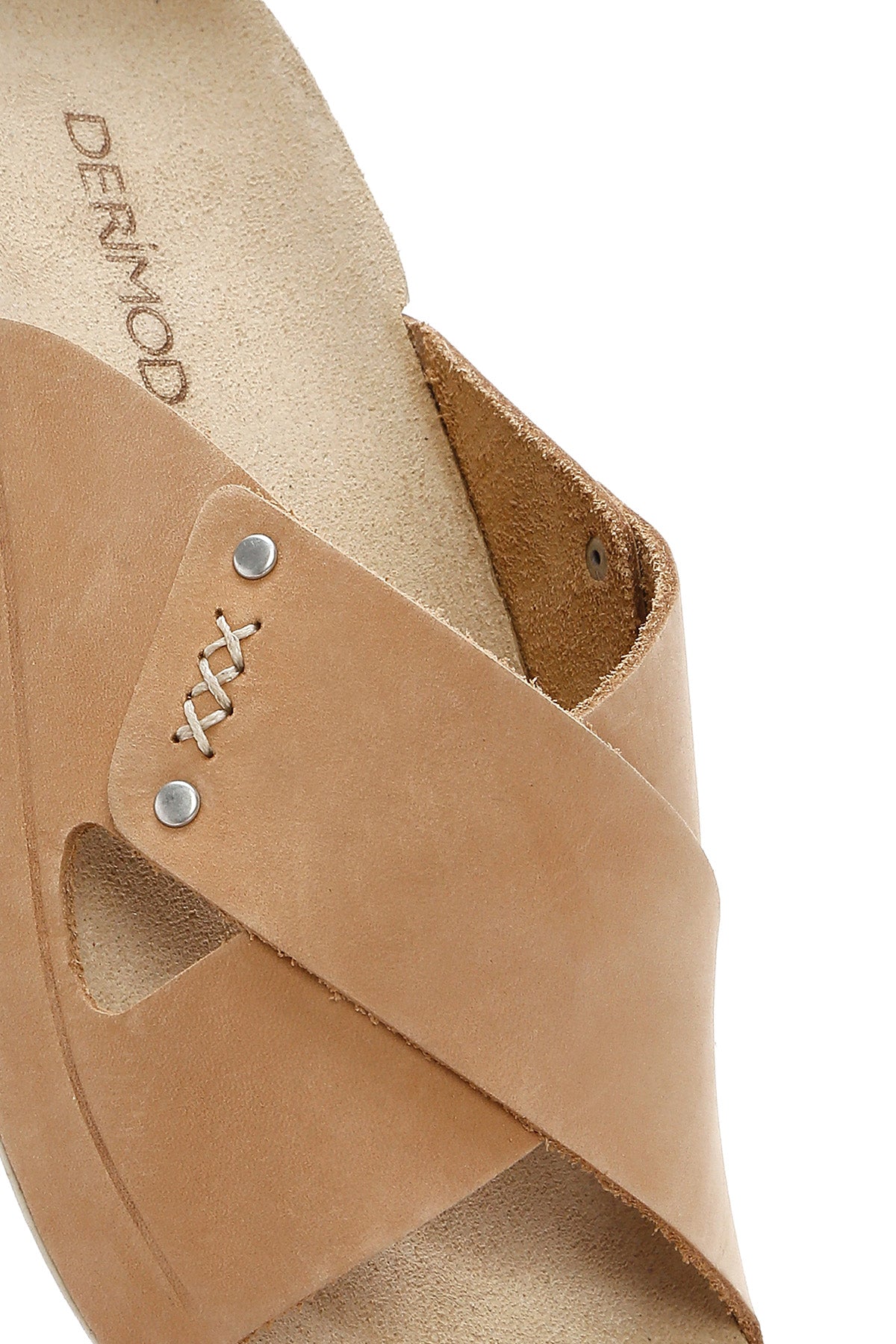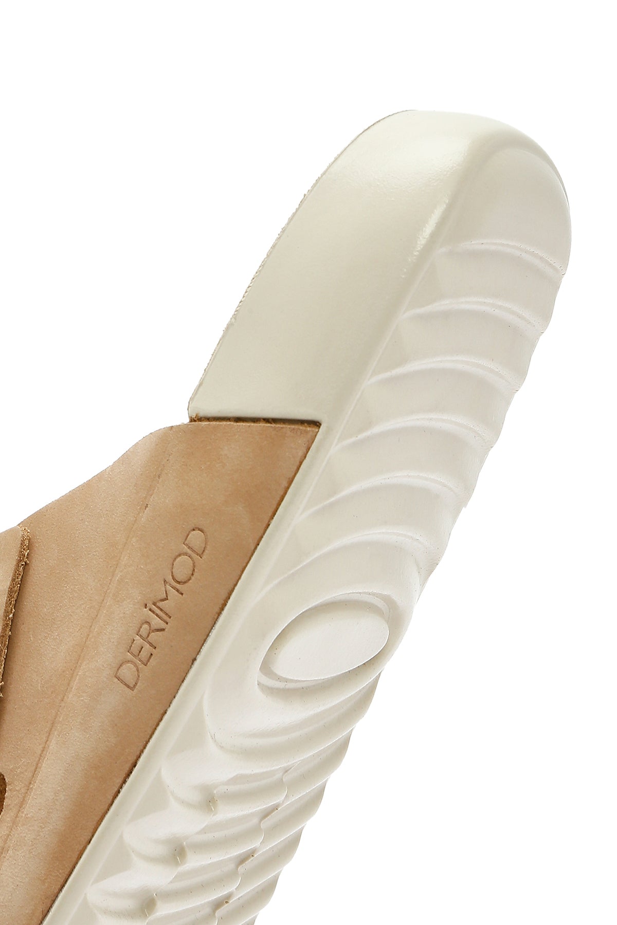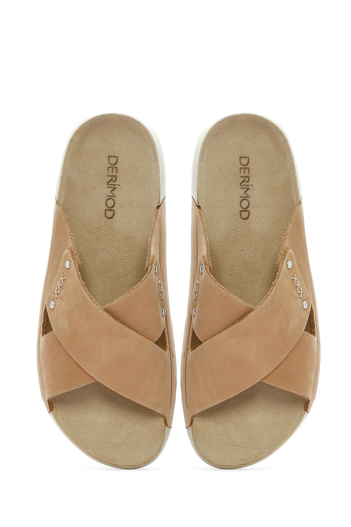 Kadın Bej Bantlı Nubuk Deri Comfort Terlik