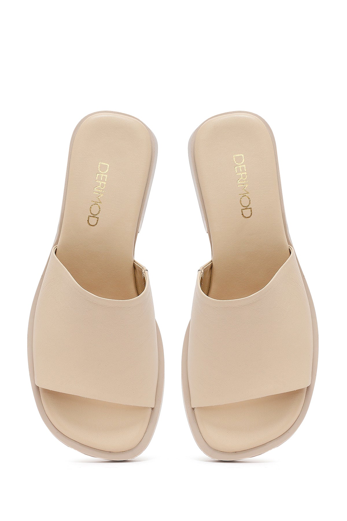 Kadın Krem Casual Deri Terlik