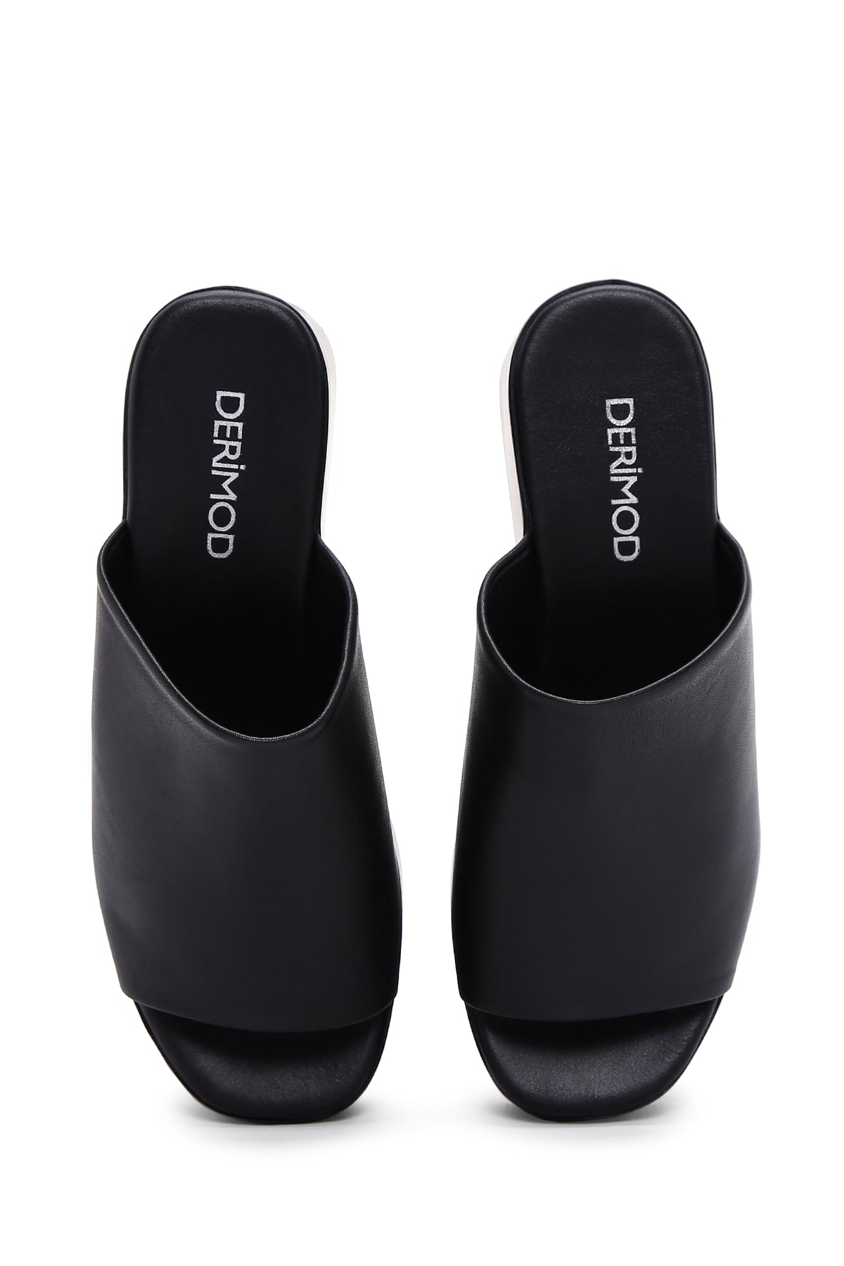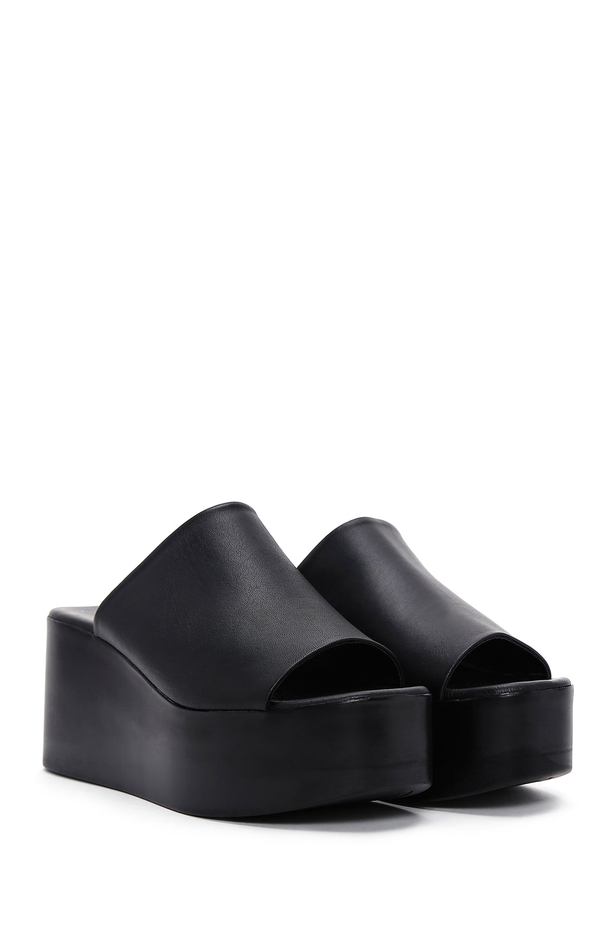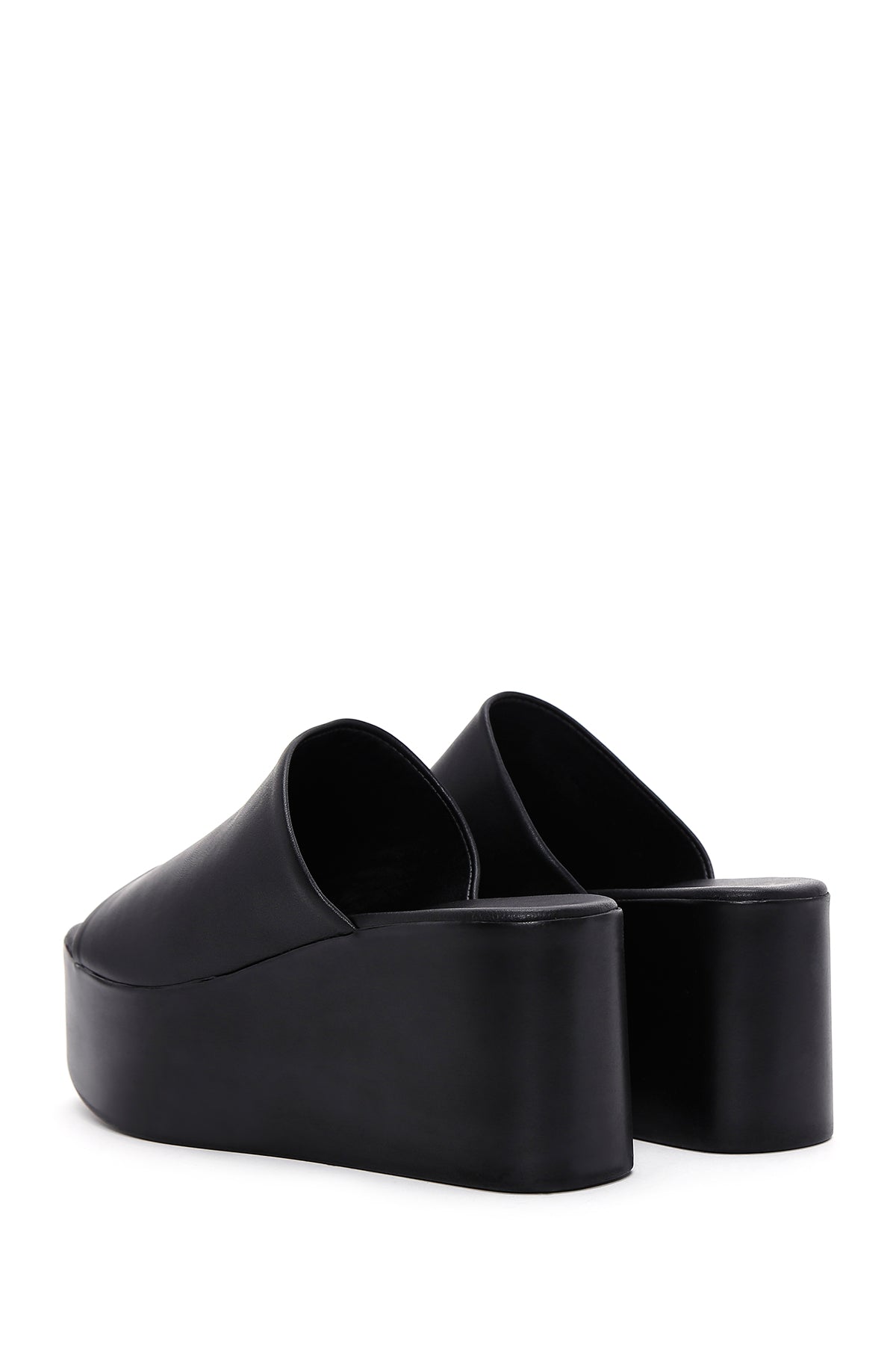 Kadın Siyah Dolgu Topuklu Deri Terlik