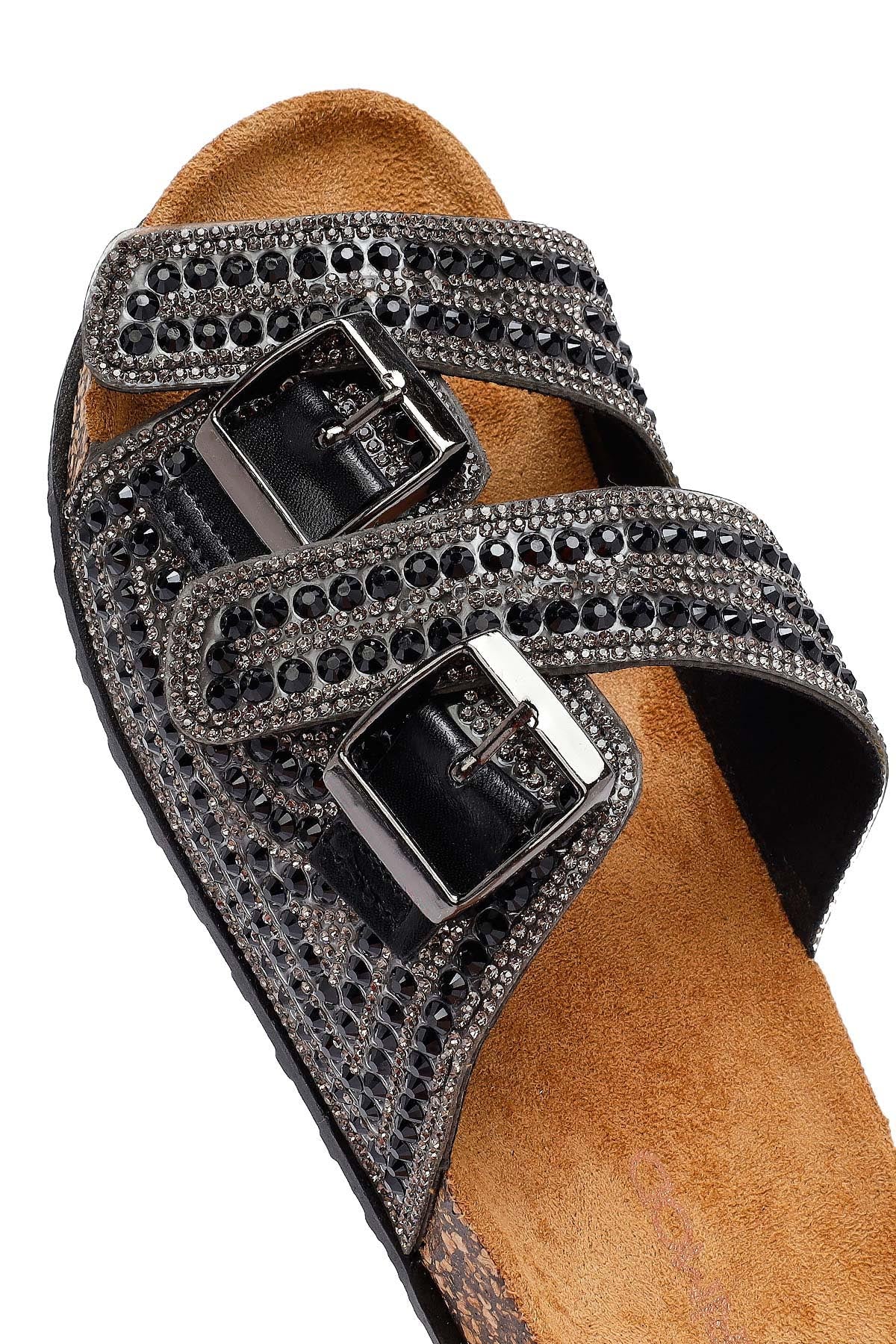 Kadın Siyah Taşlı Terlik