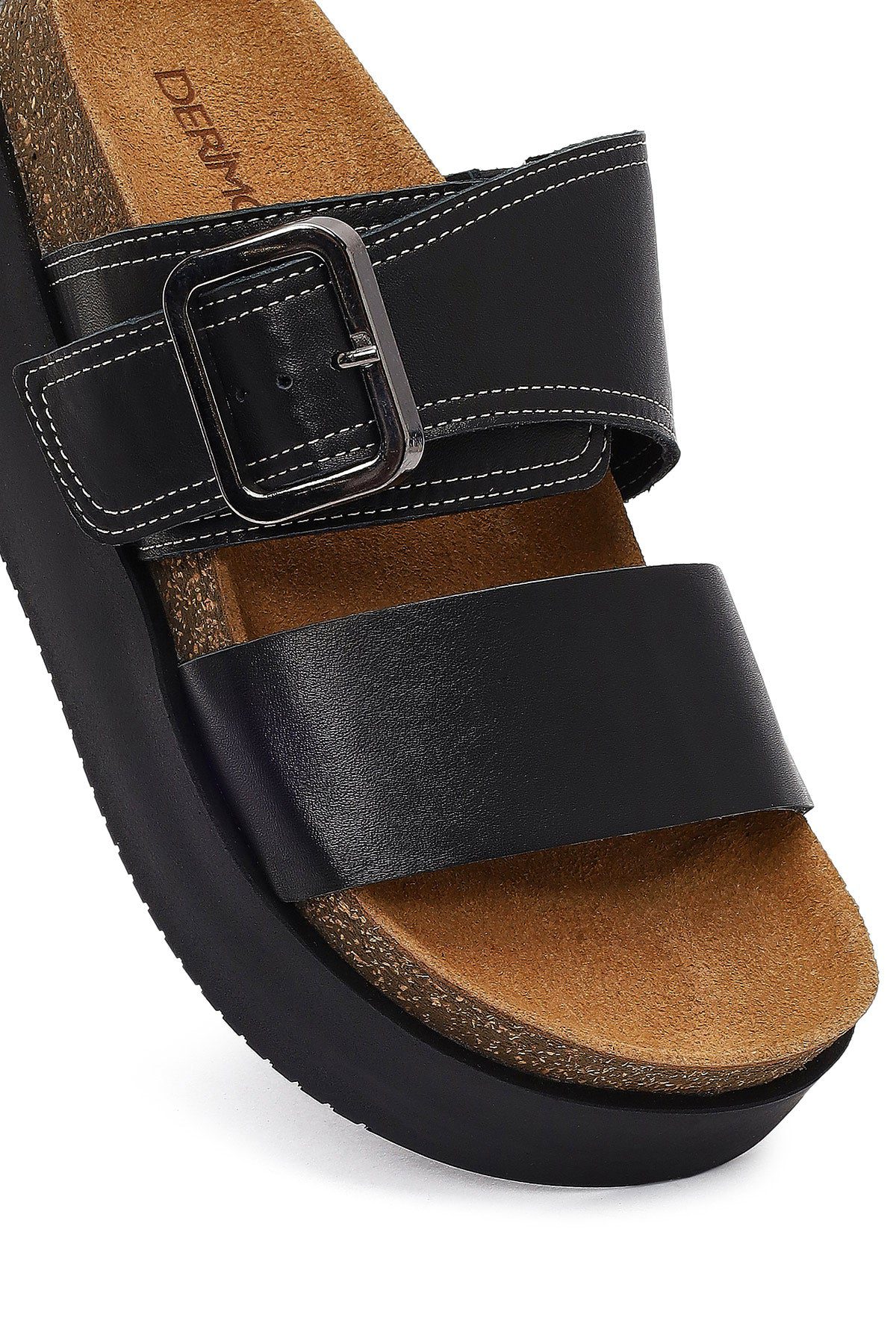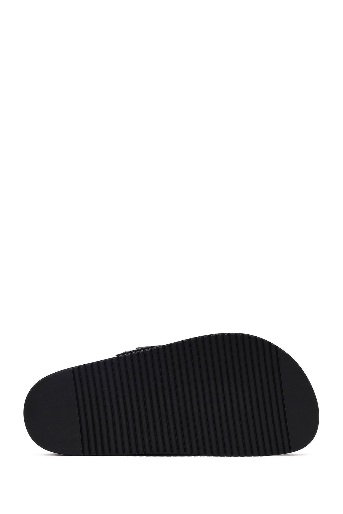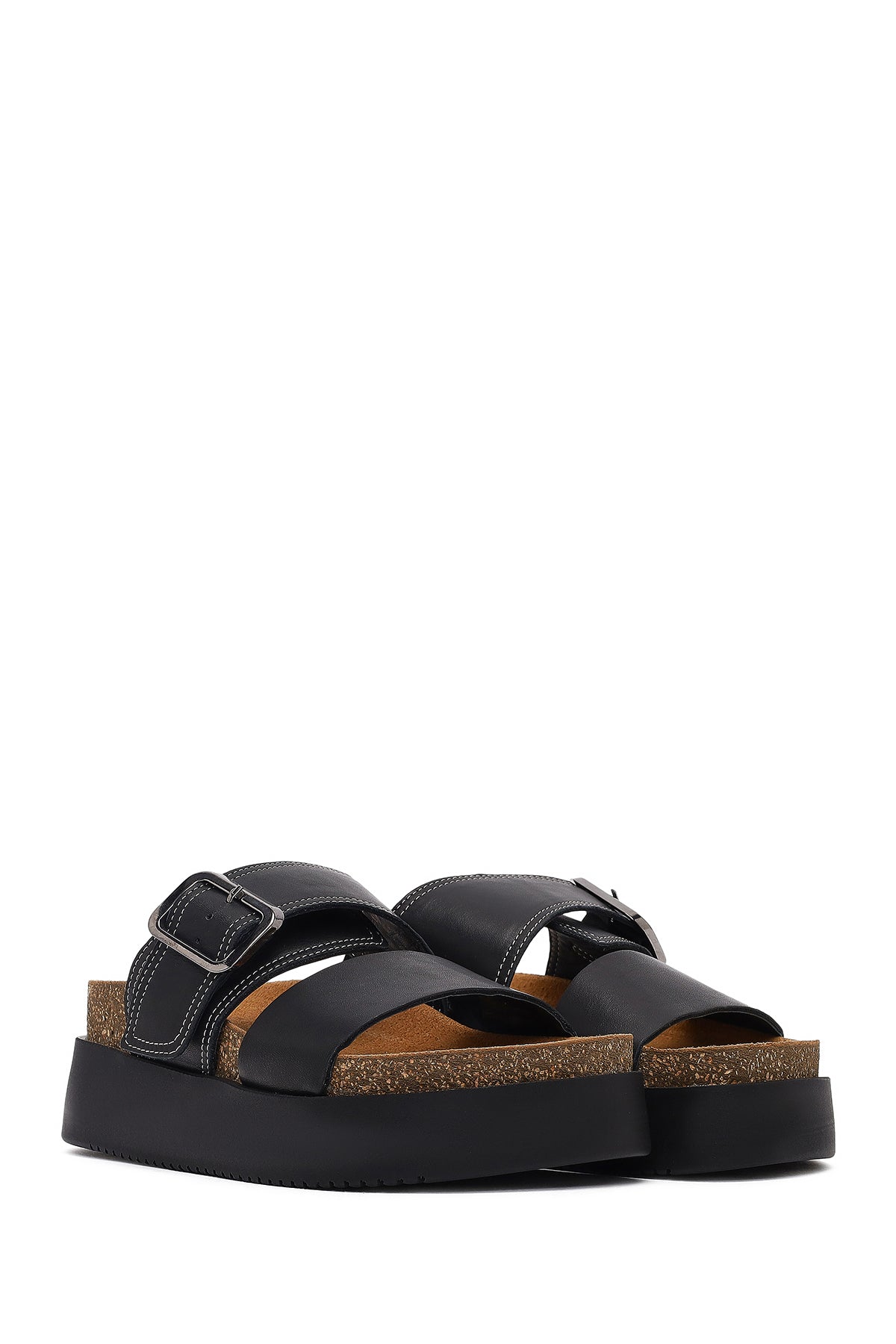 Kadın Siyah Tokalı Kalın Tabanlı Deri Terlik