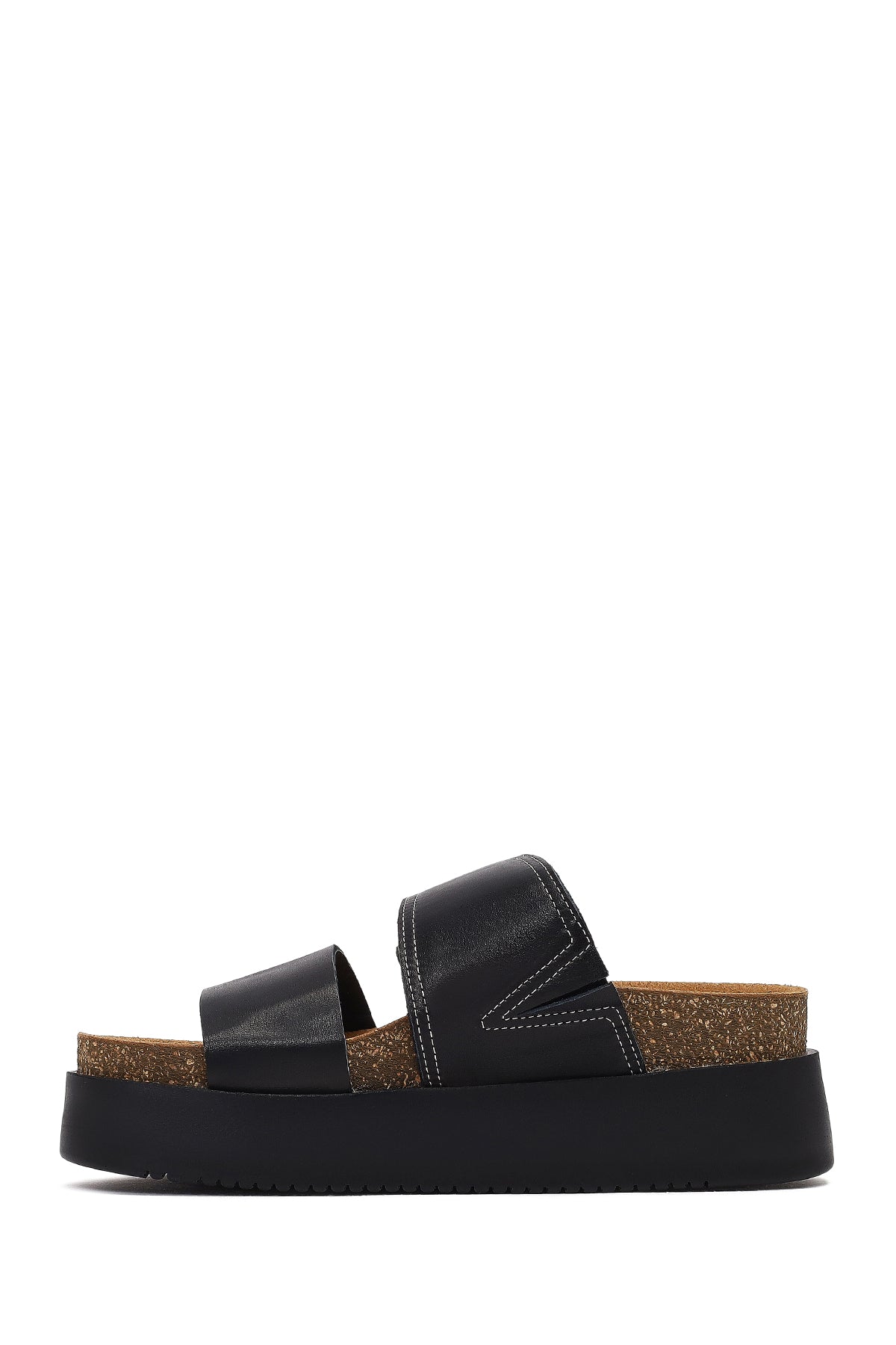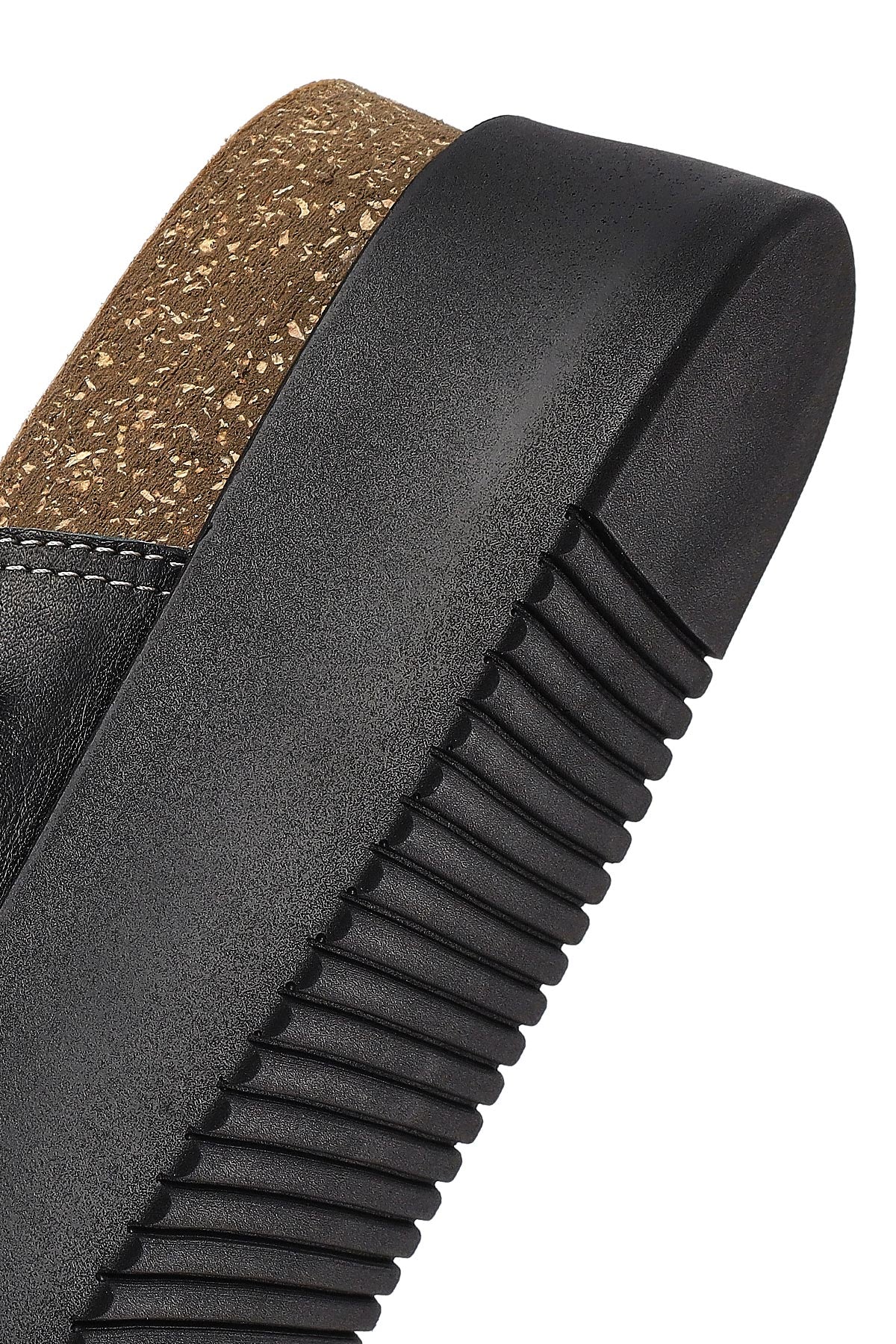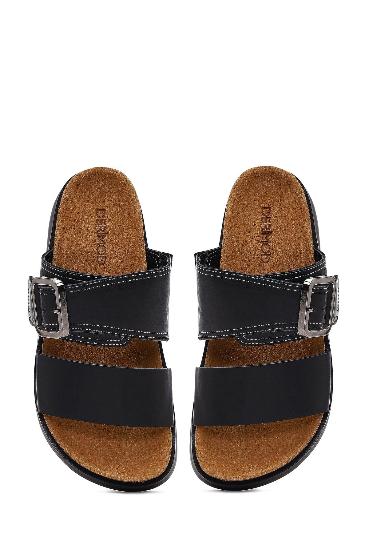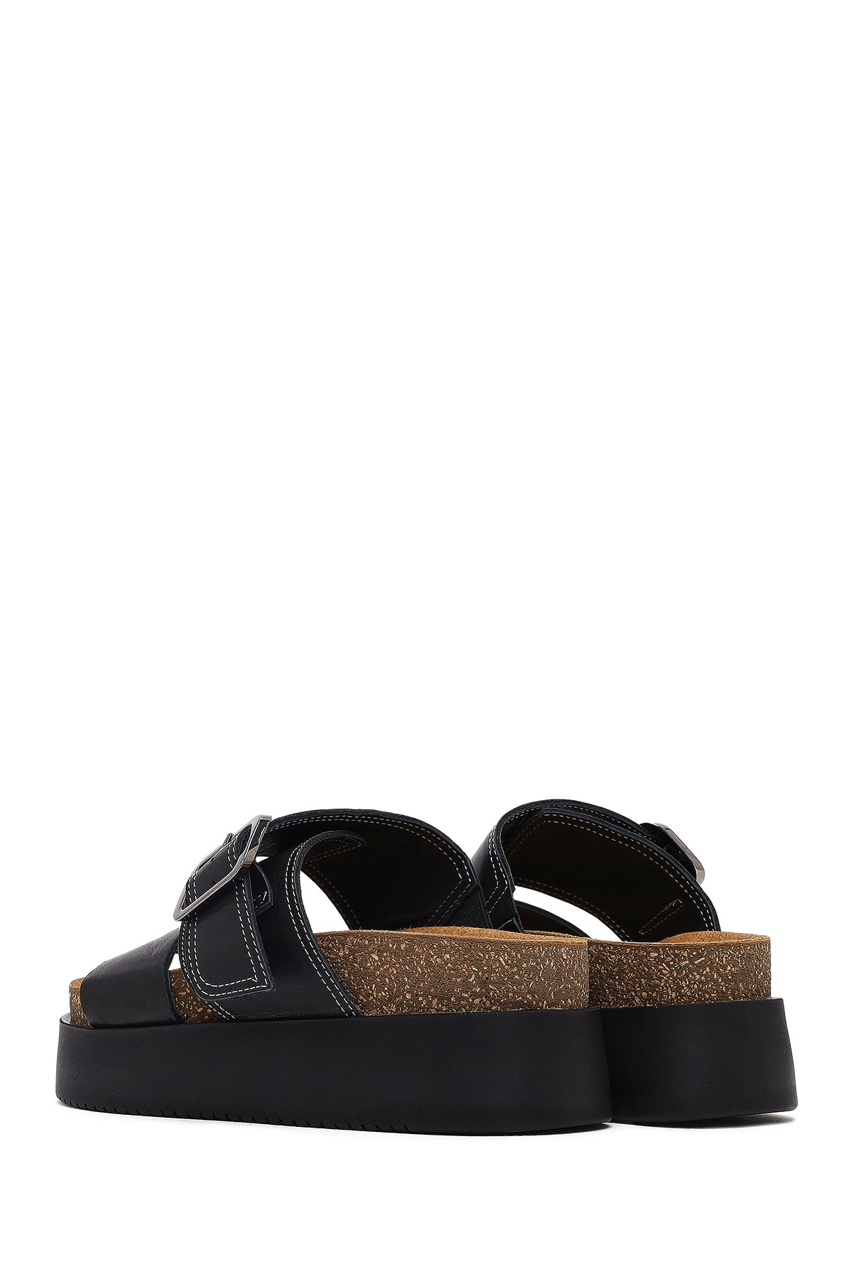 Kadın Siyah Tokalı Kalın Tabanlı Deri Terlik
