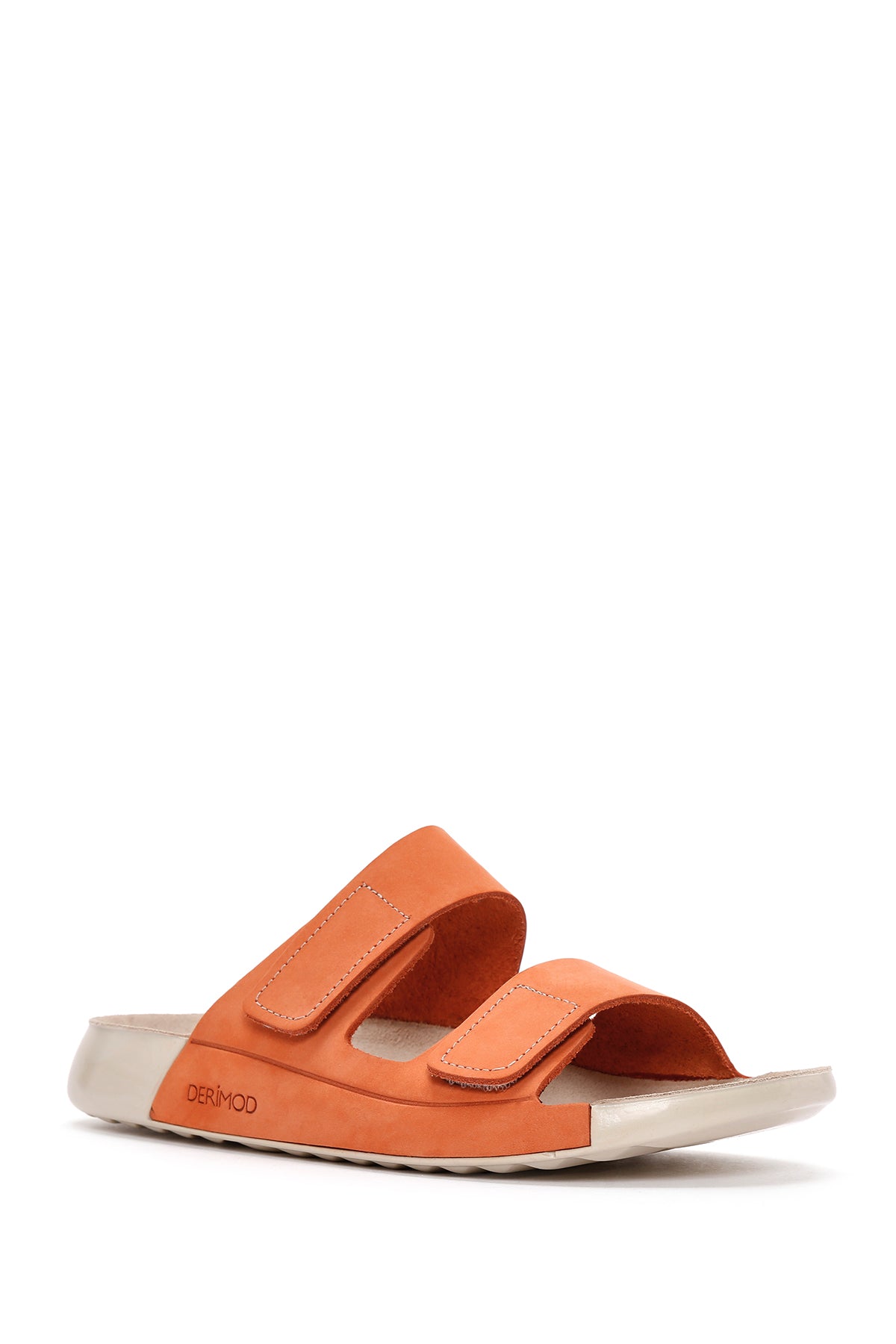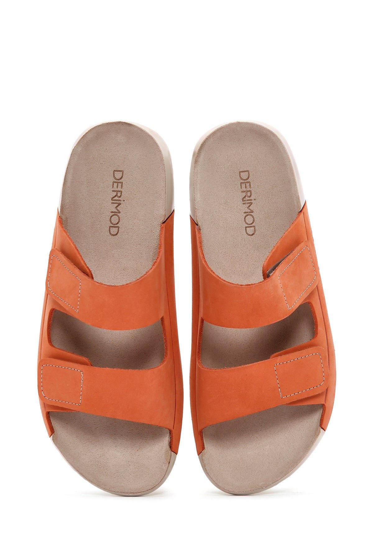Kadın Turuncu Bantlı Nubuk Deri Comfort Terlik