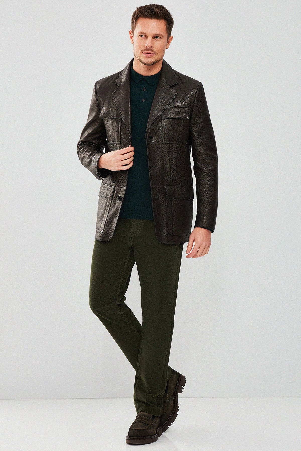 Kane Erkek Siyah Blazer Safari Deri Ceket