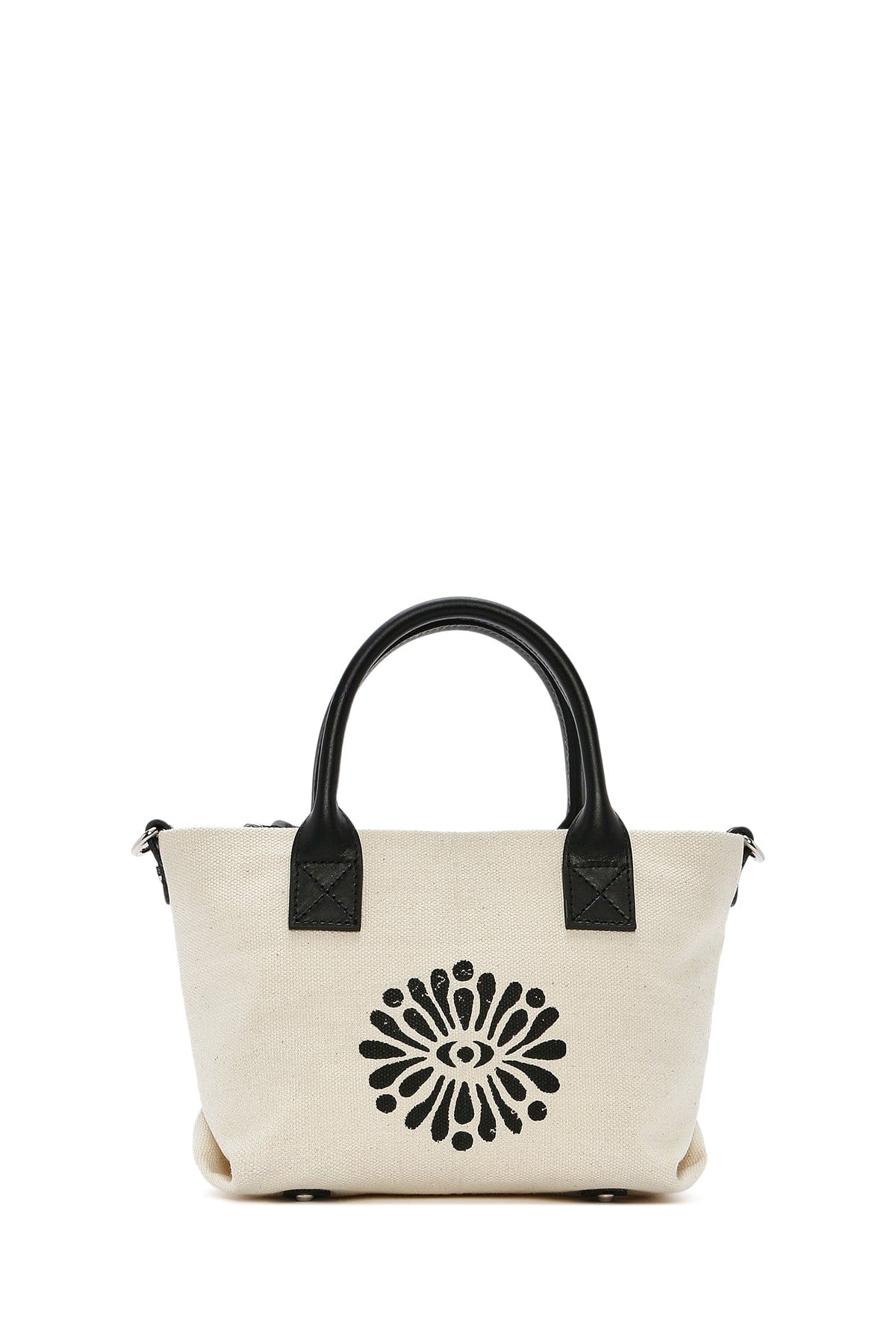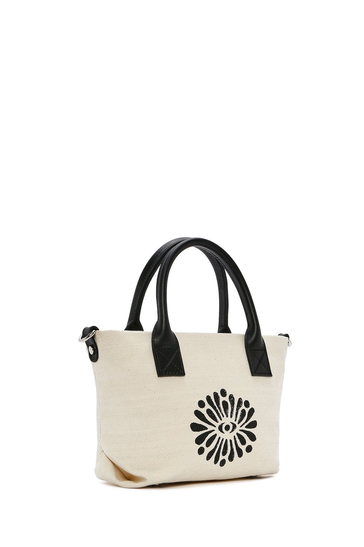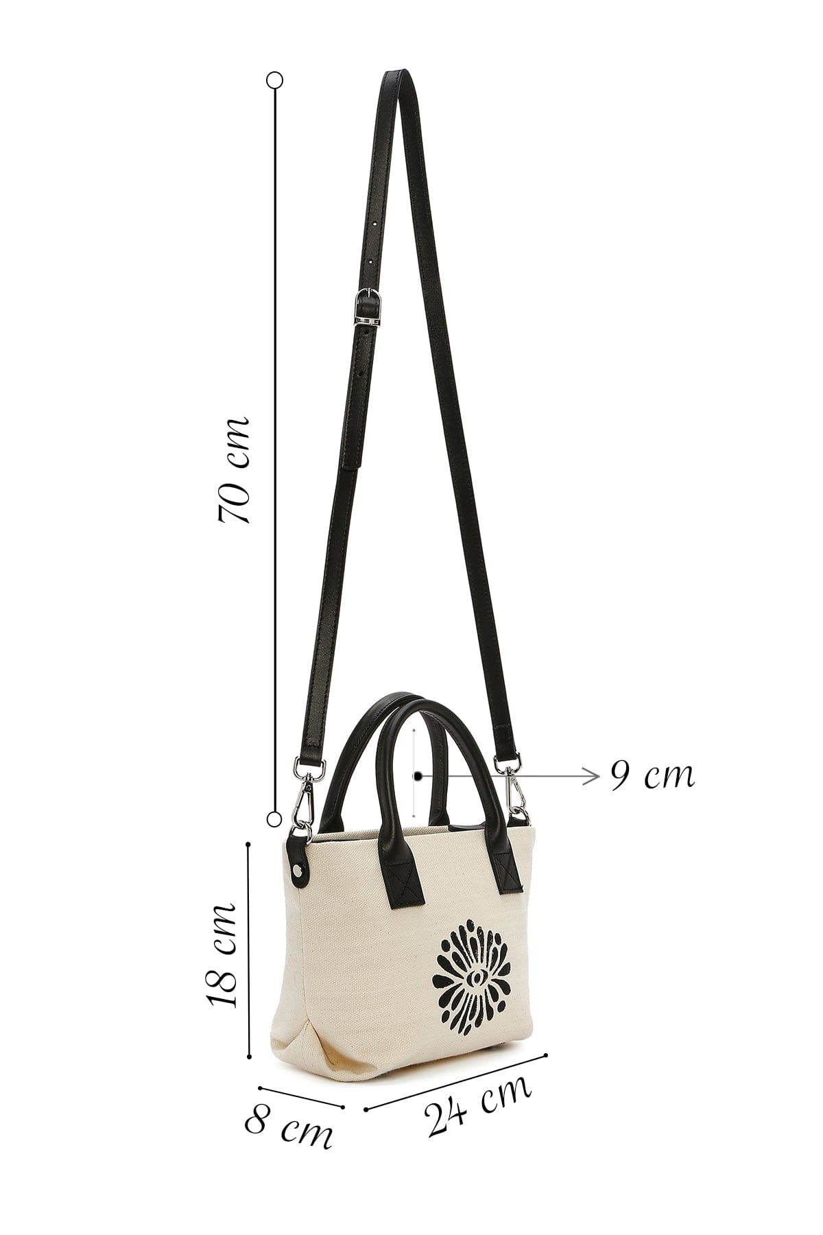 کیف زنانه مینی دستی پارچهای طرحدار مشکی چاپ سنگی Kastamonu بند بلند دری مد