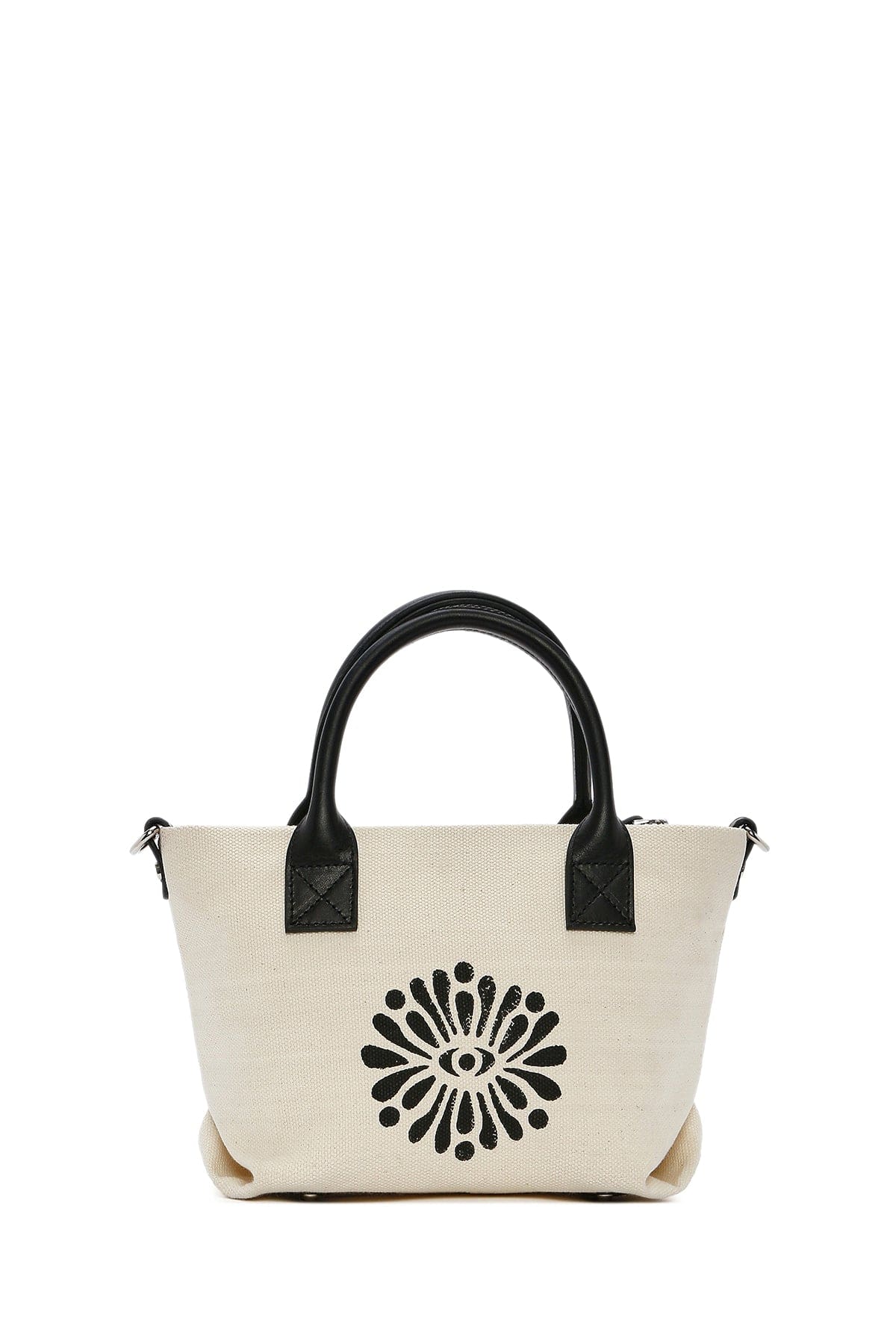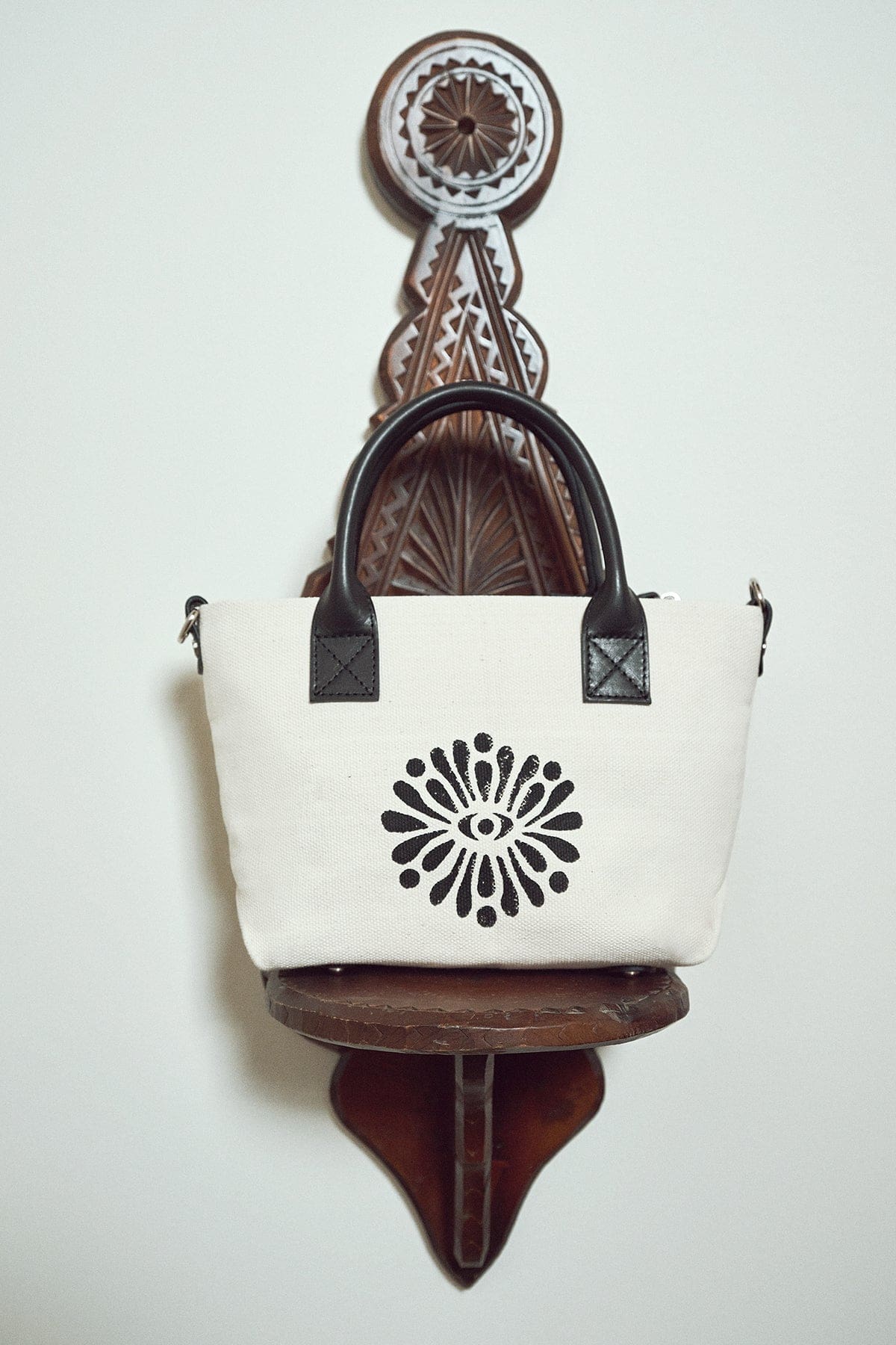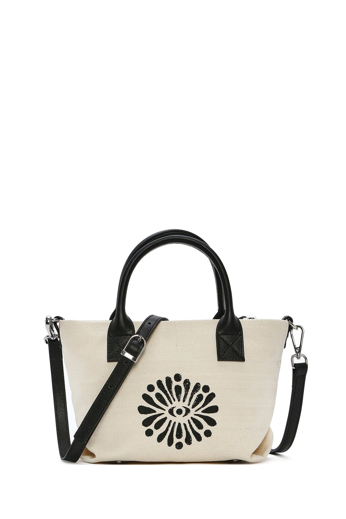 کیف زنانه مینی دستی پارچهای طرحدار مشکی چاپ سنگی Kastamonu بند بلند دری مد