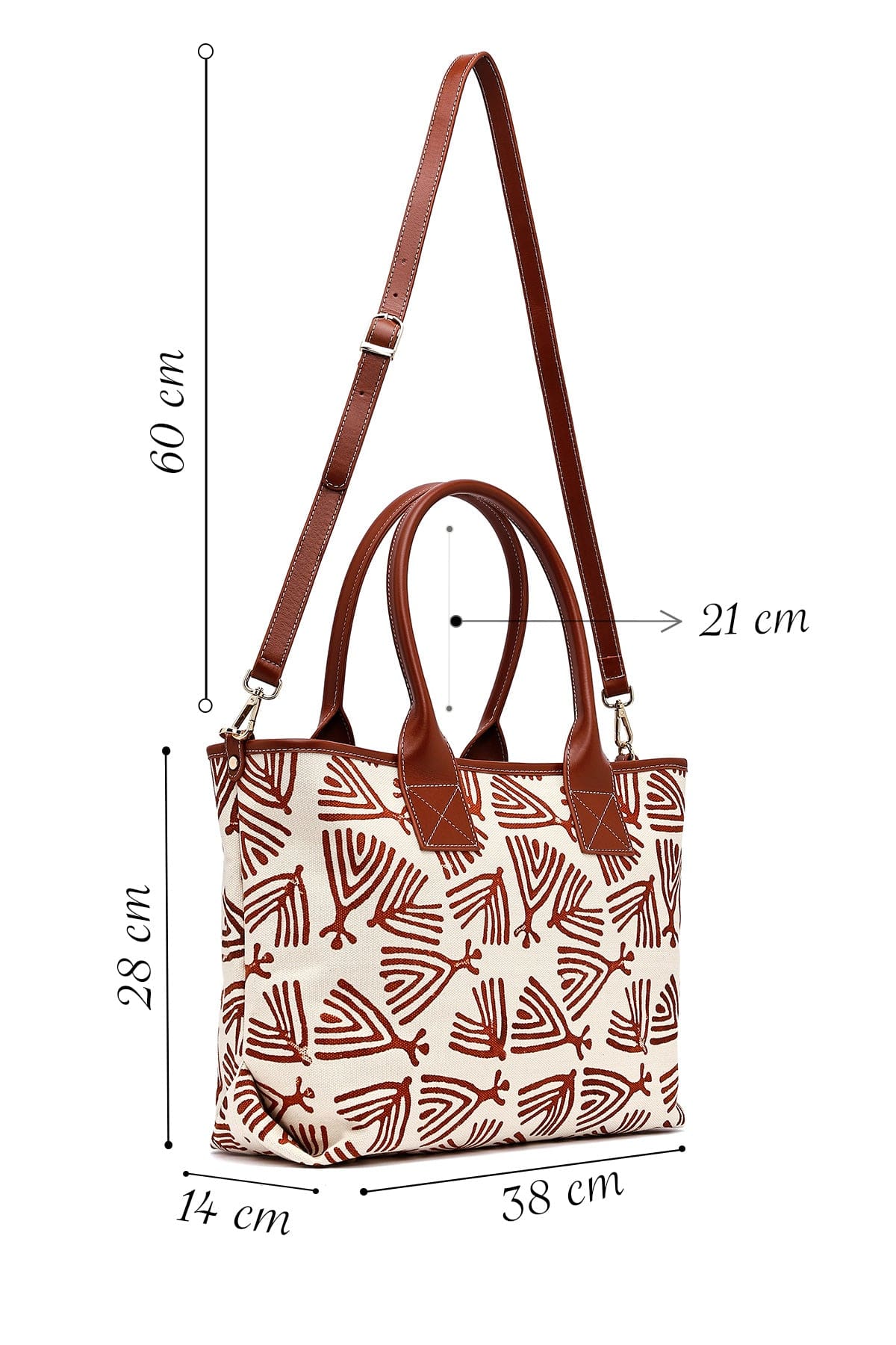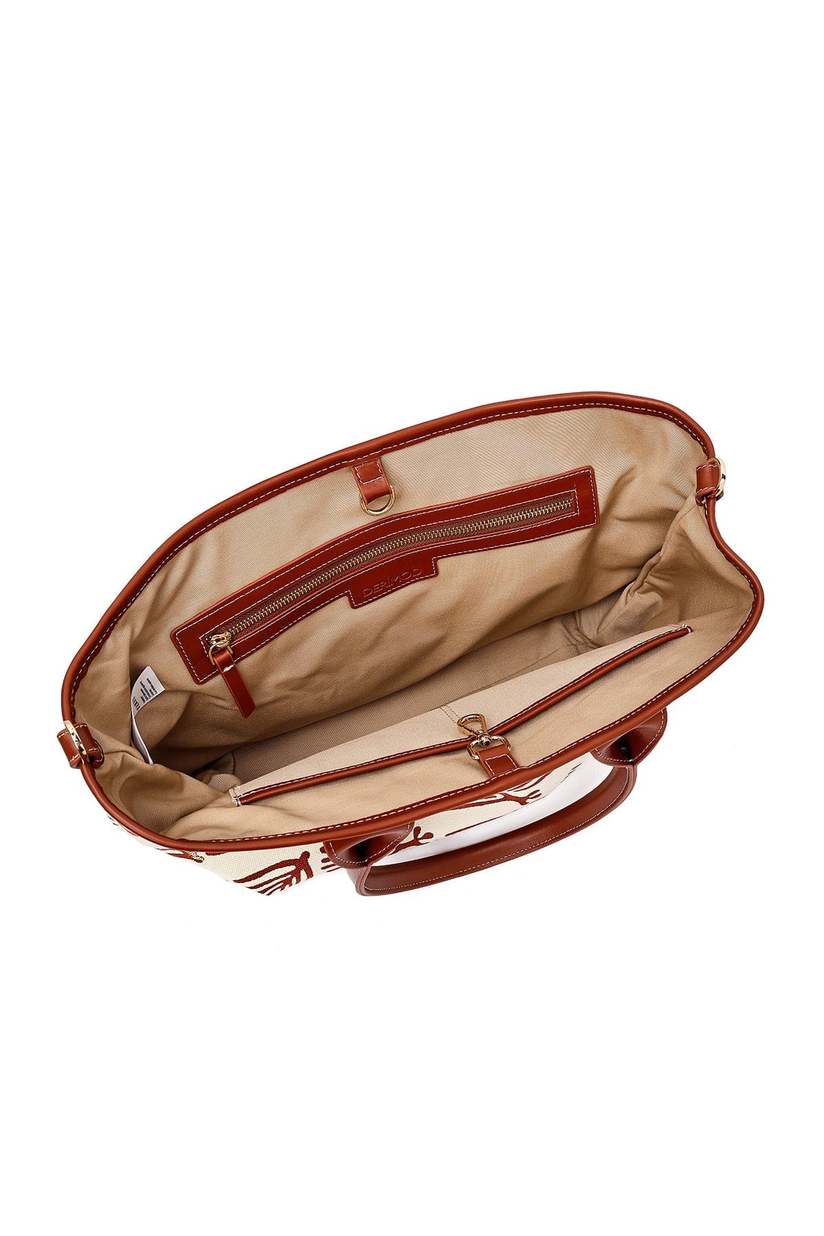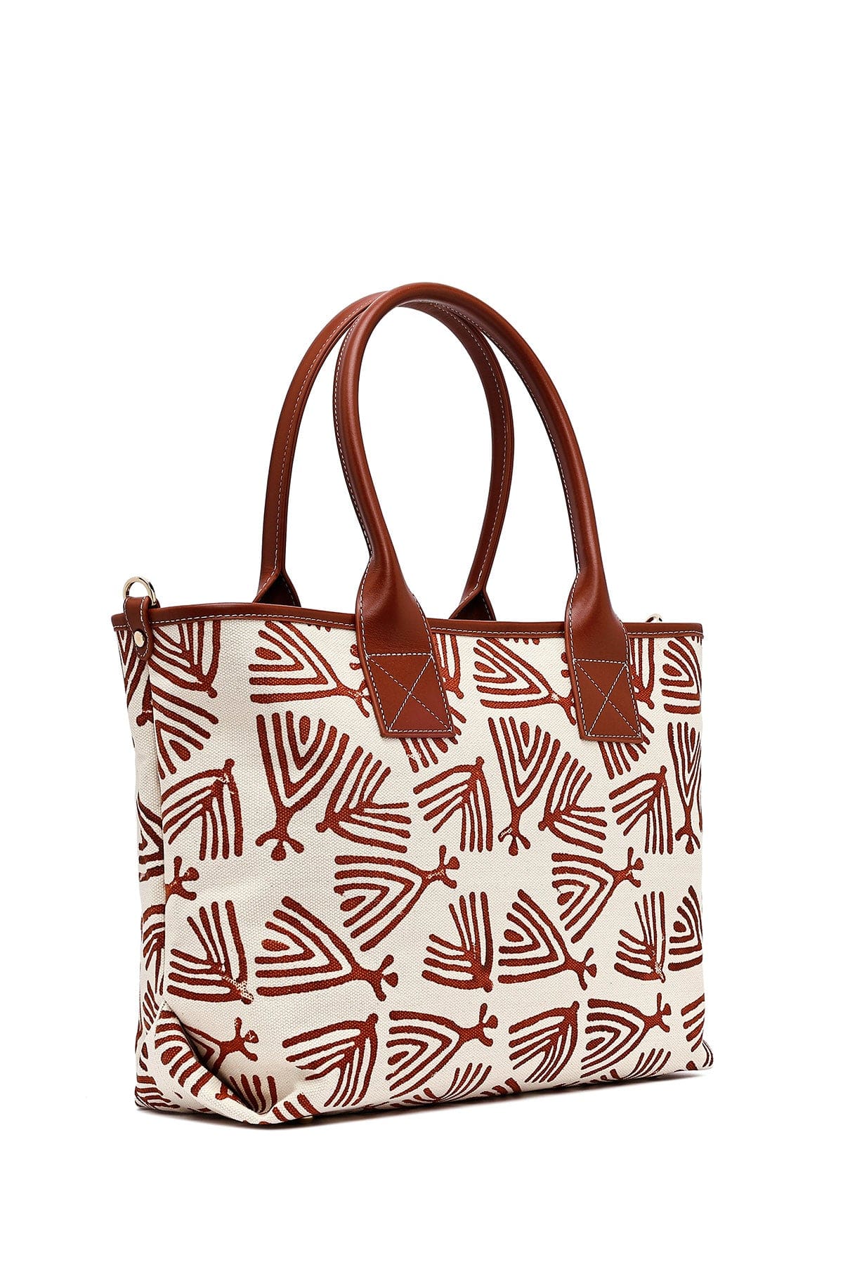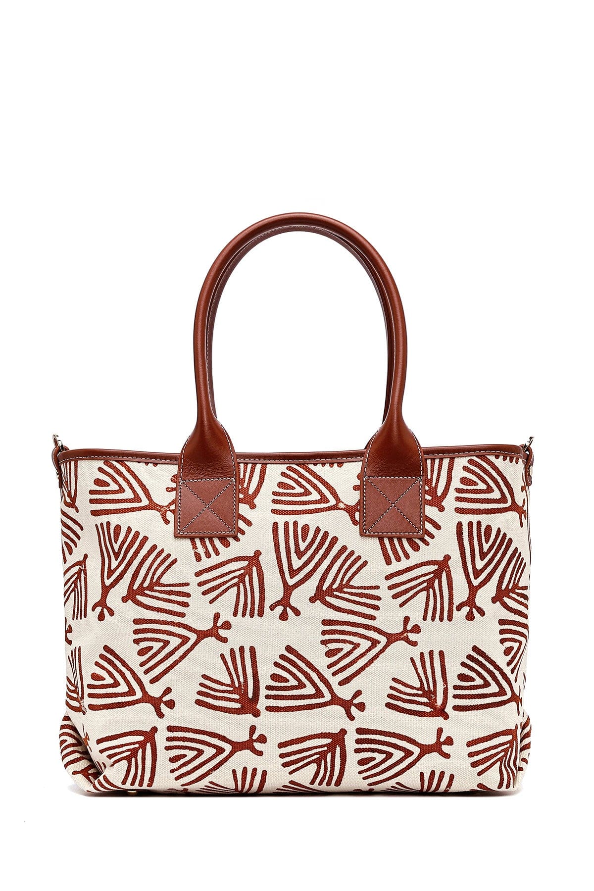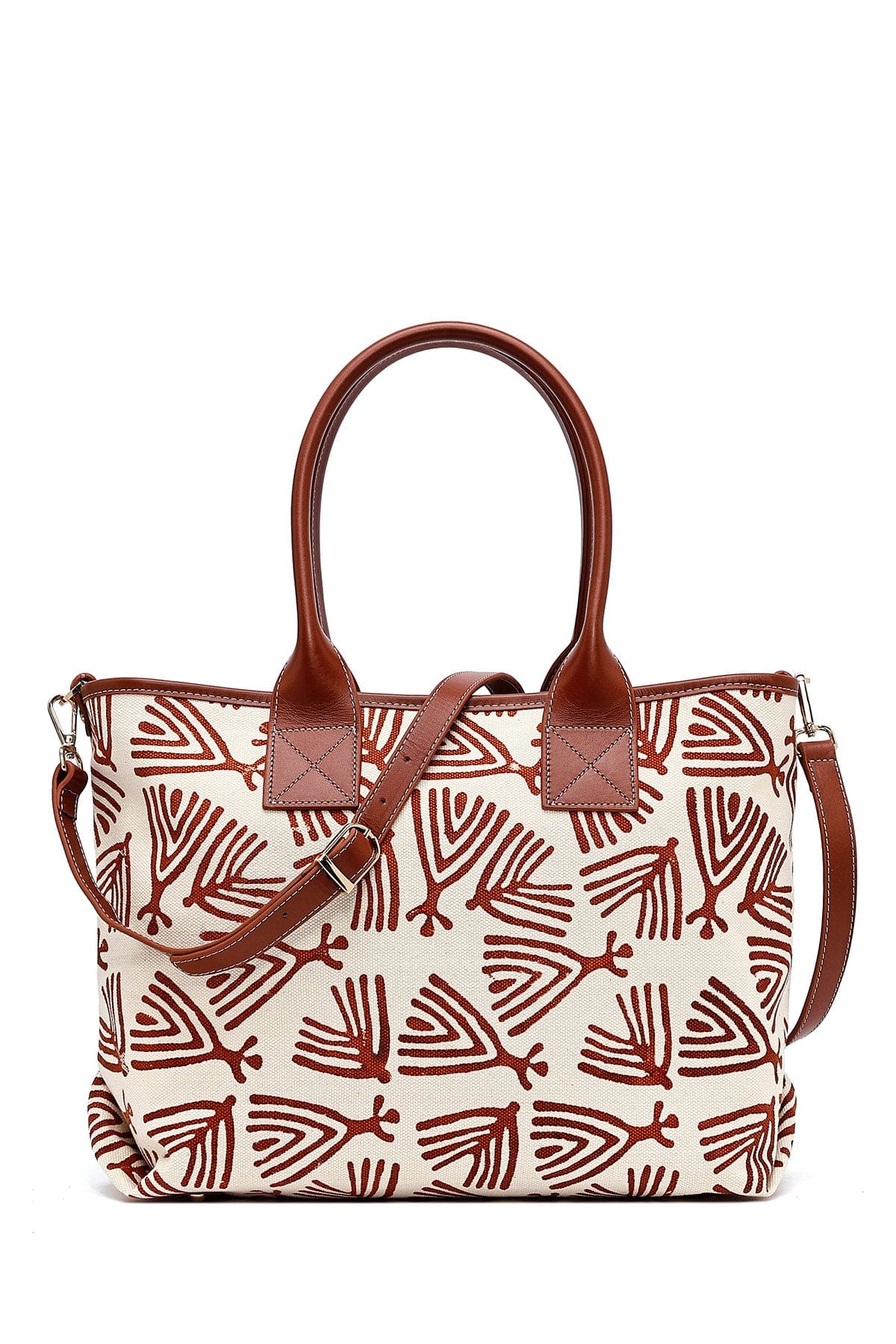 Kastamonu Taş Baskı Kadın Taba Uzun Askılı Desenli Kumaş Omuz Çantası