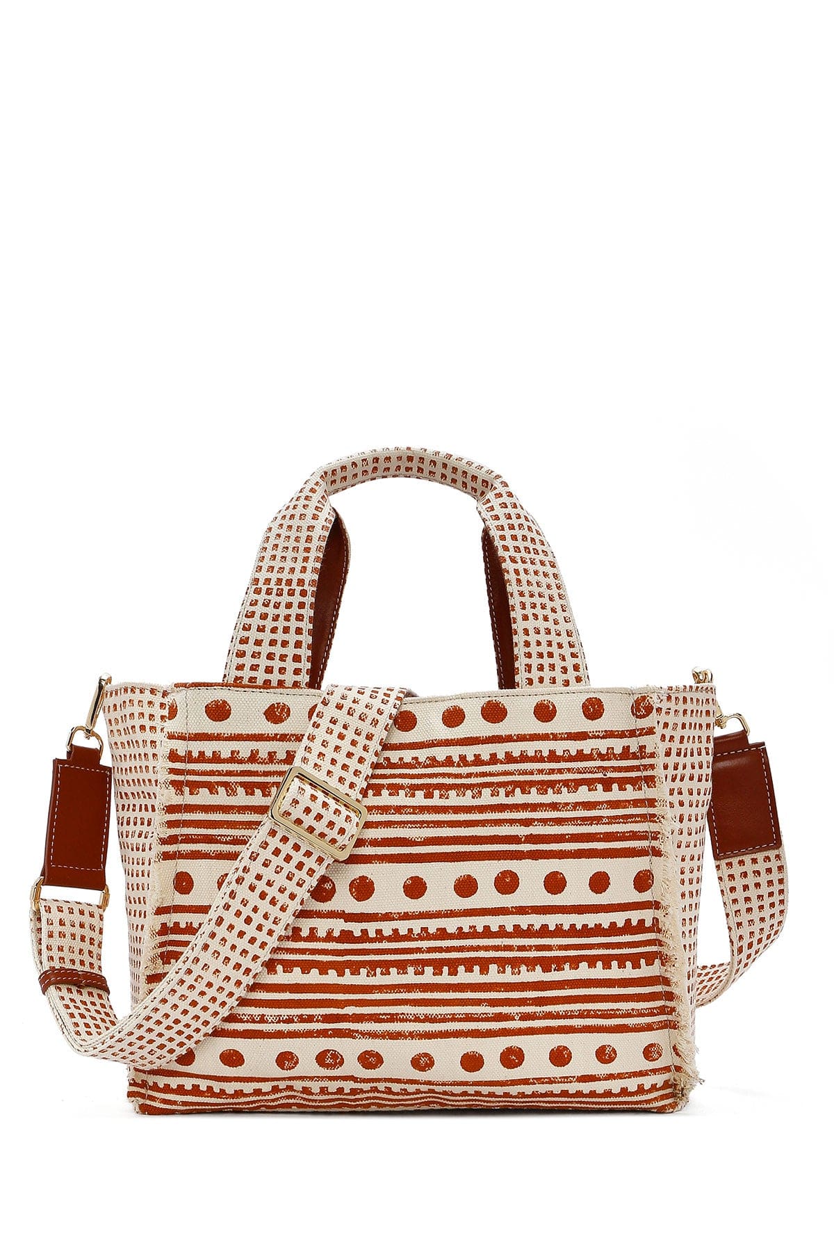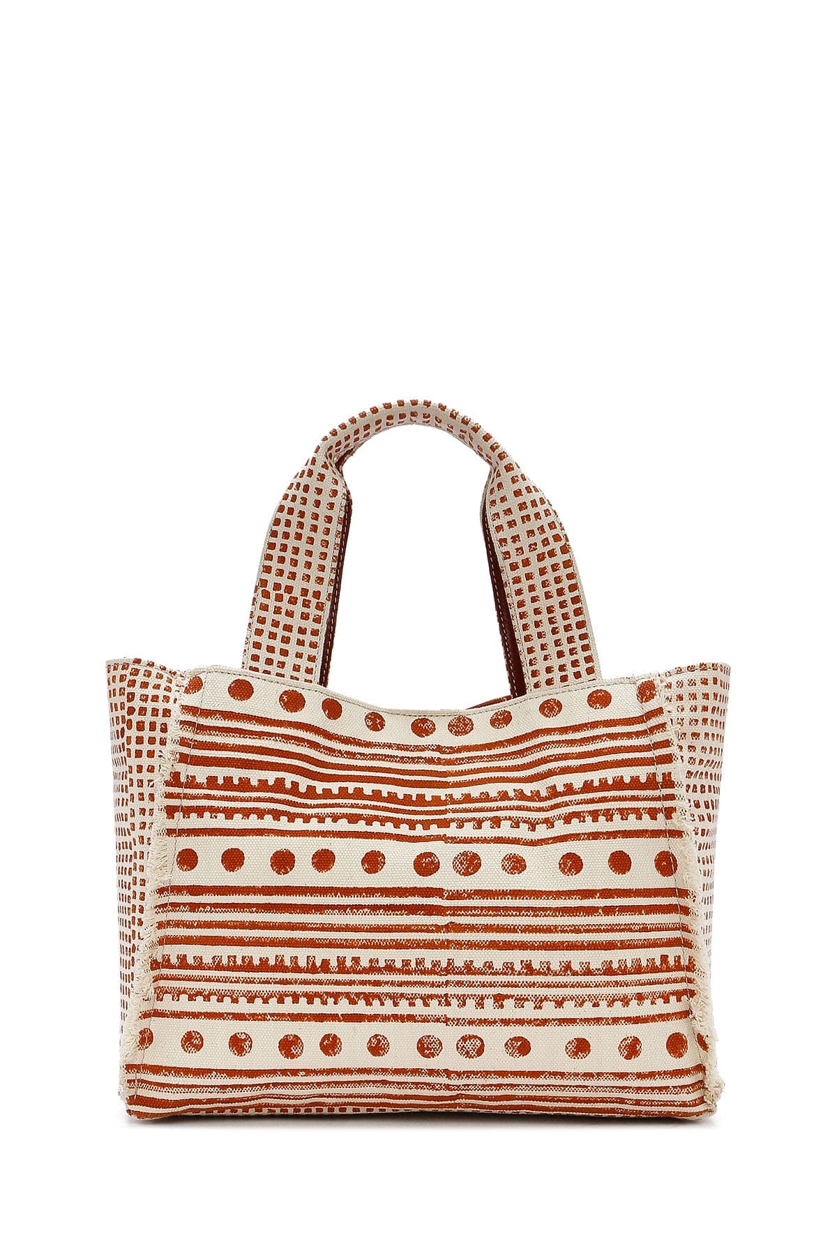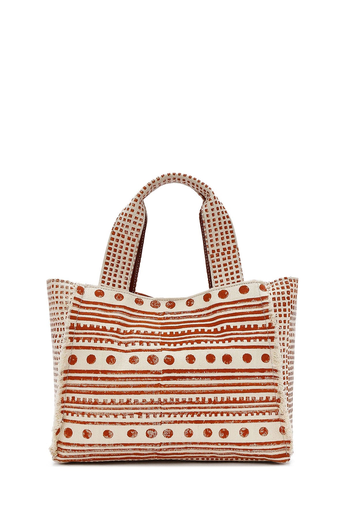 کیف زنانه دستی پارچهای طرحدار عسلی چاپ سنگی Kastamonu بند بلند دری مد