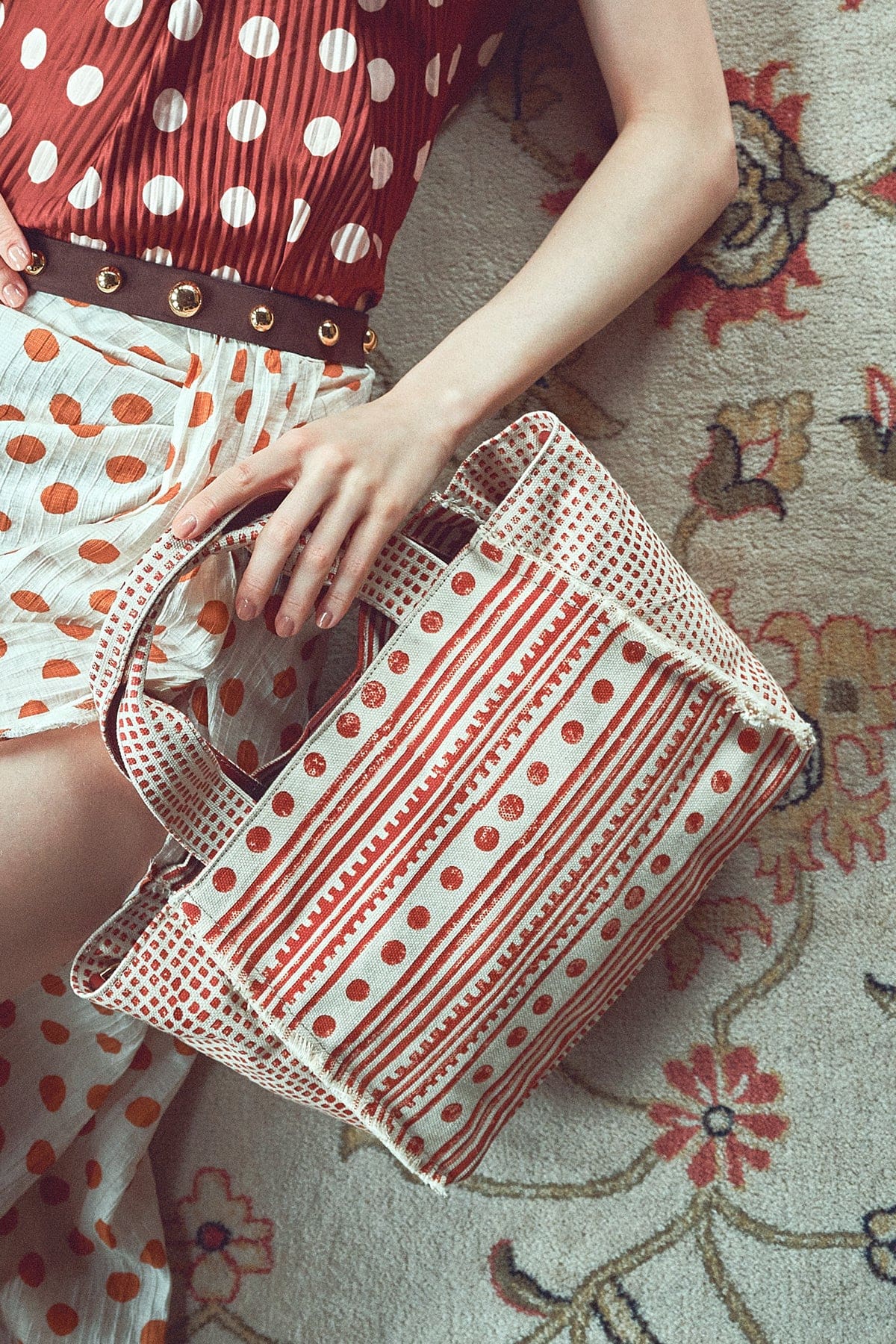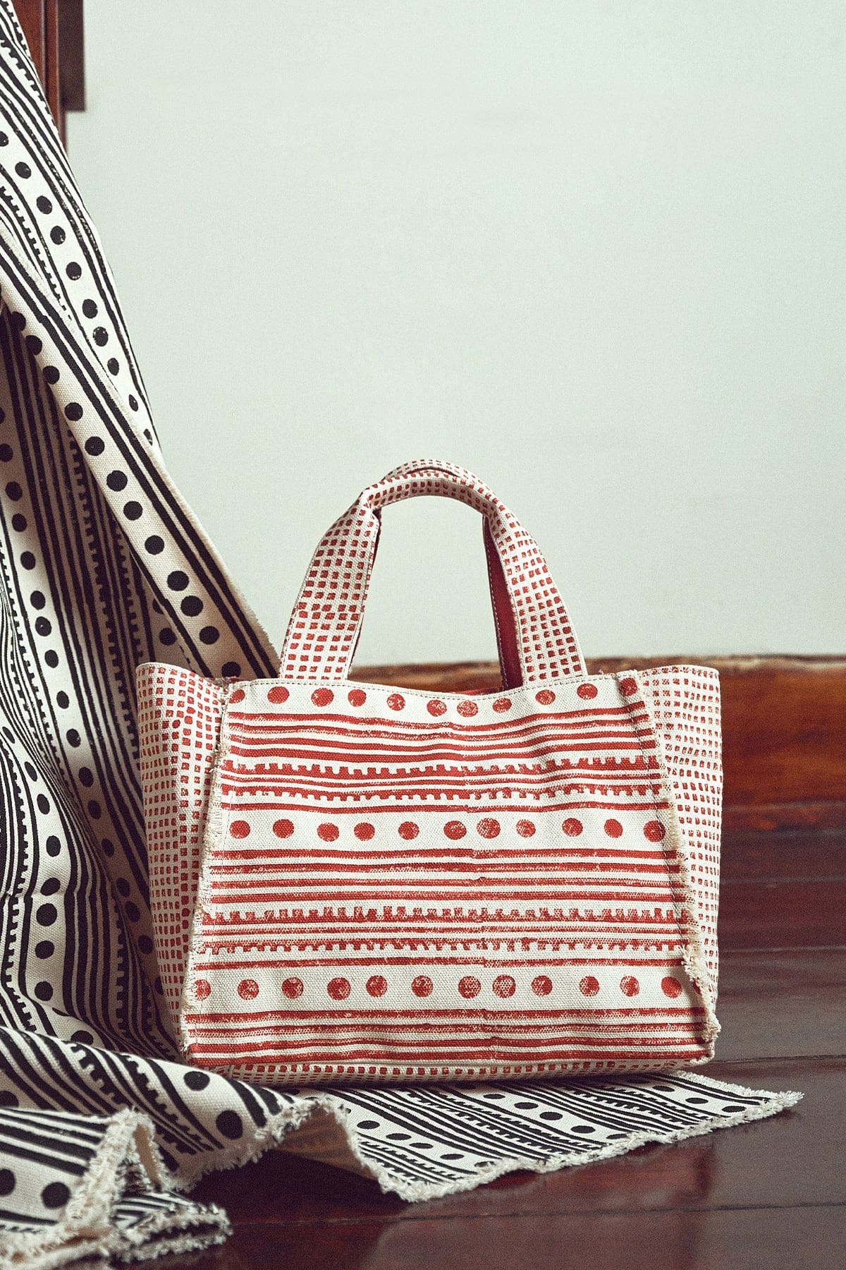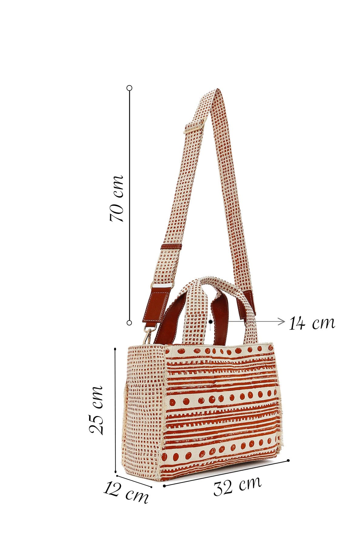 کیف زنانه دستی پارچهای طرحدار عسلی چاپ سنگی Kastamonu بند بلند دری مد