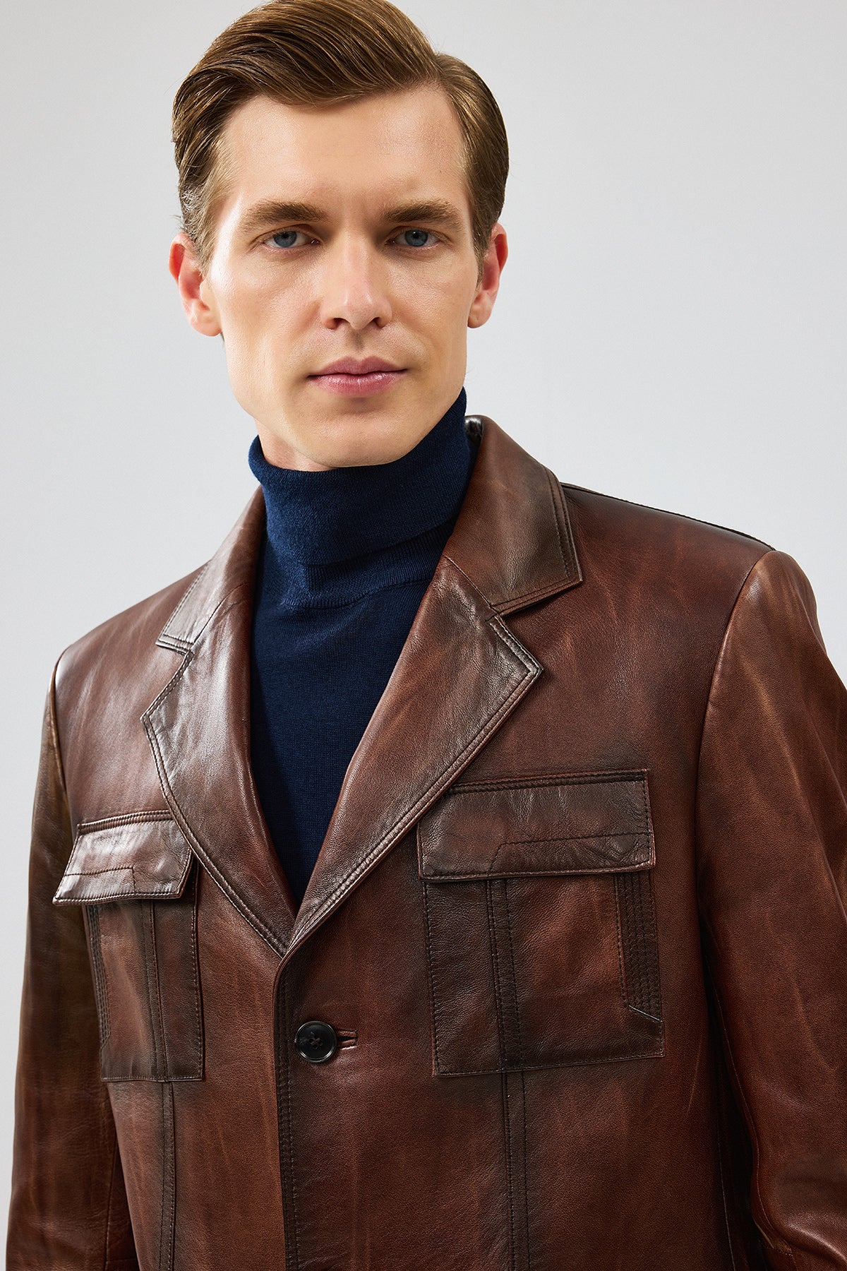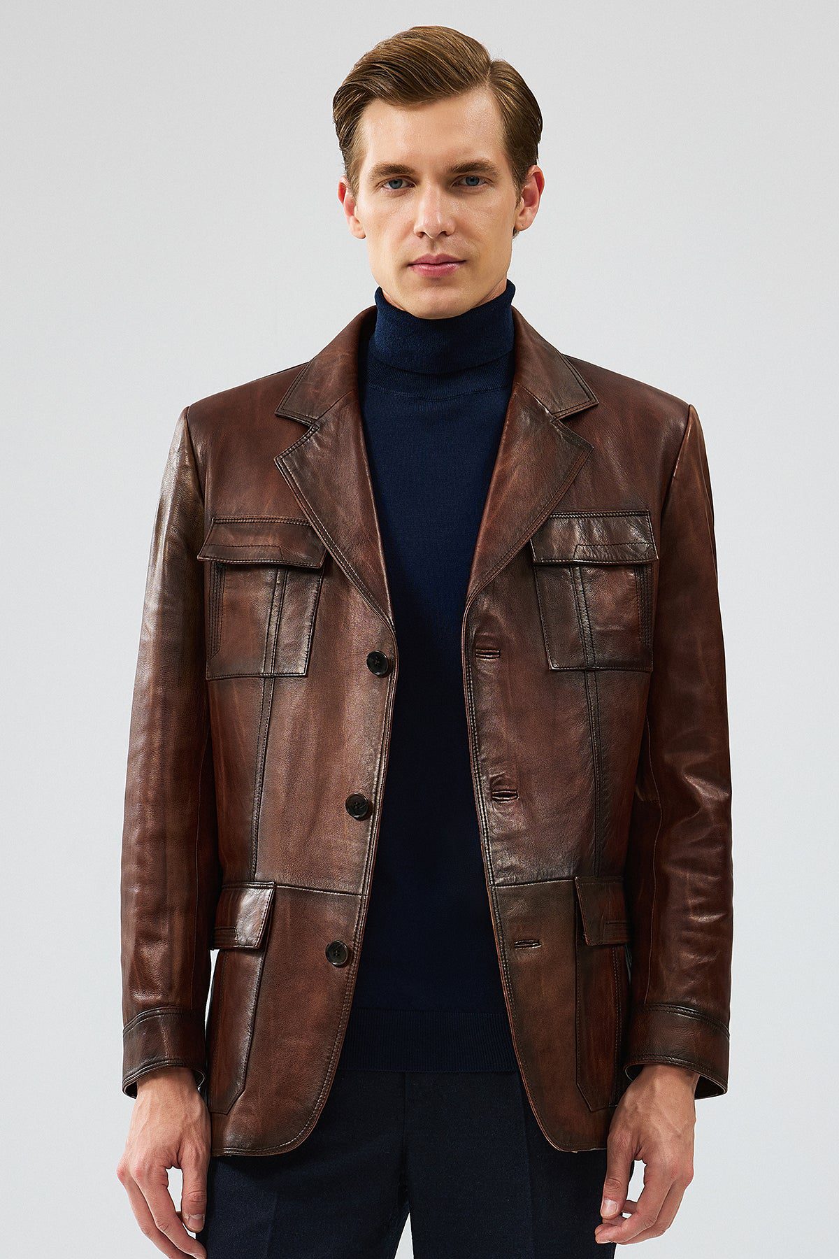 Kevin Erkek Kahverengi Blazer Deri Ceket